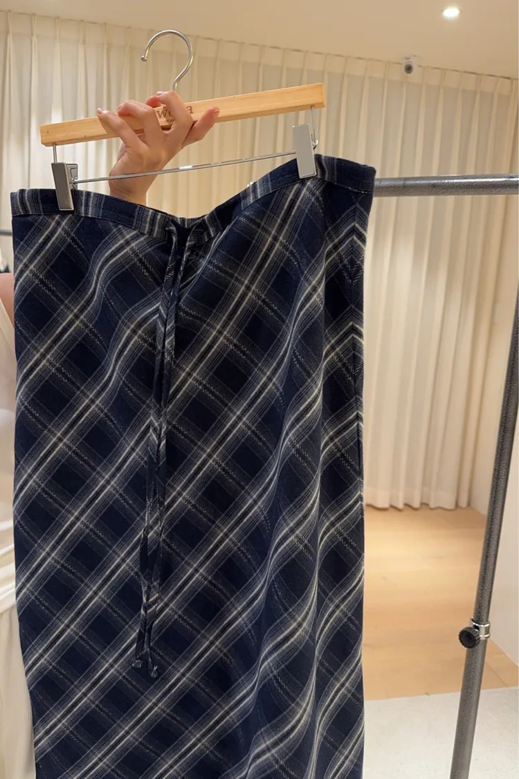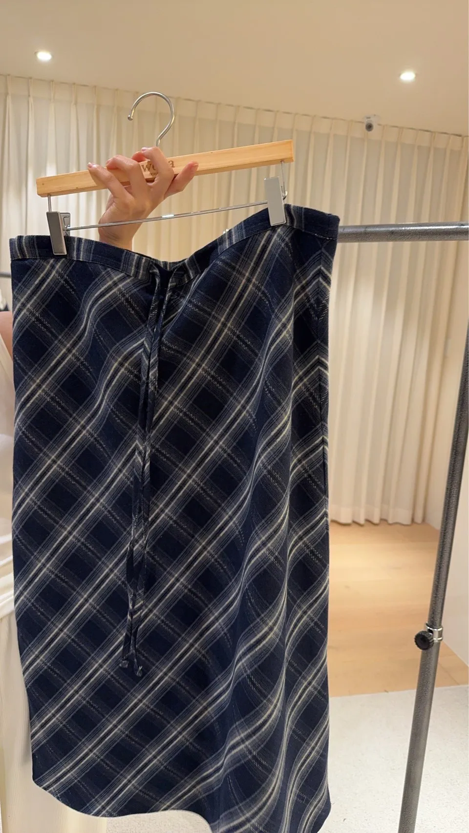 FG055特價菱格格紋藍色長裙 原價$1480 特價$880