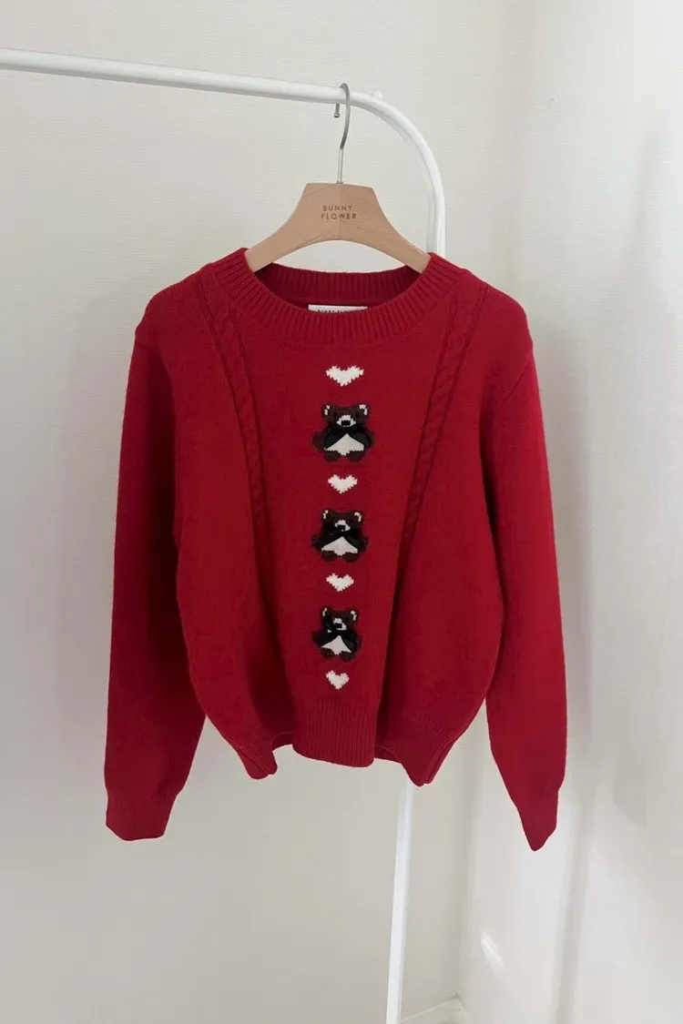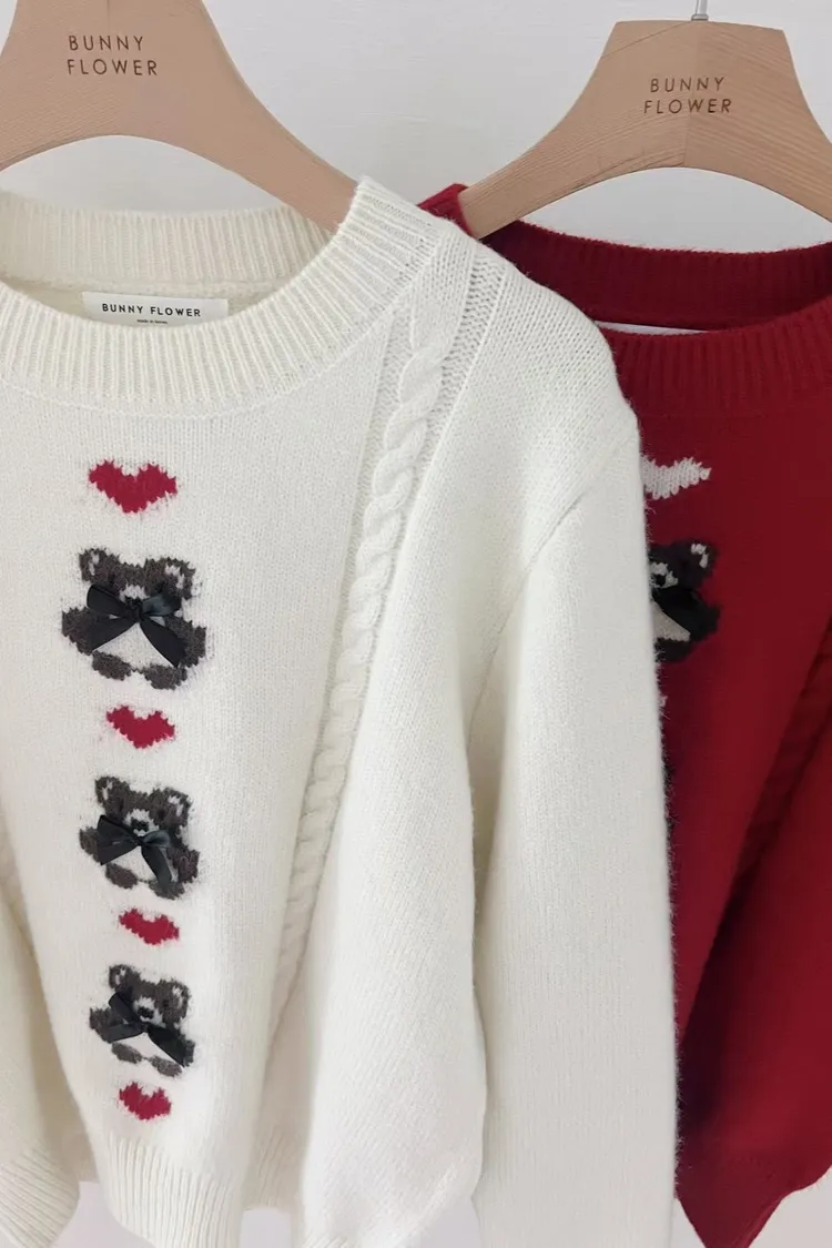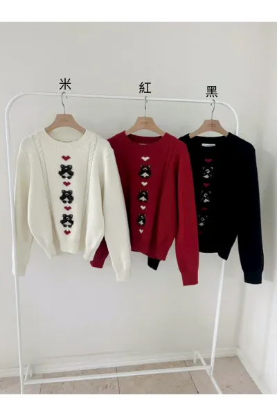 羊毛40% 麻花滾邊 熊熊身上有立體手工緞帶 超敏肌請略過