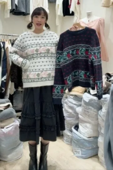FG102許願款點點花朵毛衣 米 藍 官網價$820 線上價$790