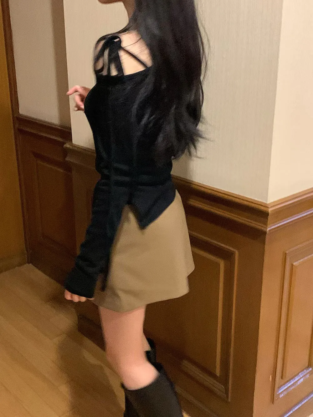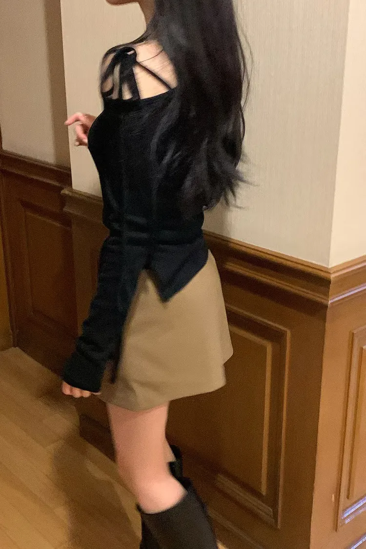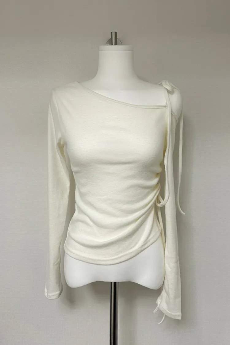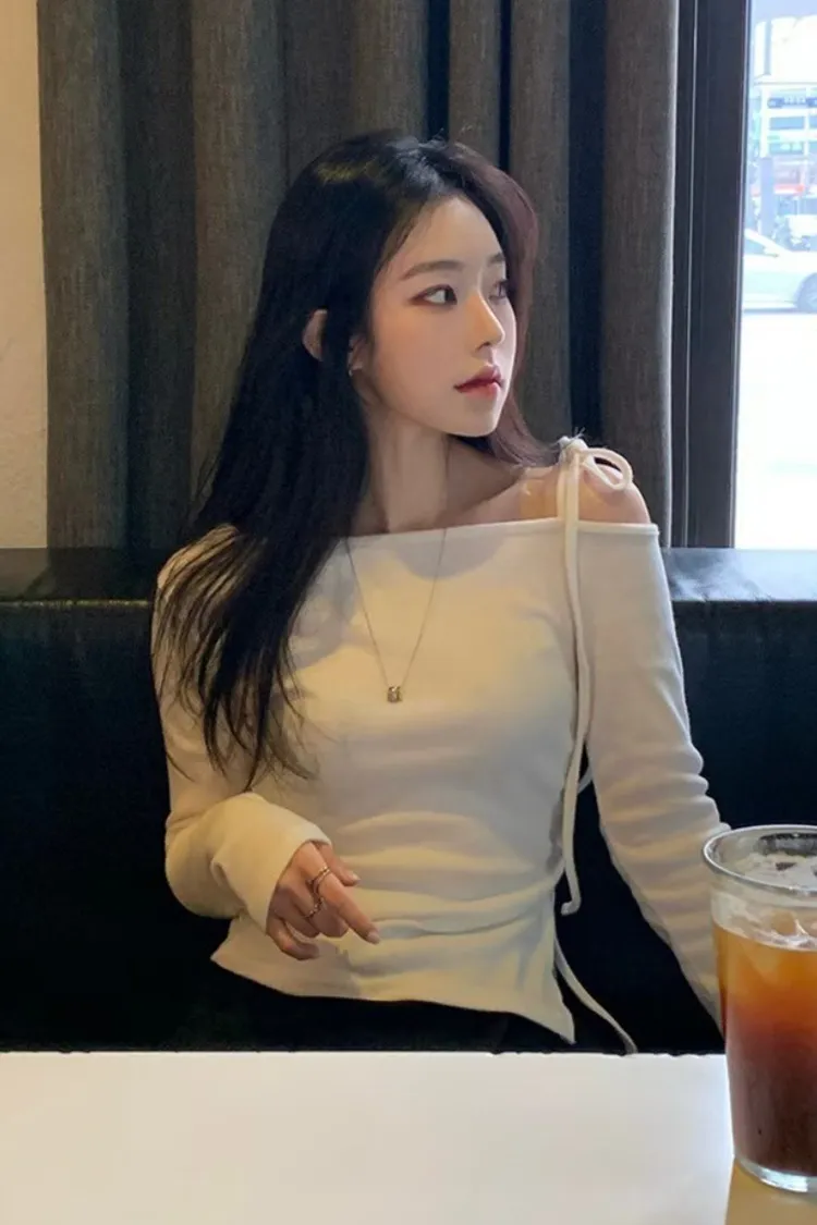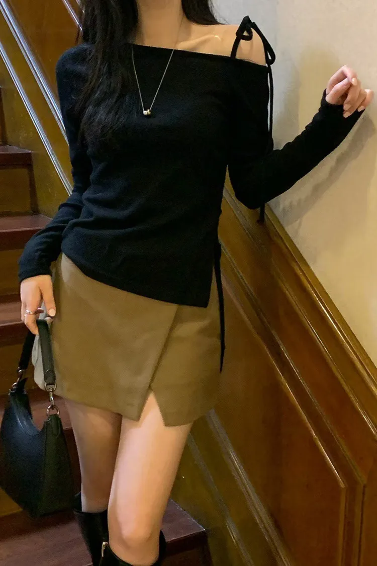 棉+聚酯+彈力 小性感單露肩 側肩腰綁帶 下擺開叉