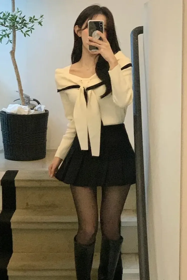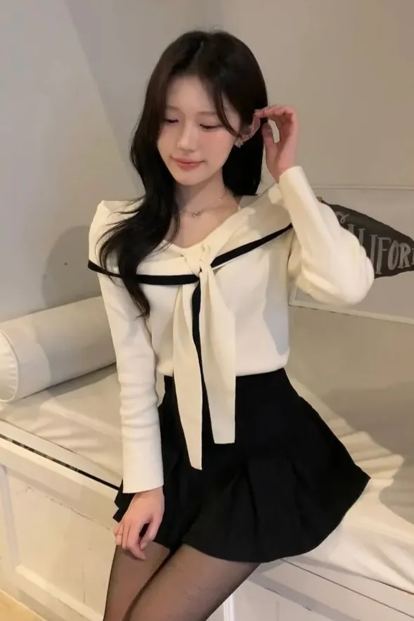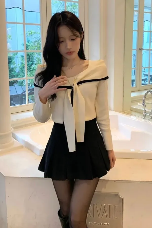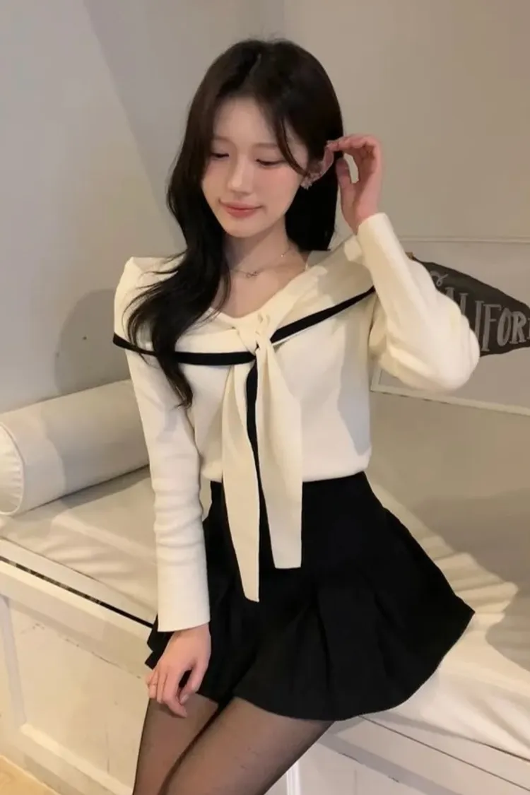 羊毛40% 法式拚色水手領 有彈性 L號友善