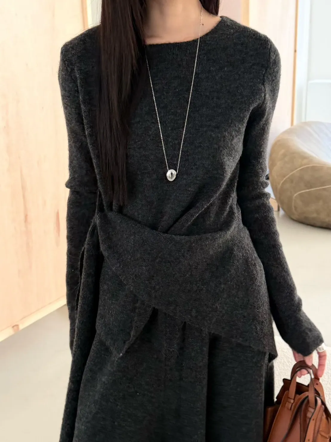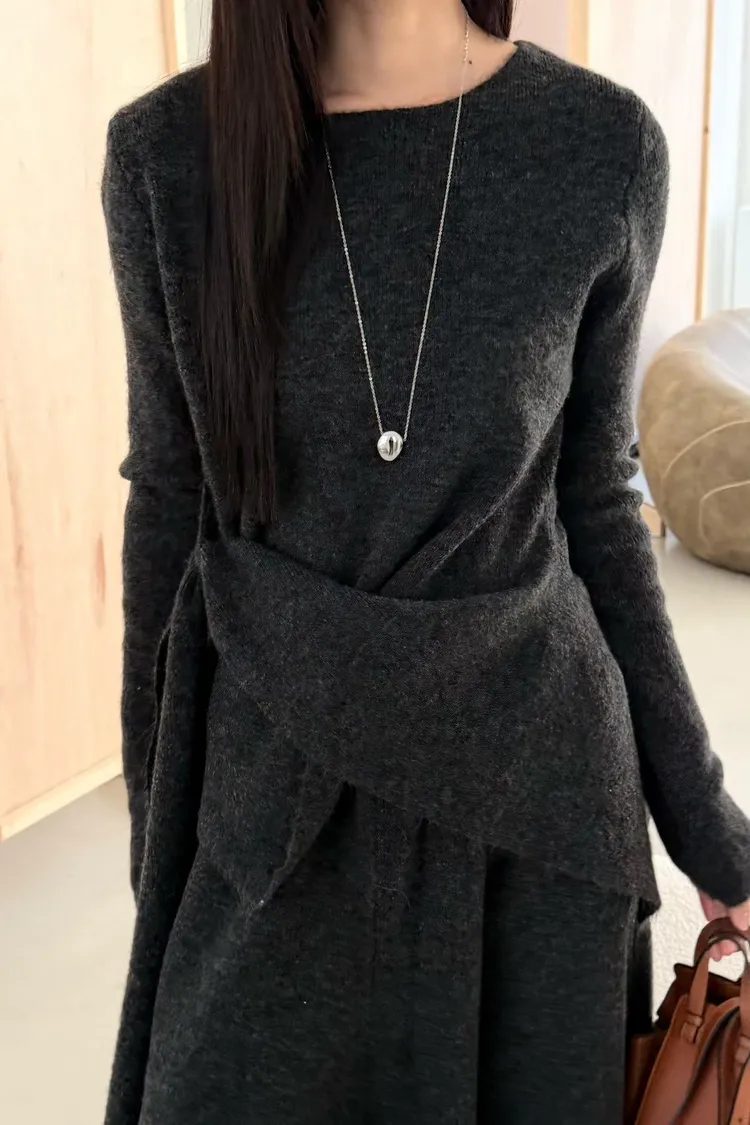 羊毛28% 假交叉腰身設計 單穿一件就很好看