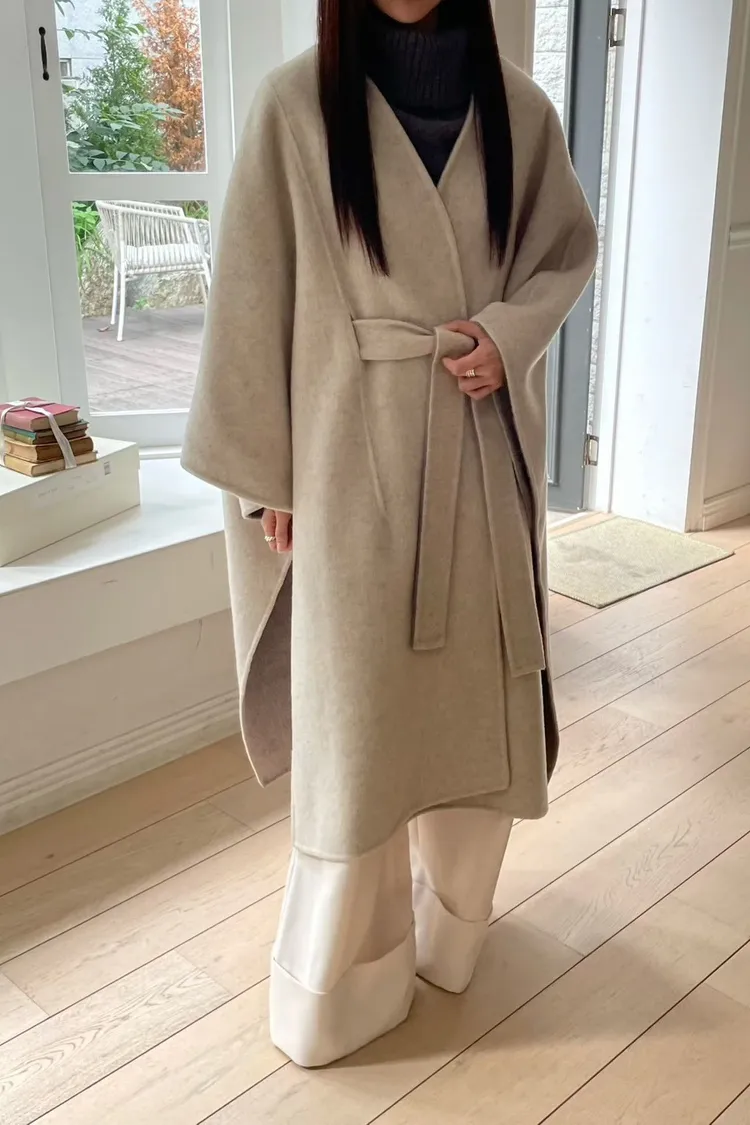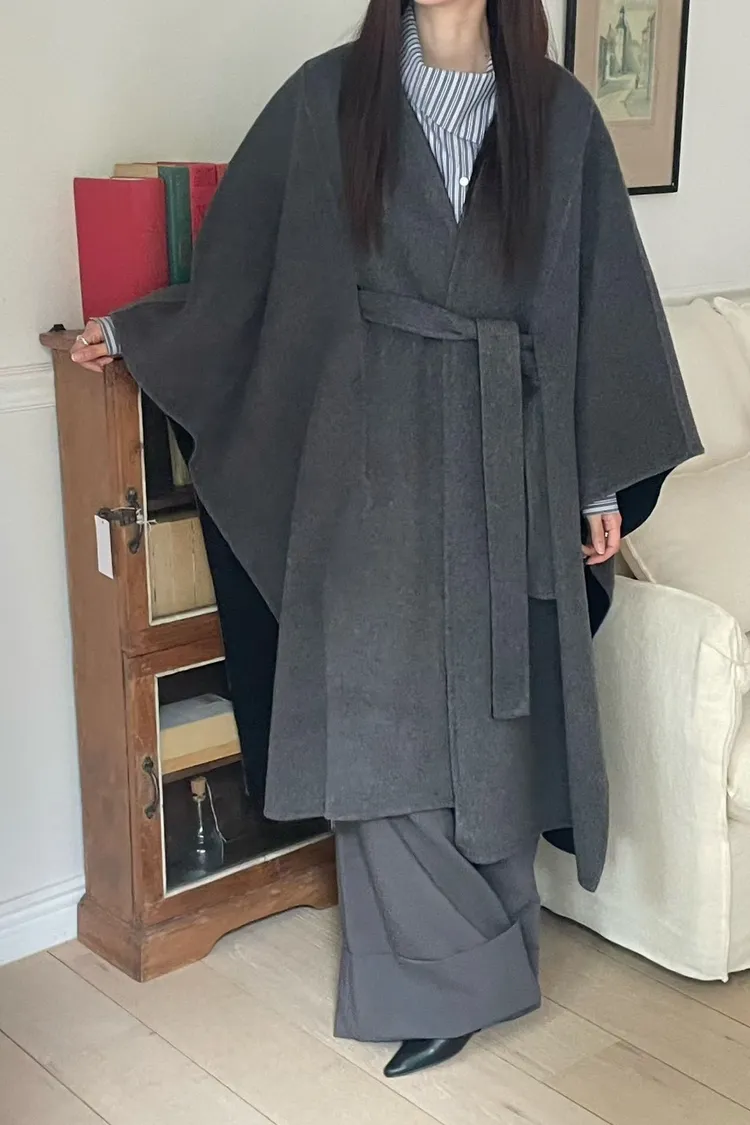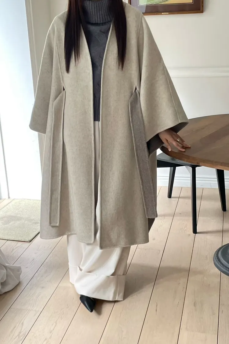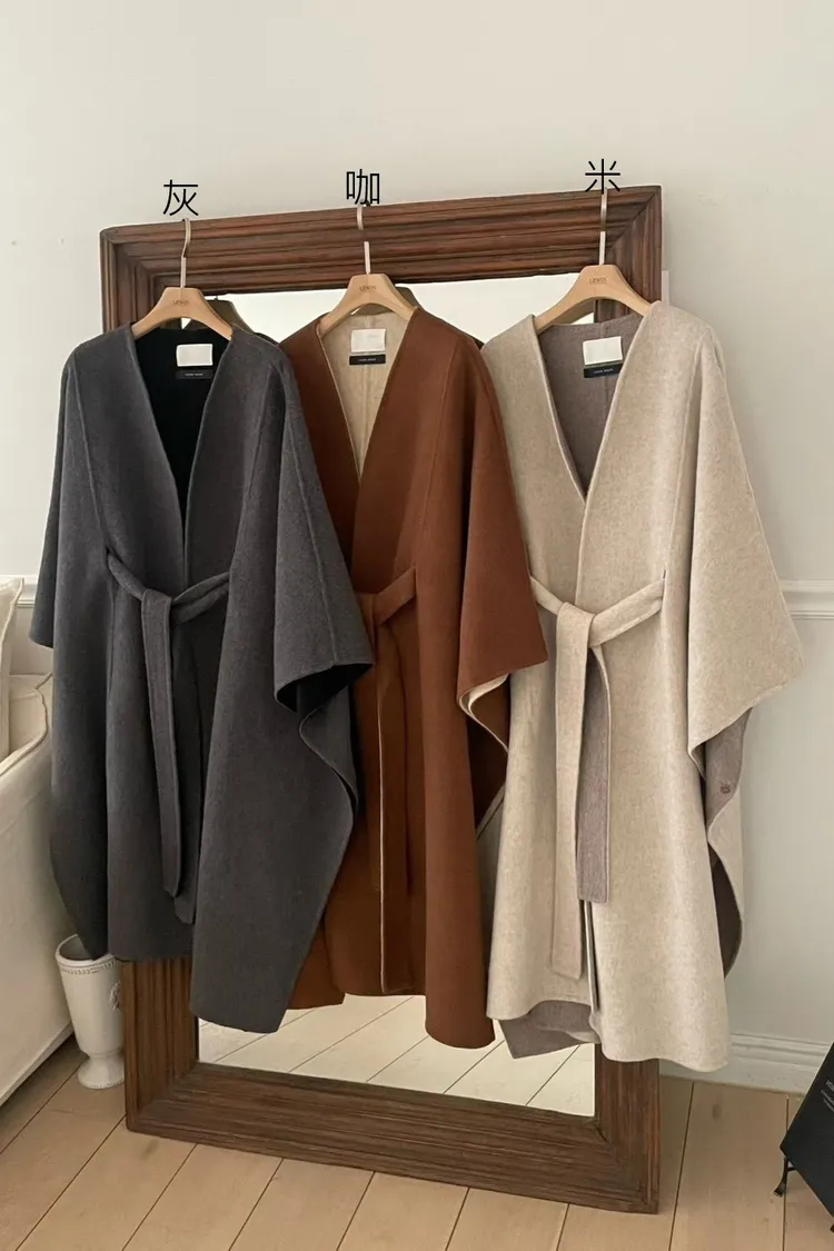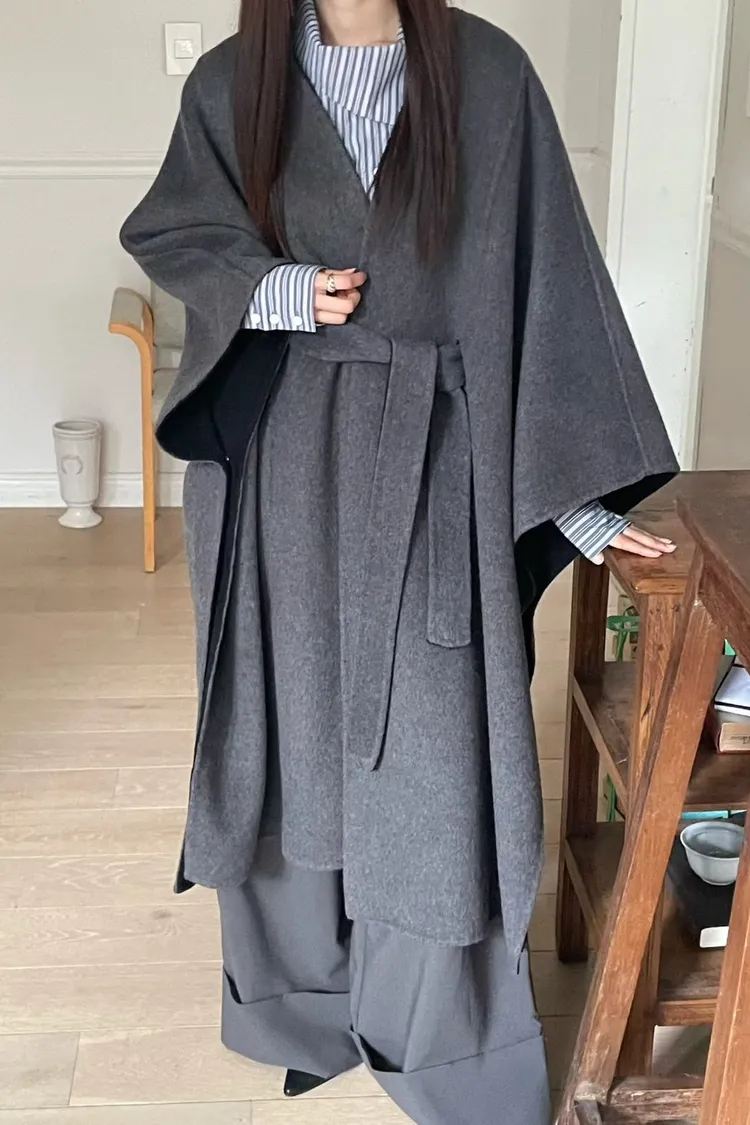 羊毛90% 高級訂製版 雙面視覺拚色 附腰帶 多層次穿搭