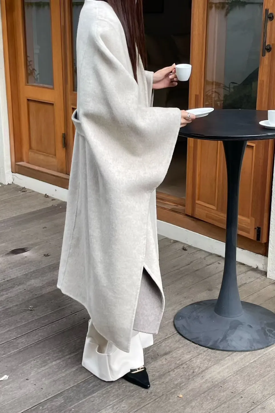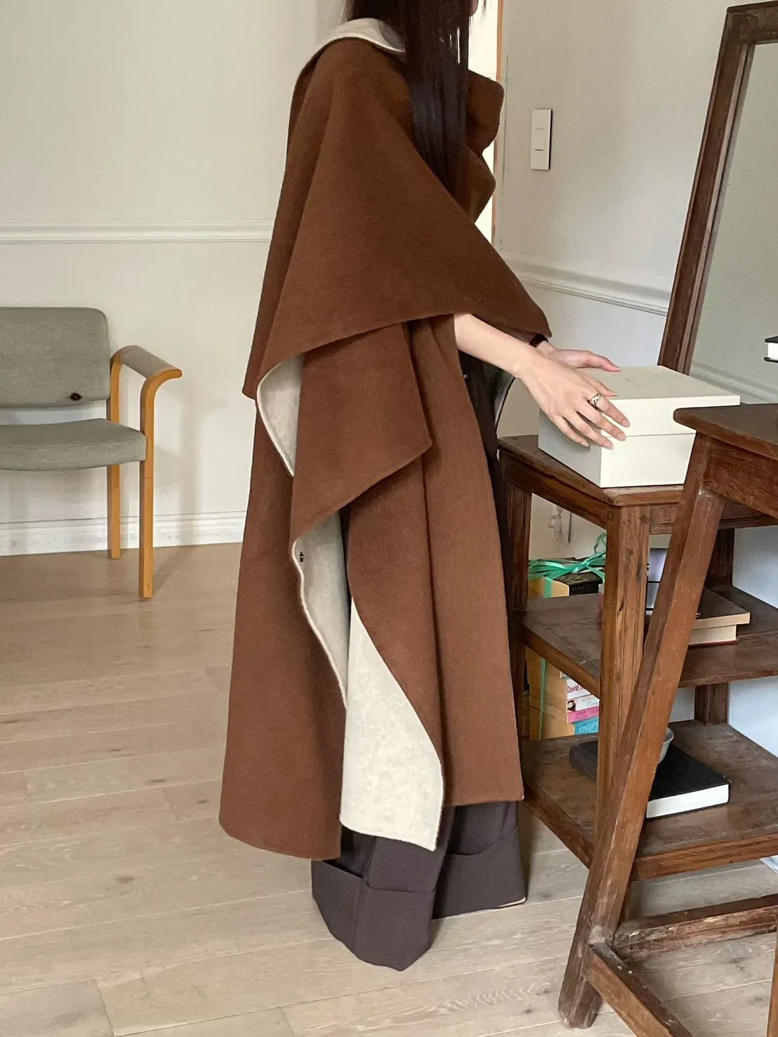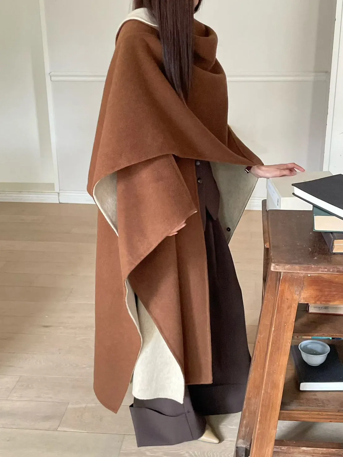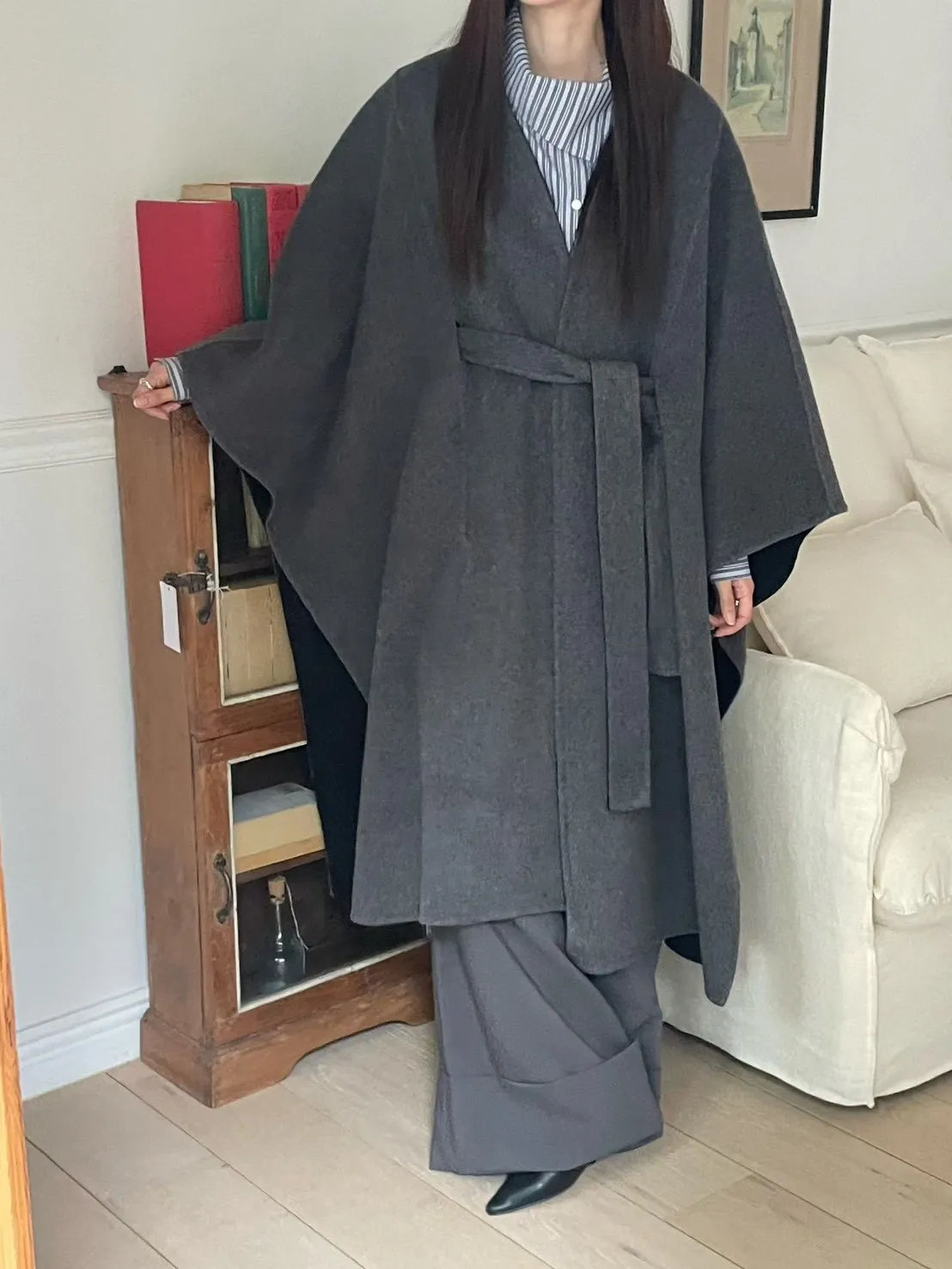 羊毛90% 高級訂製版 雙面視覺拚色 附腰帶 多層次穿搭