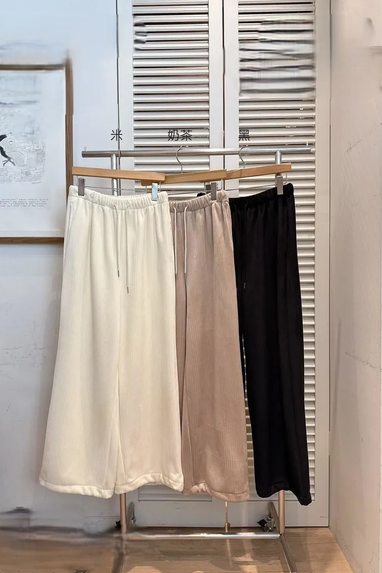 聚酯+彈力 推薦款 坑條束面 微微光澤 褲管抽繩 腰鬆緊 有口袋 有暖度
