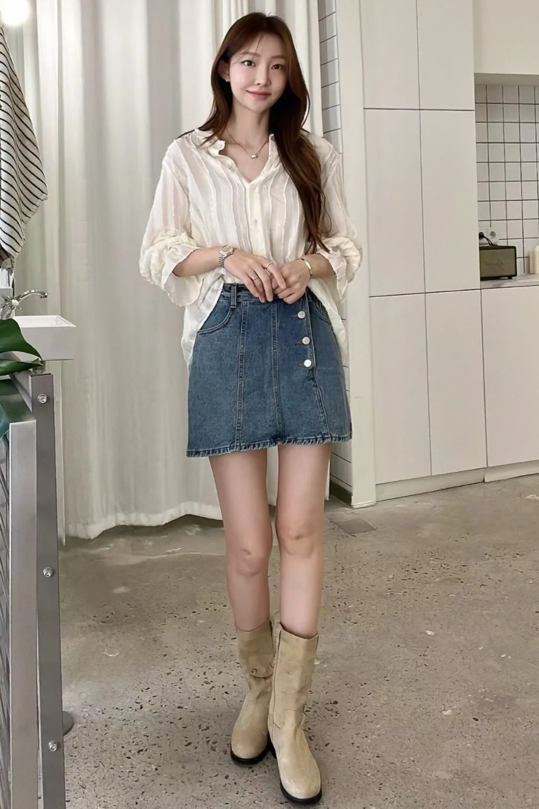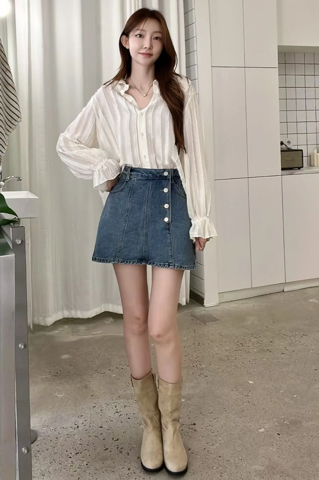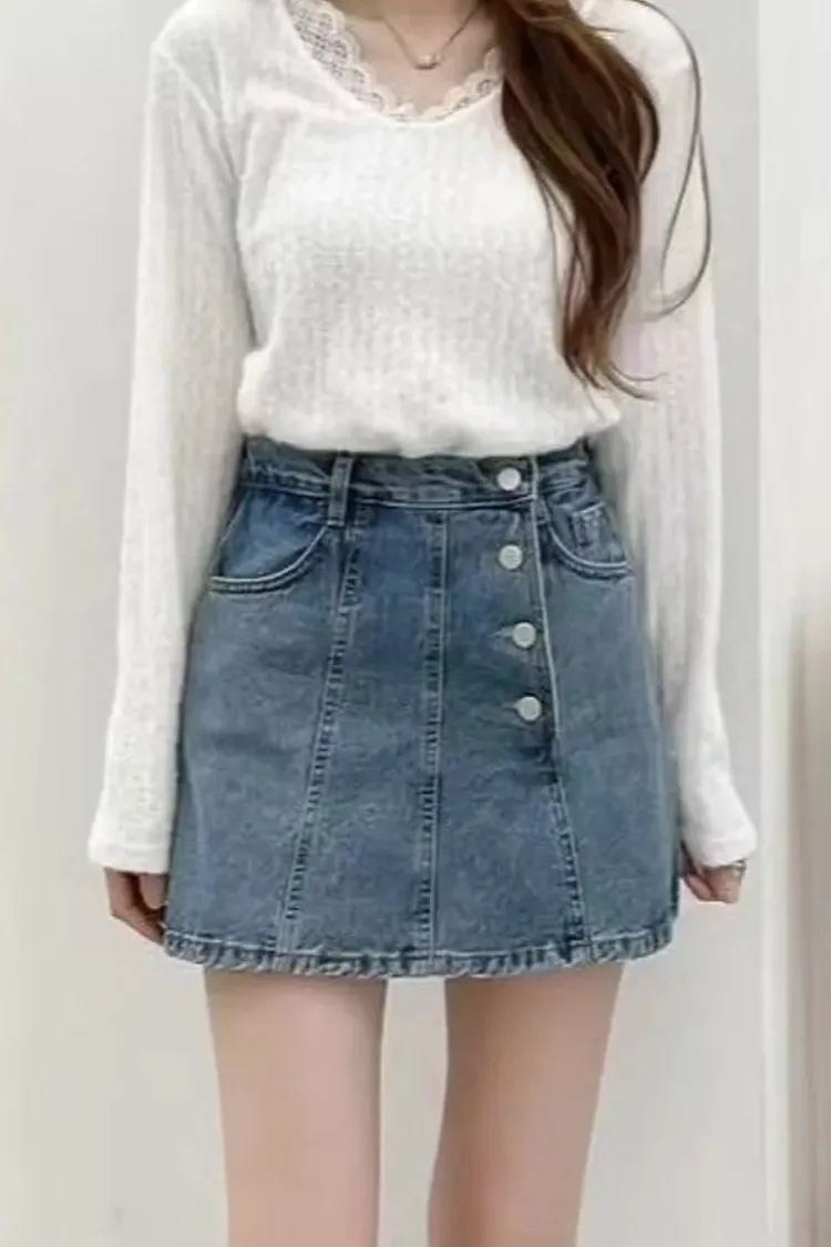 棉 側腰斜釦 Aline版型 有口袋 是褲裙
