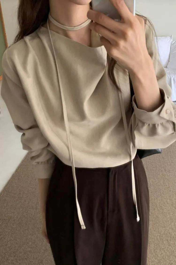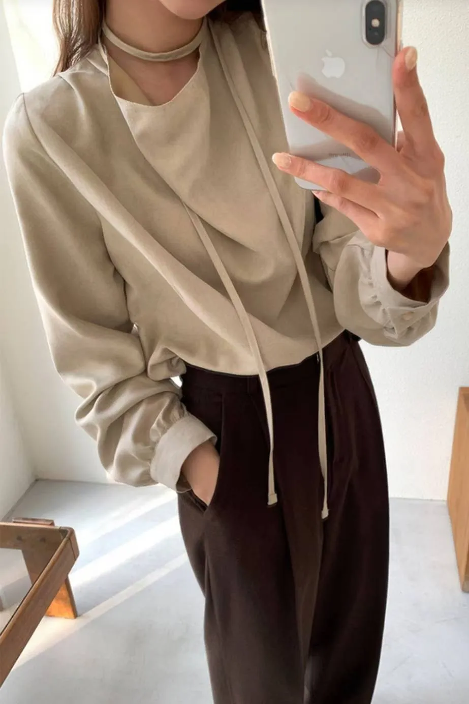 聚酯 垂墜感 微微有厚度 後頸三釦小鏤空 附綁帶 觸感是麂皮微挺度