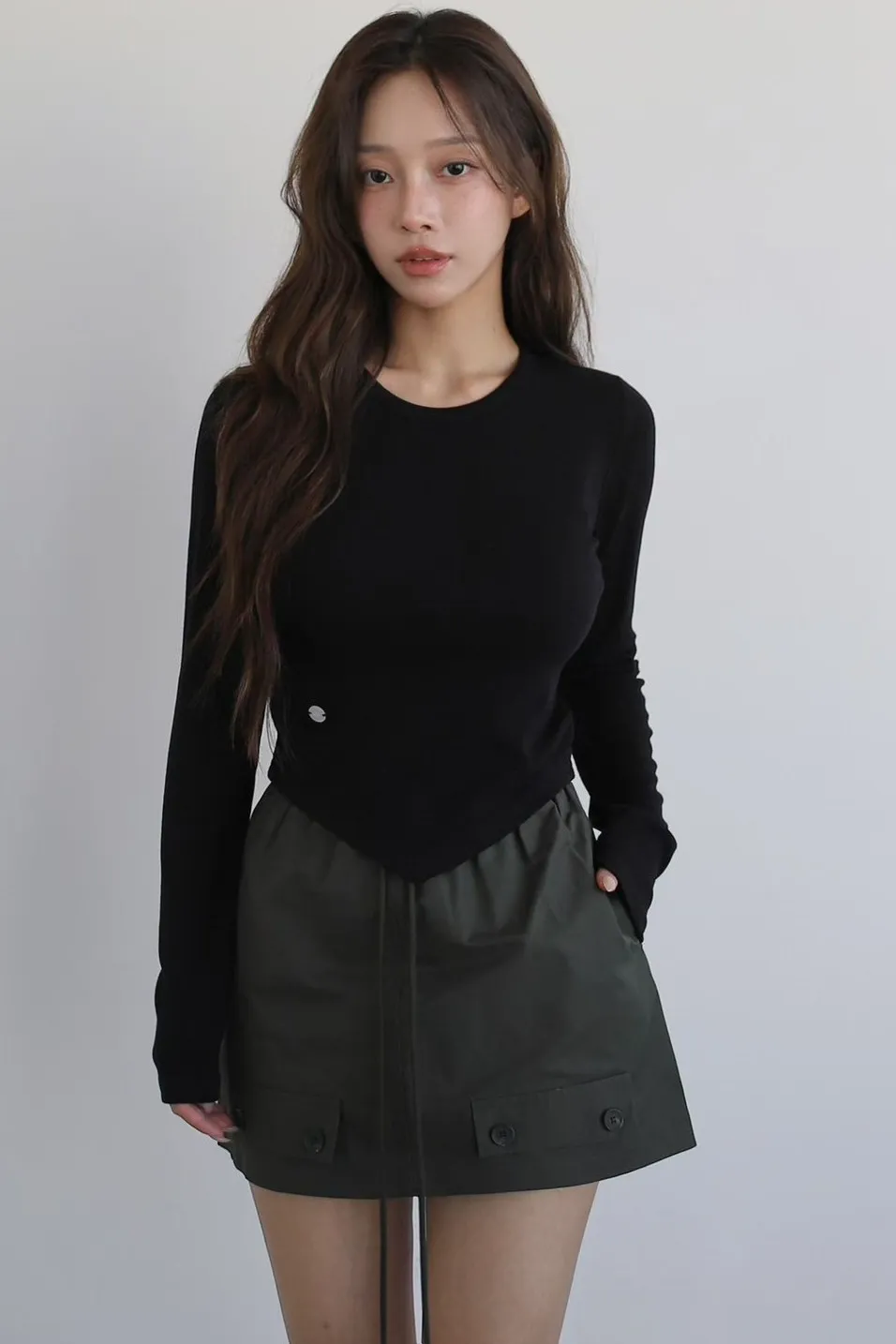 棉+聚酯+彈力 透氣舒適 顯瘦菱格下擺 彈性佳 側腰小標 穿到小L
