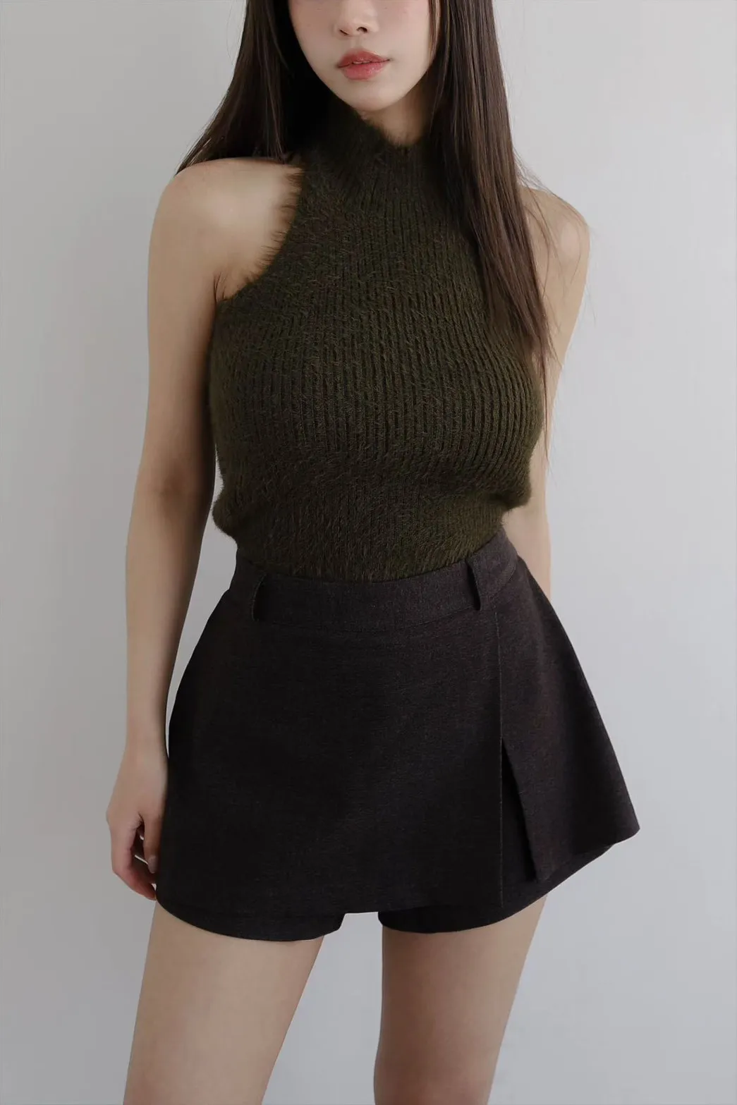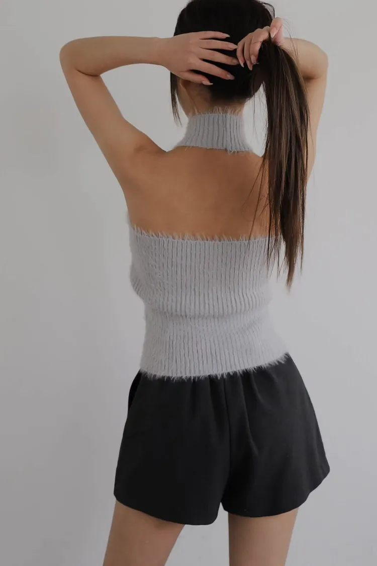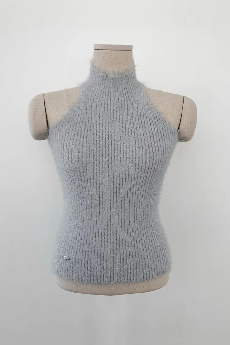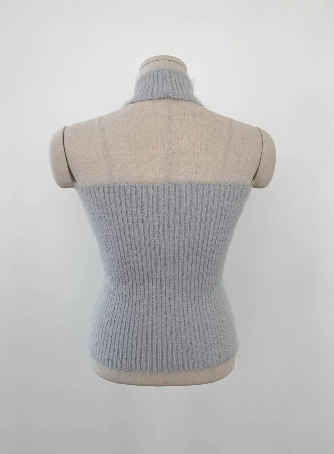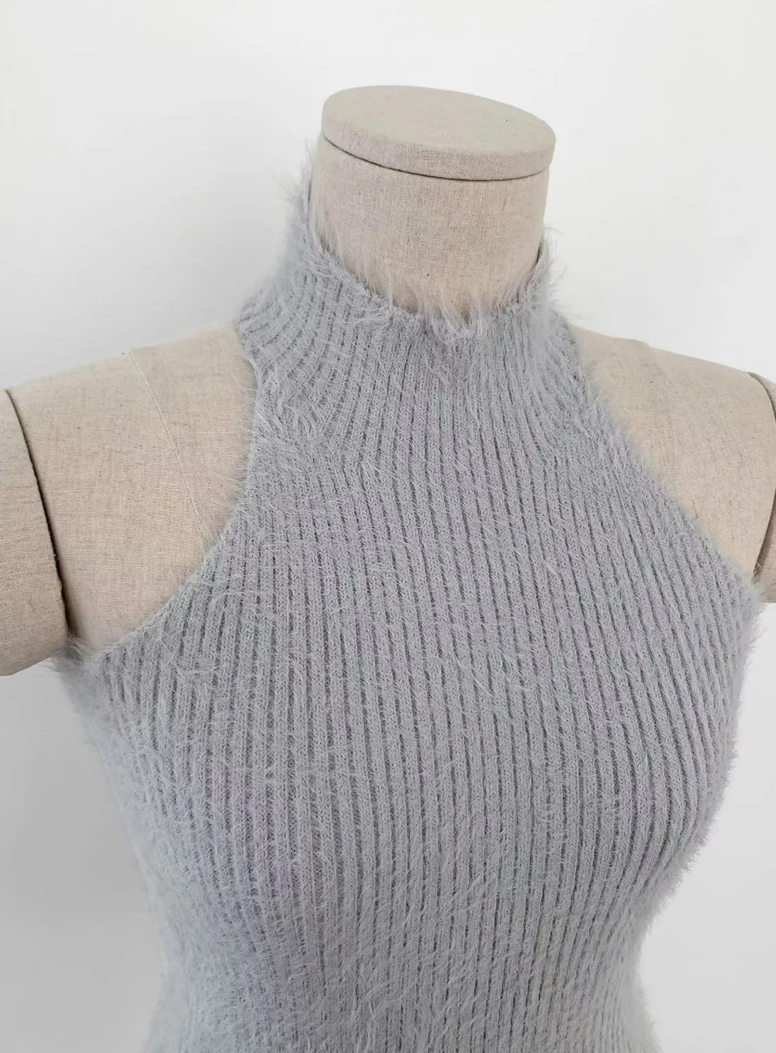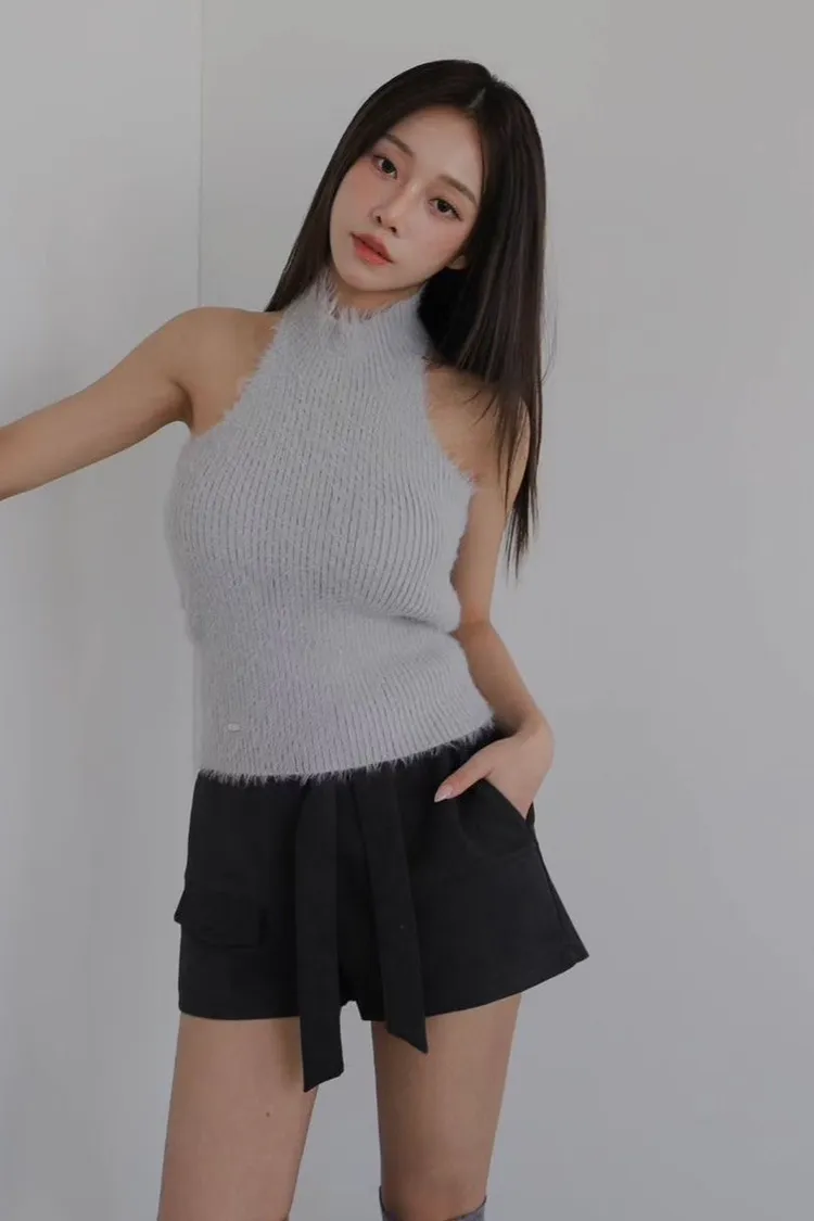 聚酯+彈力 露出美背 削肩設計 舒服面料 脖子毛毛不刺癢 彈性佳