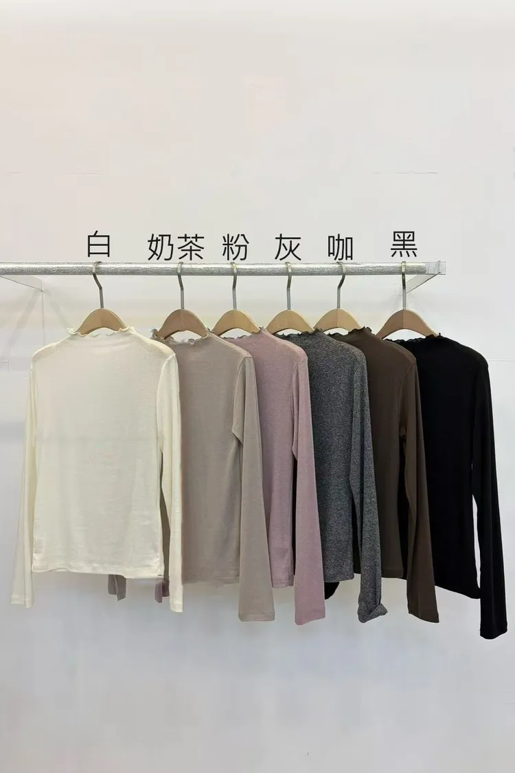 天絲77%+羊毛18%+彈力 親膚舒適 薄款柔軟 木耳領 彈性佳