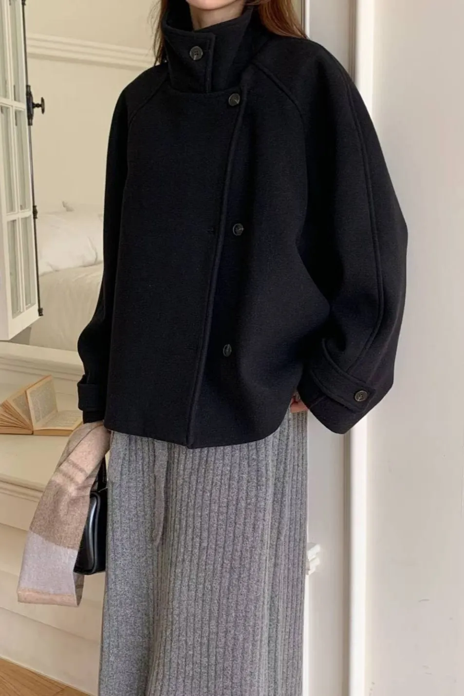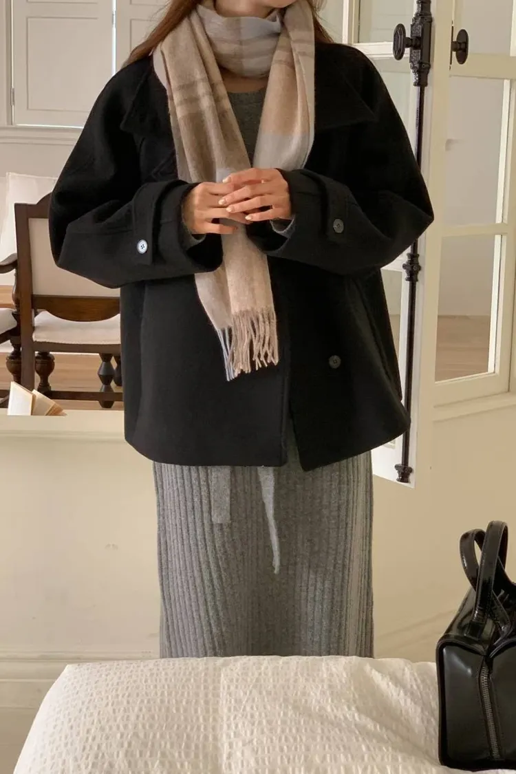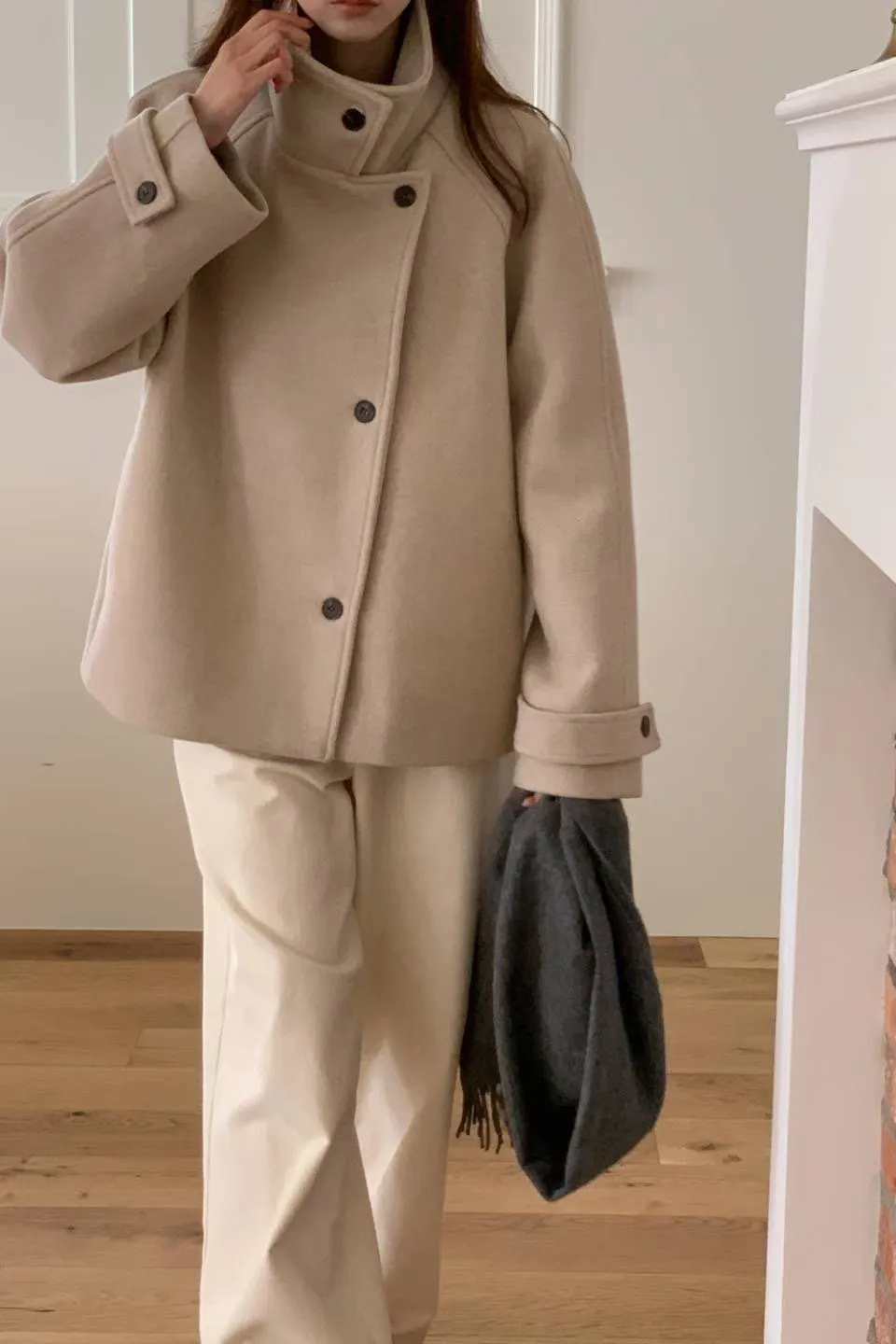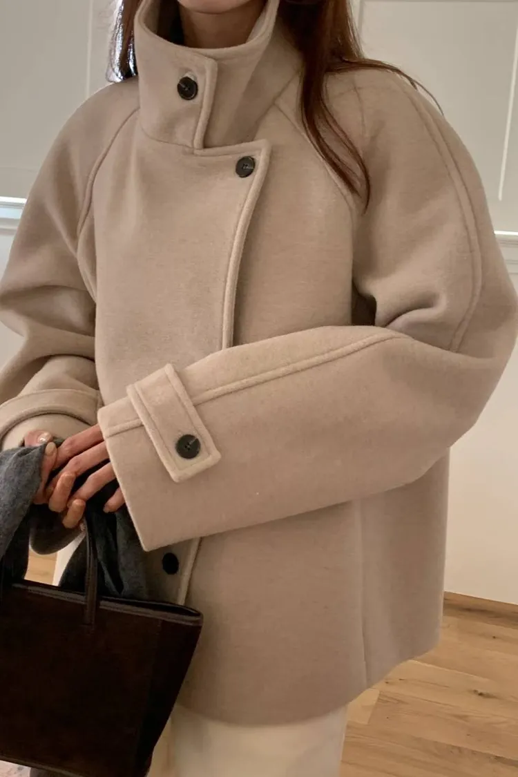 羊毛30% 斜側釦設計 質地紮實 有內裡 有暖度 有口袋 L號友善