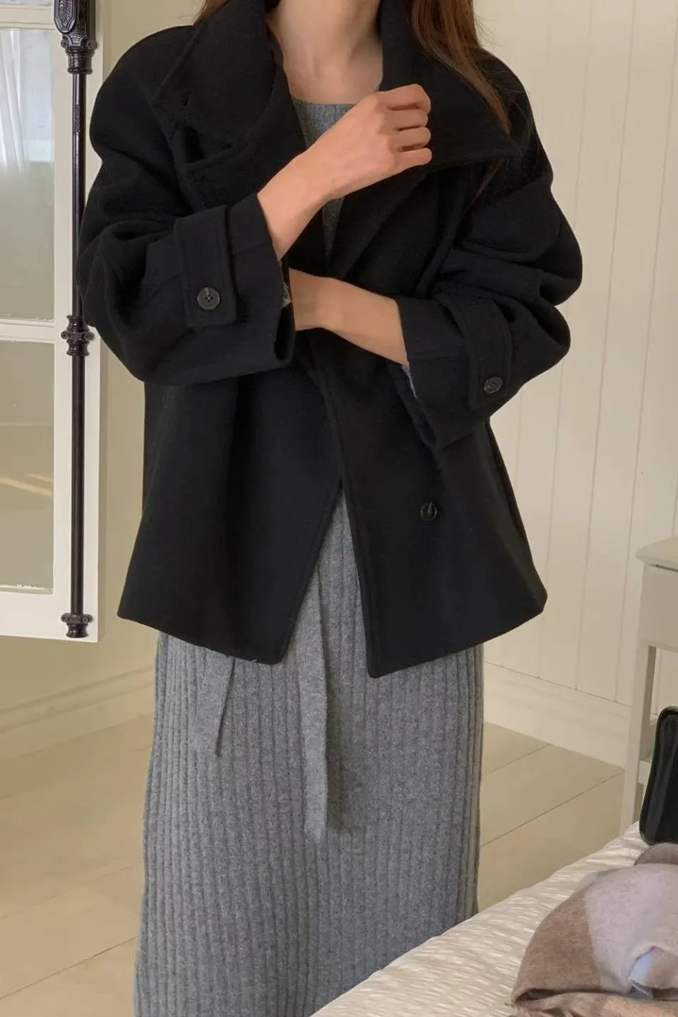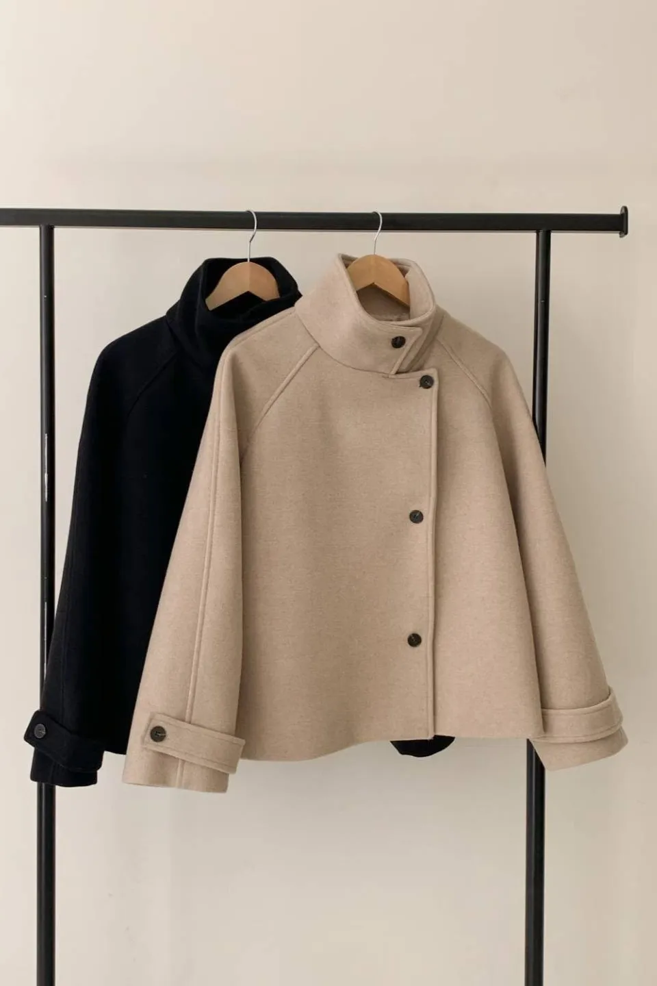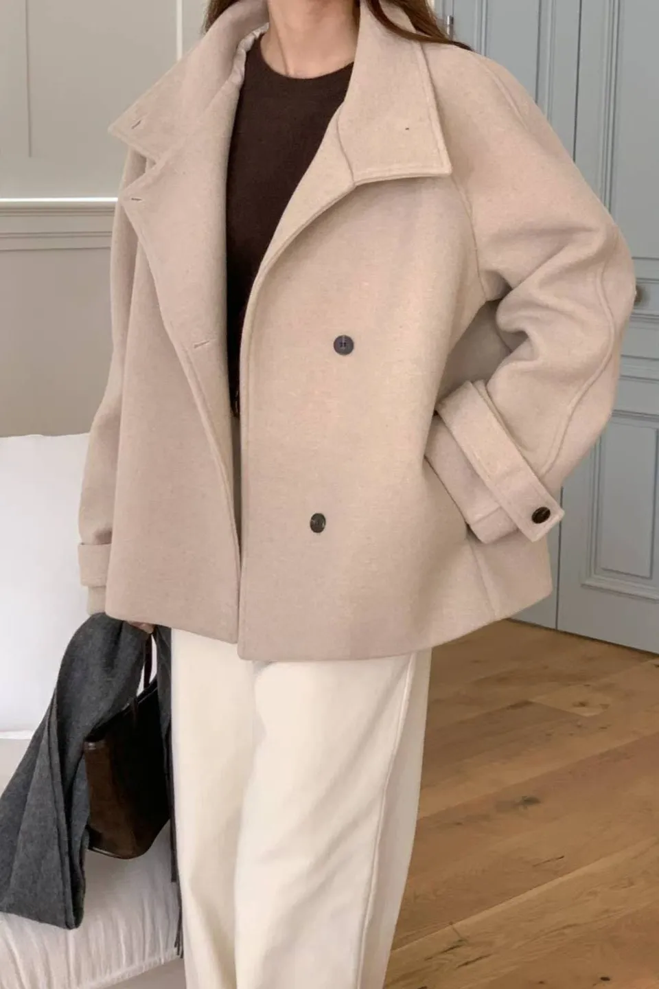 羊毛30% 斜側釦設計 質地紮實 有內裡 有暖度 有口袋 L號友善
