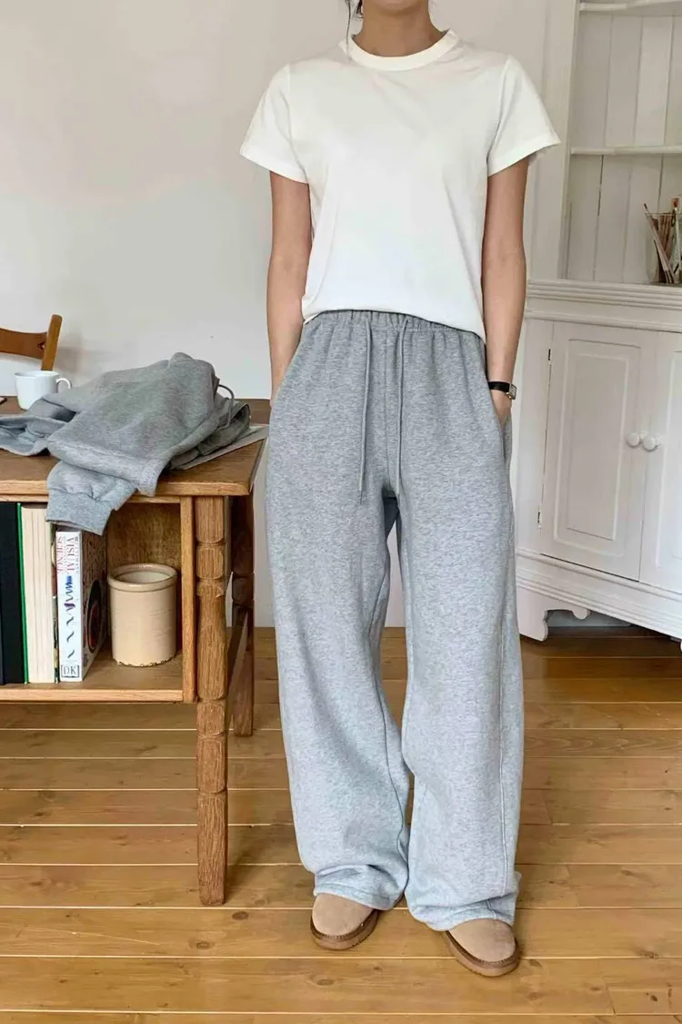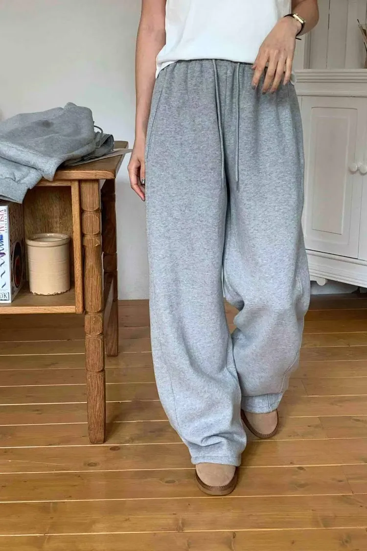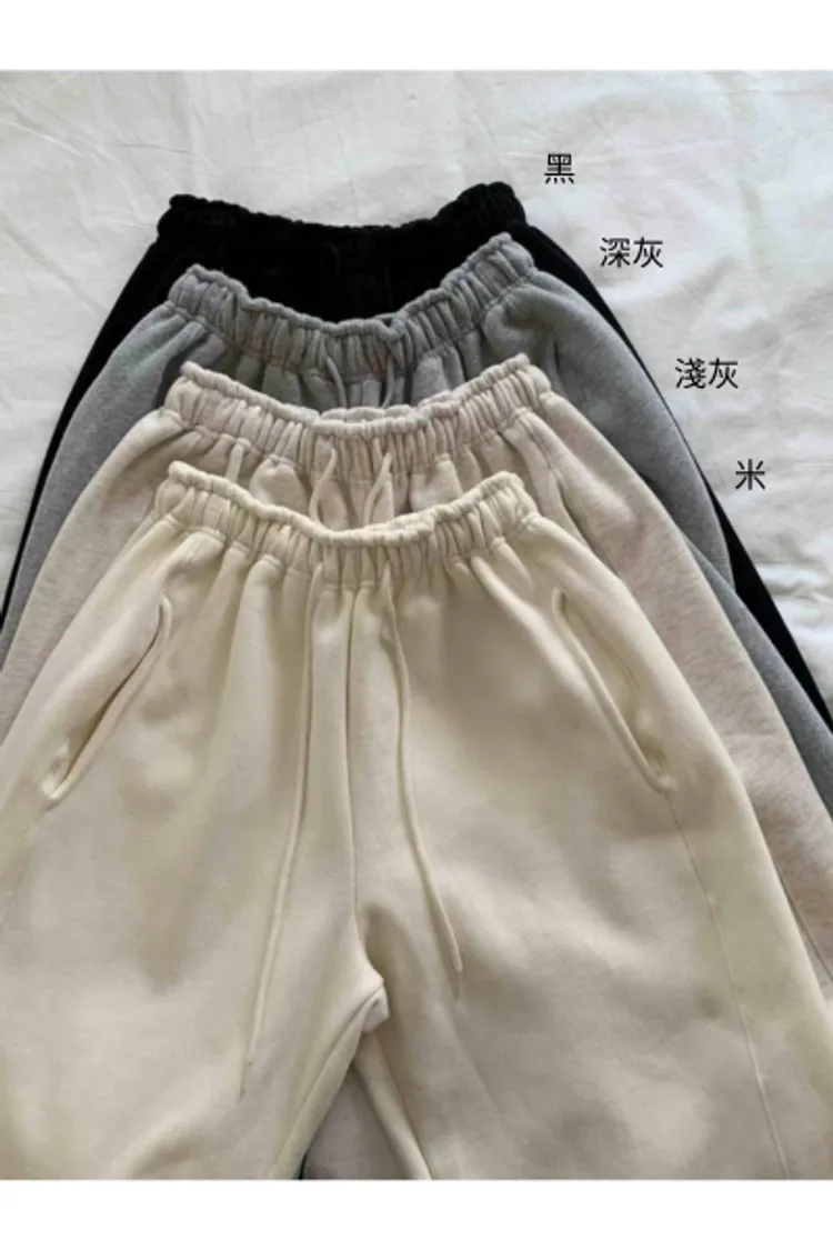 棉+聚酯 側面是兩條車線 有口袋 有刷毛 褲管有抽繩