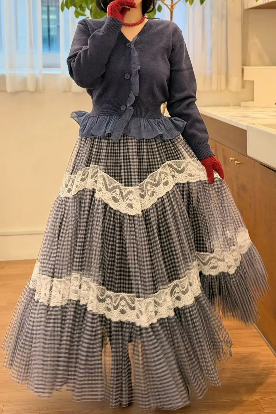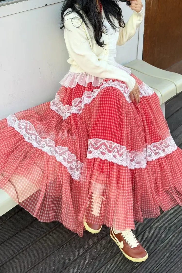聚酯+蕾絲,薄款透光網紗 輕盈不重 色彩層次 全腰鬆緊XL友善