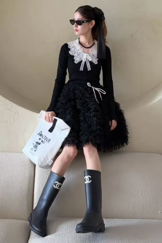 棉+聚酯+彈力 重工高級視覺 胸前蝴蝶結