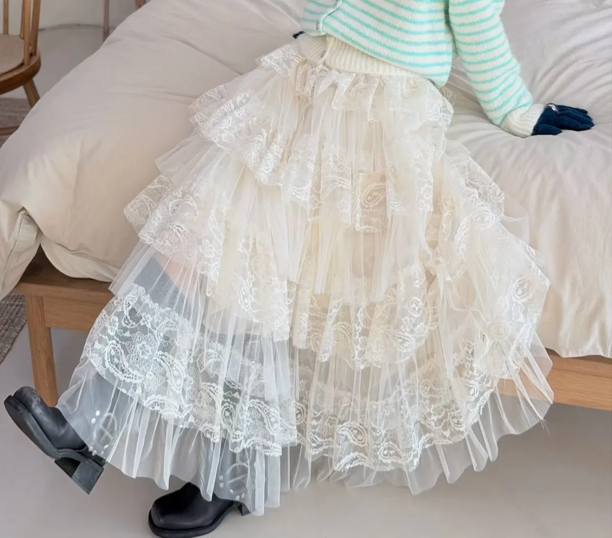 雪紡+聚酯 重工藝術織線 透光多層次 有內裡 飄逸垂墜感 質地不重