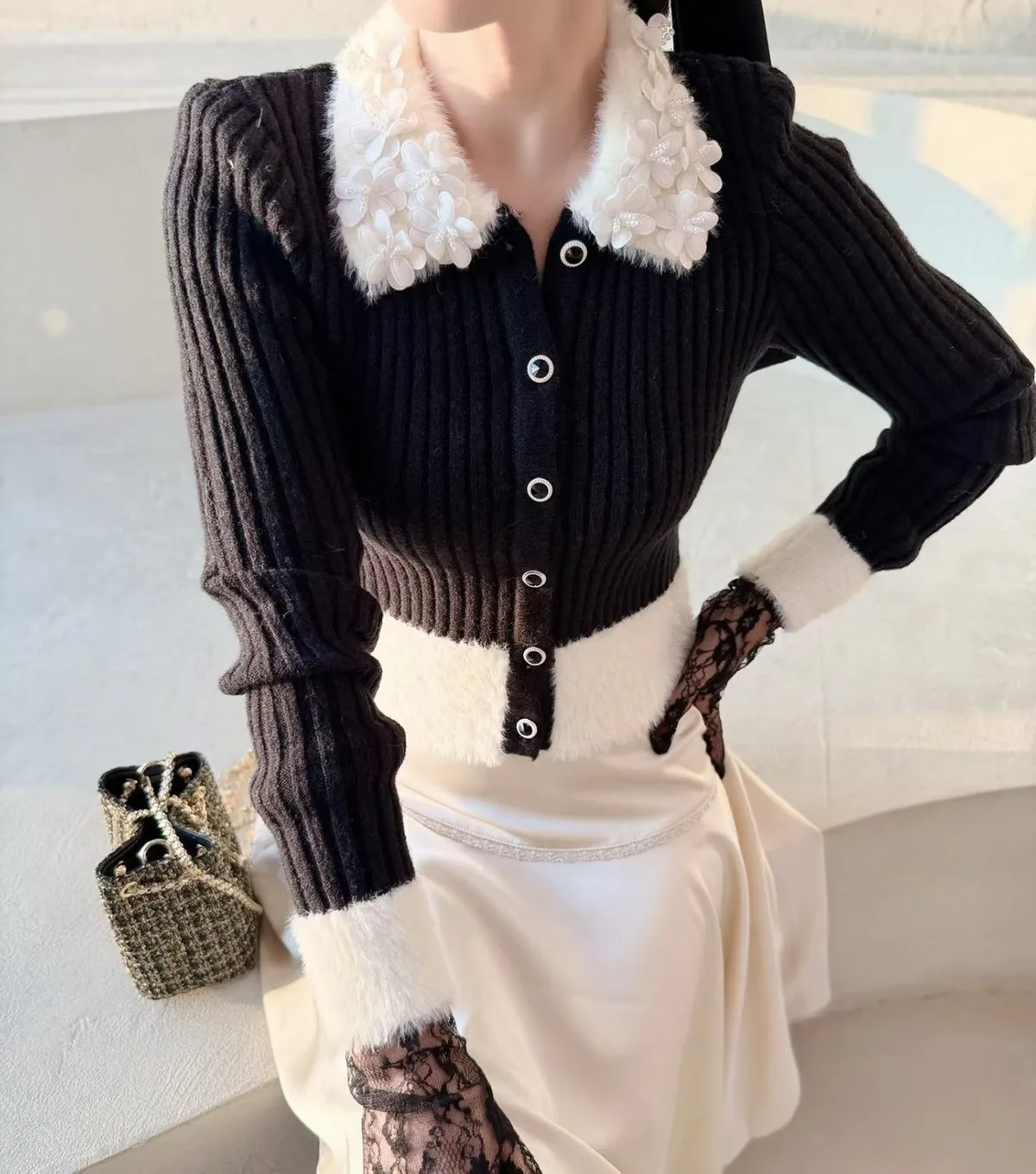 羊毛10% 毛毛觸感類似水貂毛 顯瘦版型 彈性很大 有暖度 墊肩可拆