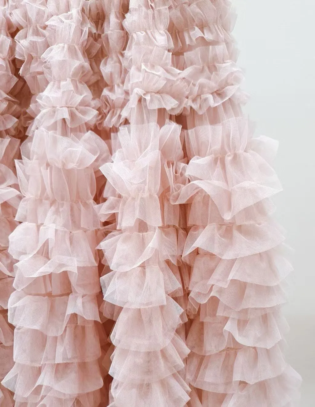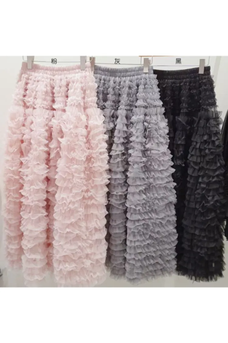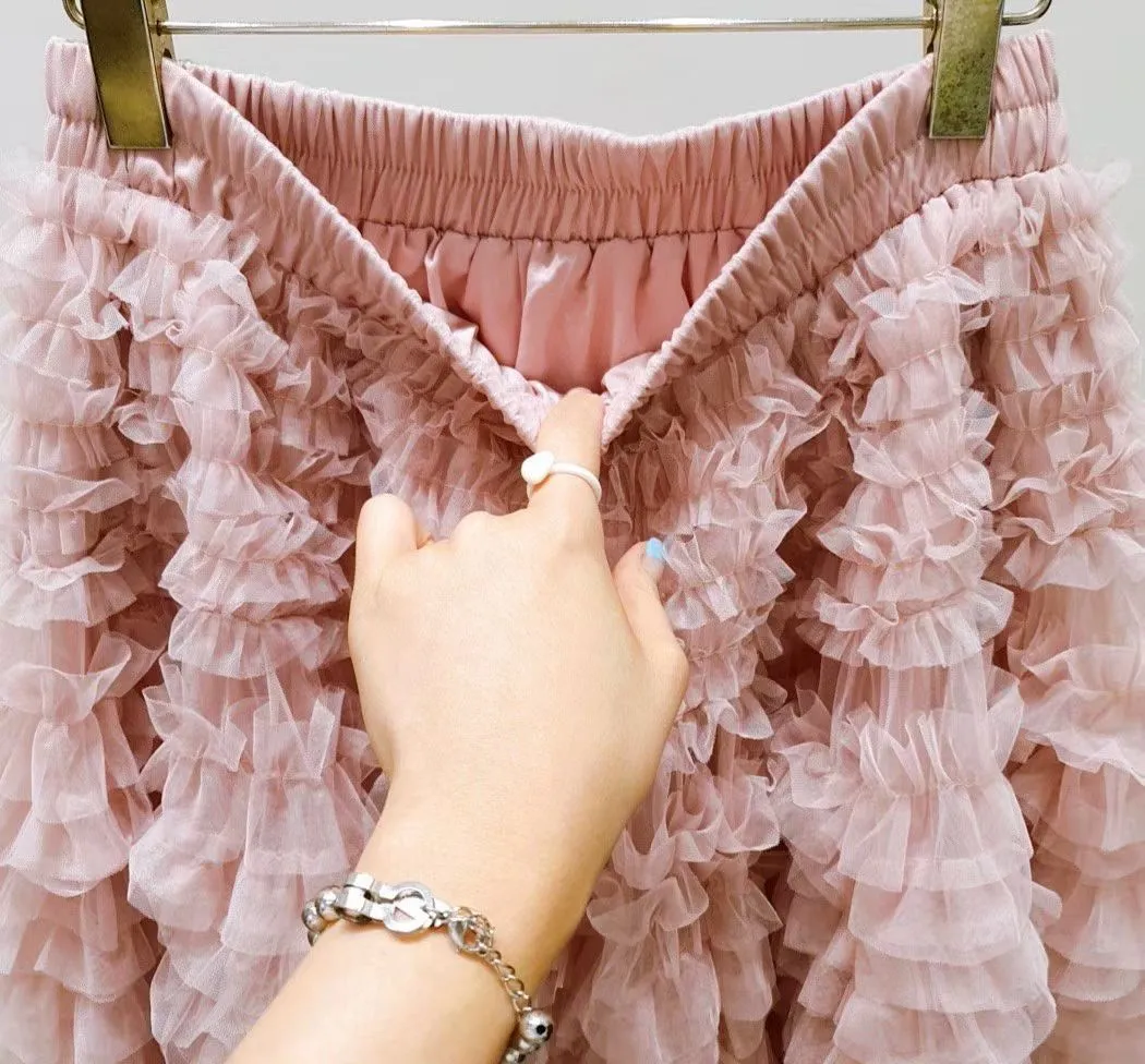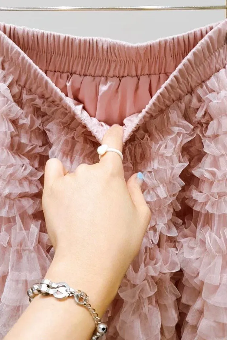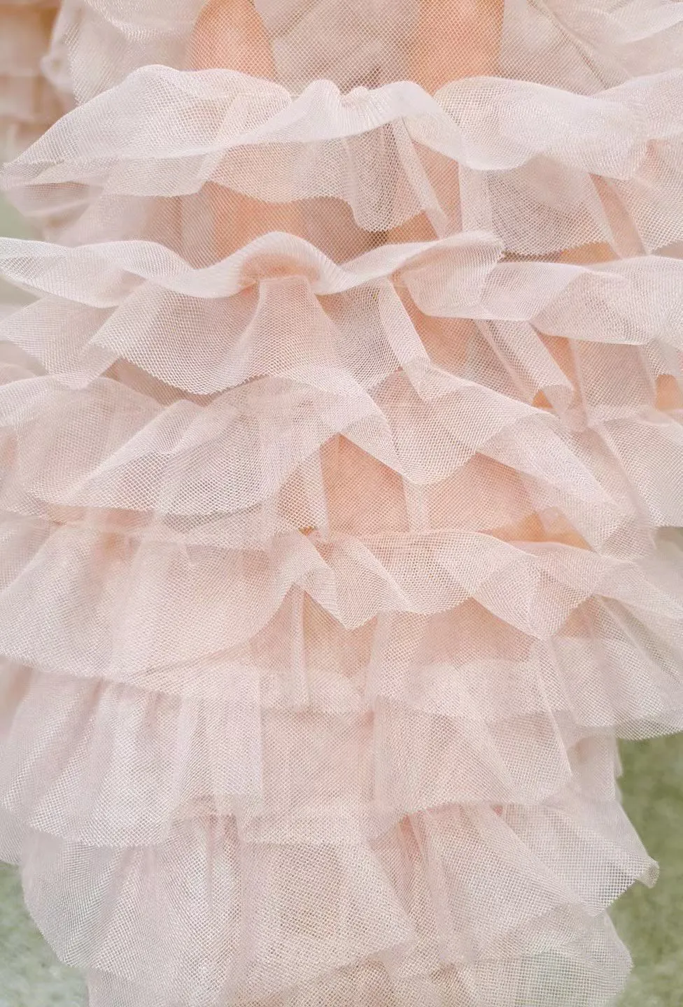 聚酯 細緻多層次花瓣網紗 重工Aline設計 全腰鬆緊