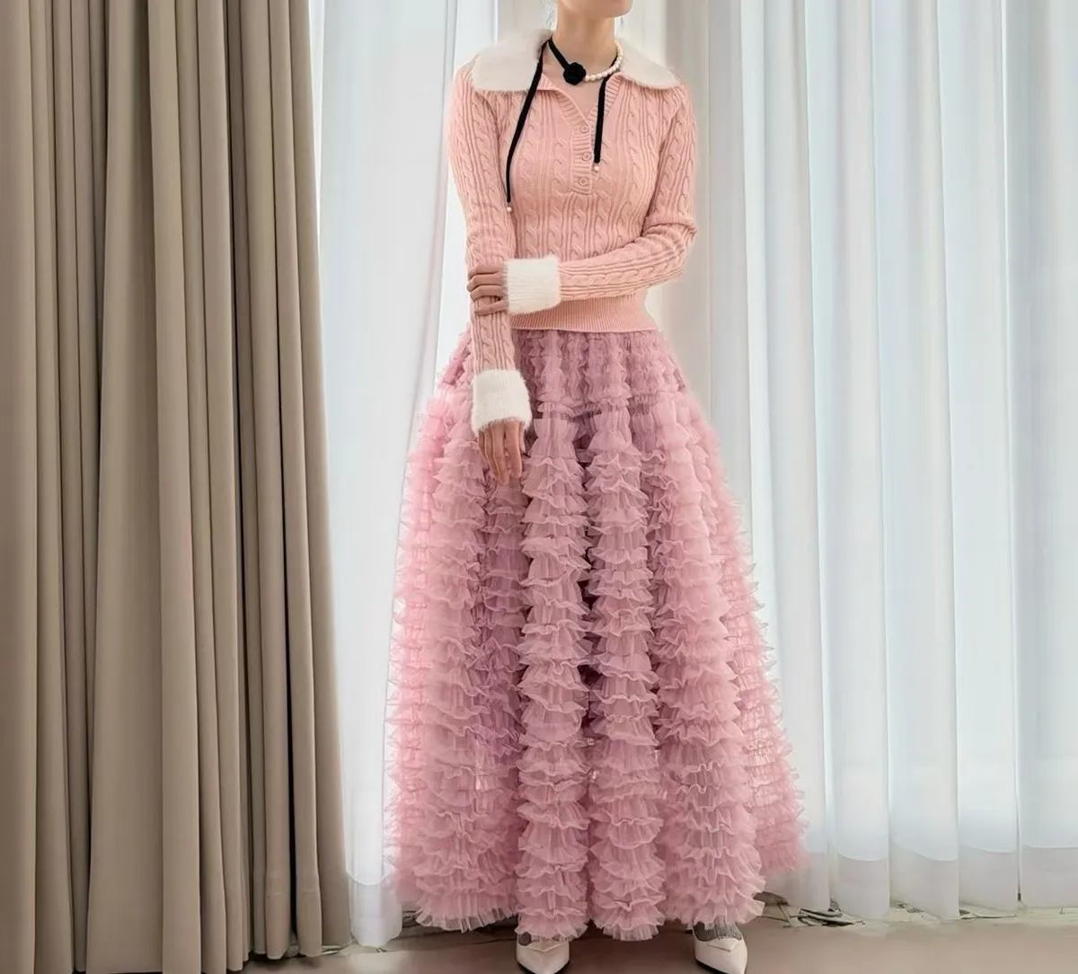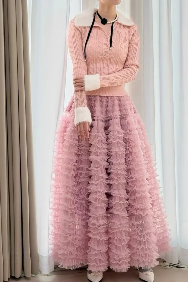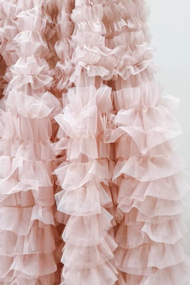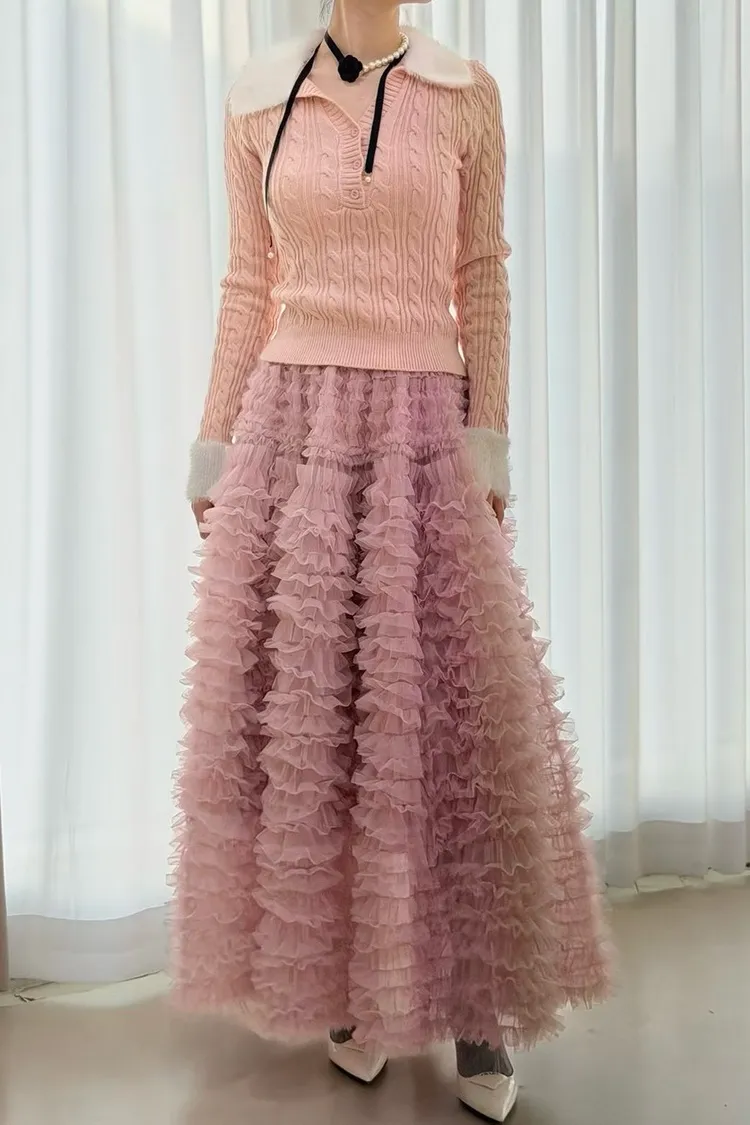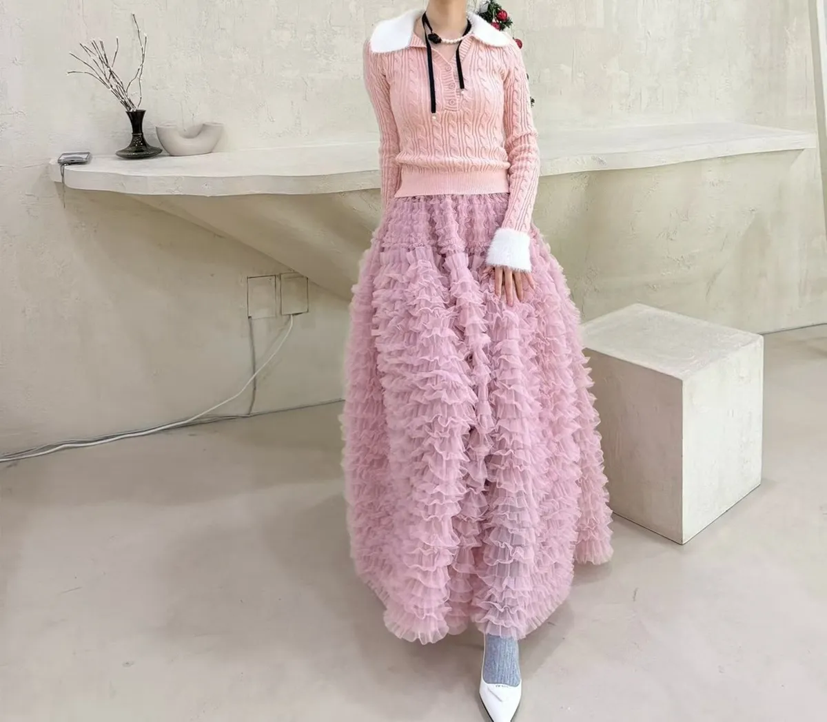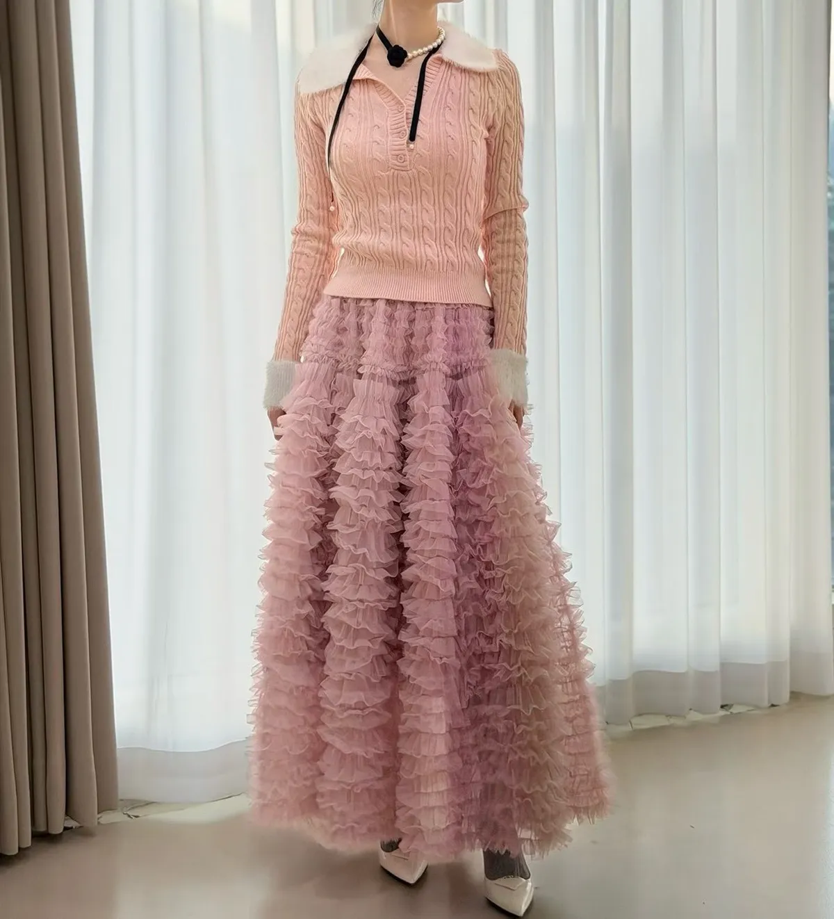 聚酯 細緻多層次花瓣網紗 重工Aline設計 全腰鬆緊