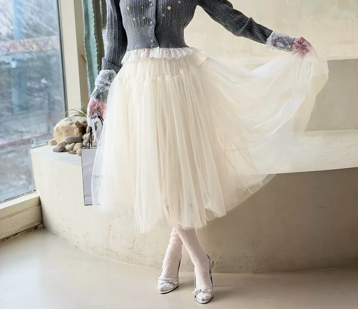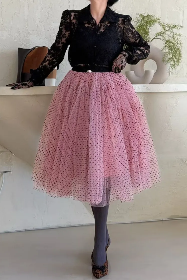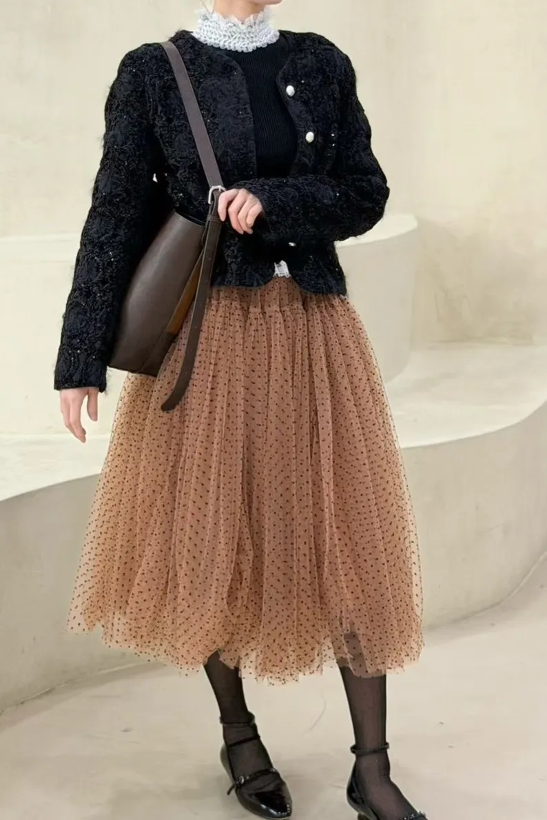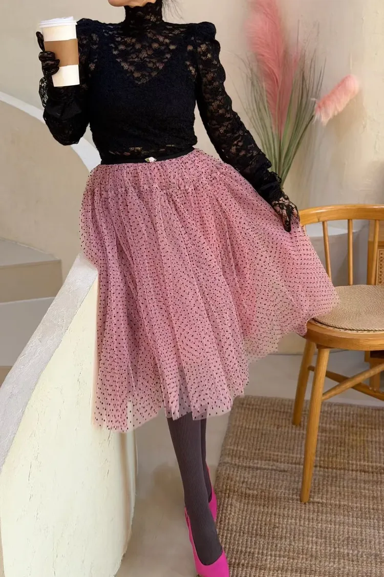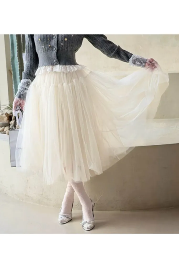 聚酯 自然細緻網紗 腰有鬆緊 百搭風格 米色沒有細點點