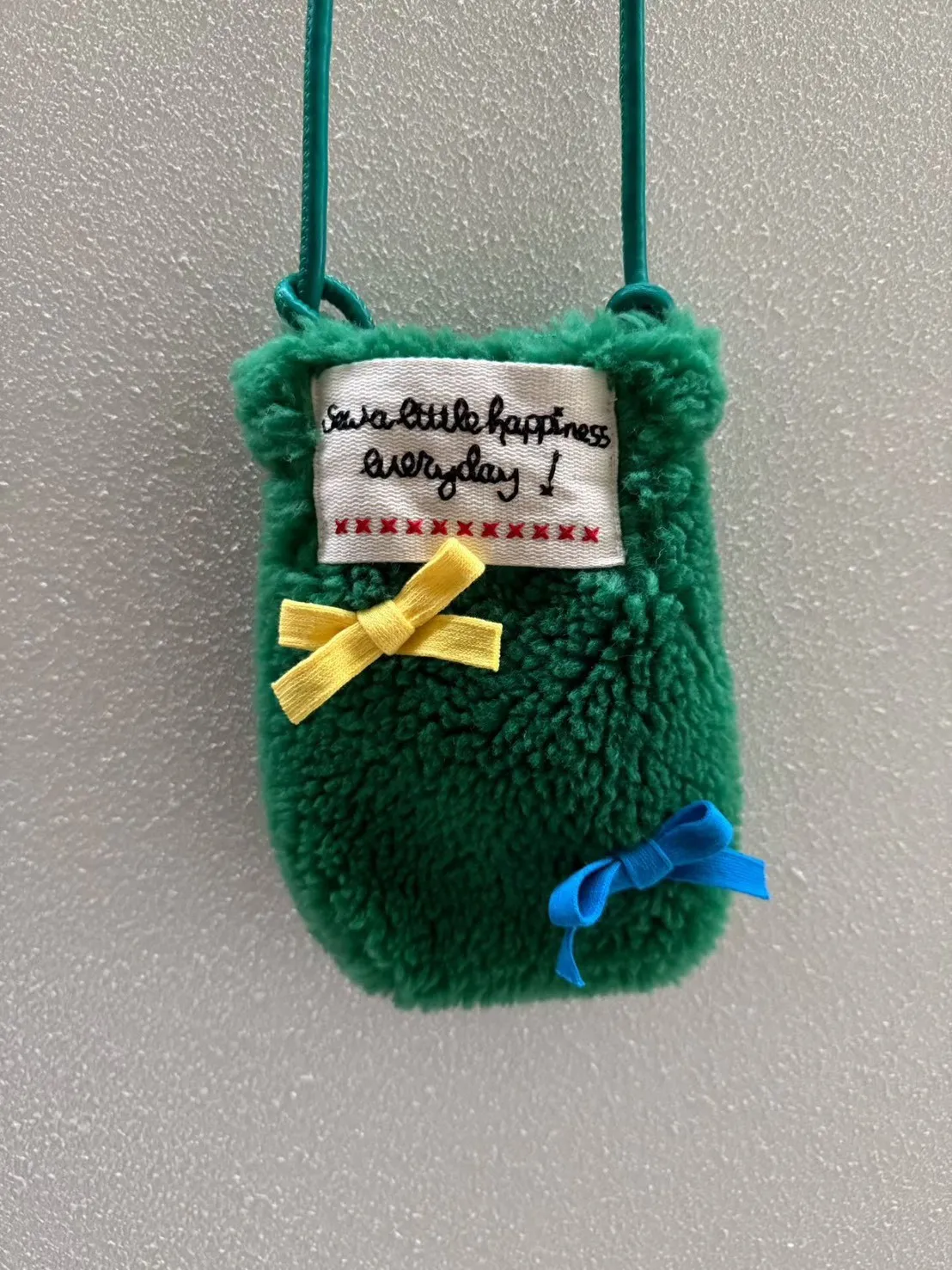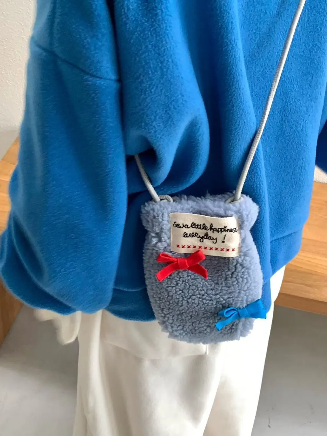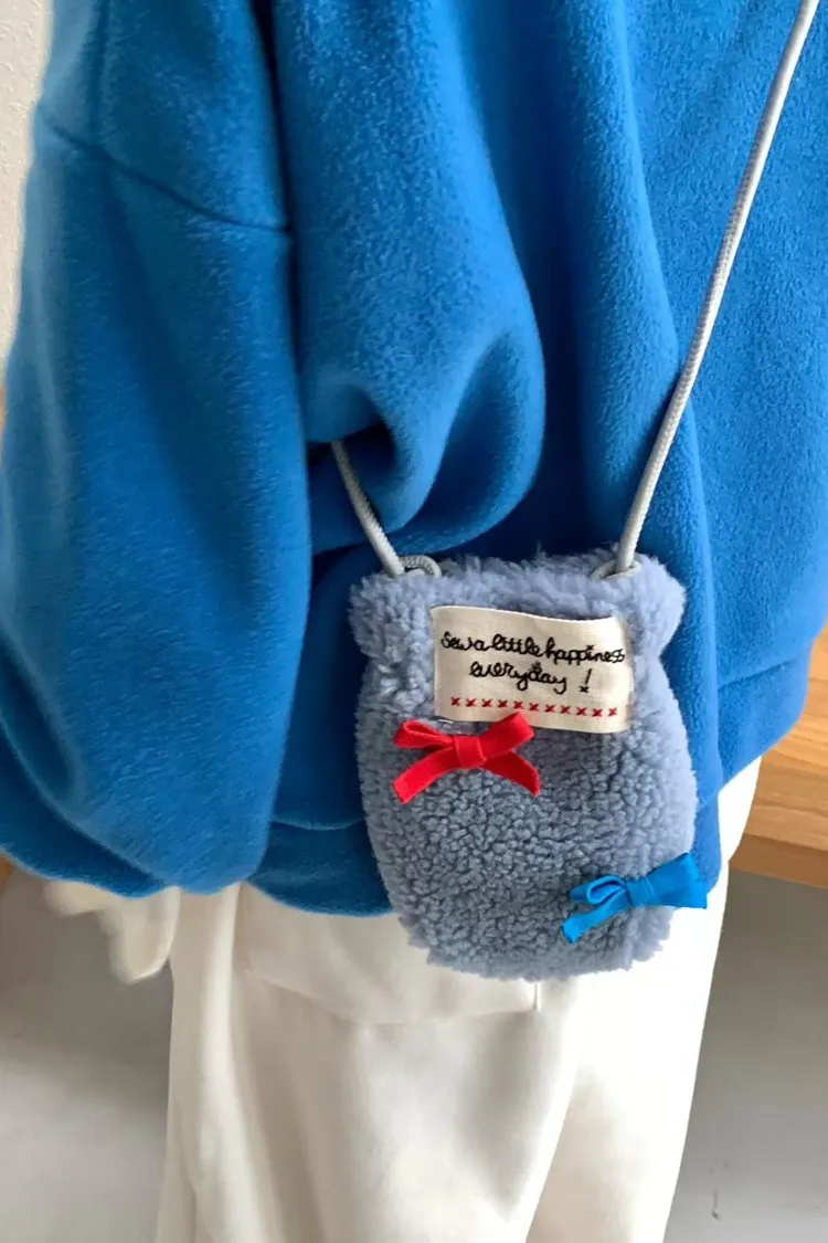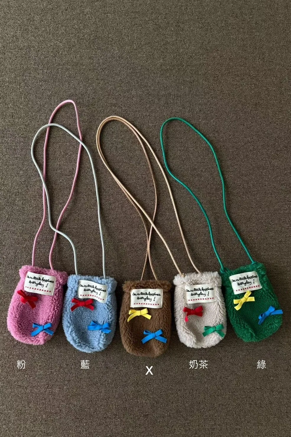 聚酯 羊羔毛觸感 刺繡布標 手工蝴蝶結 磁吸釦 肩帶可綁調