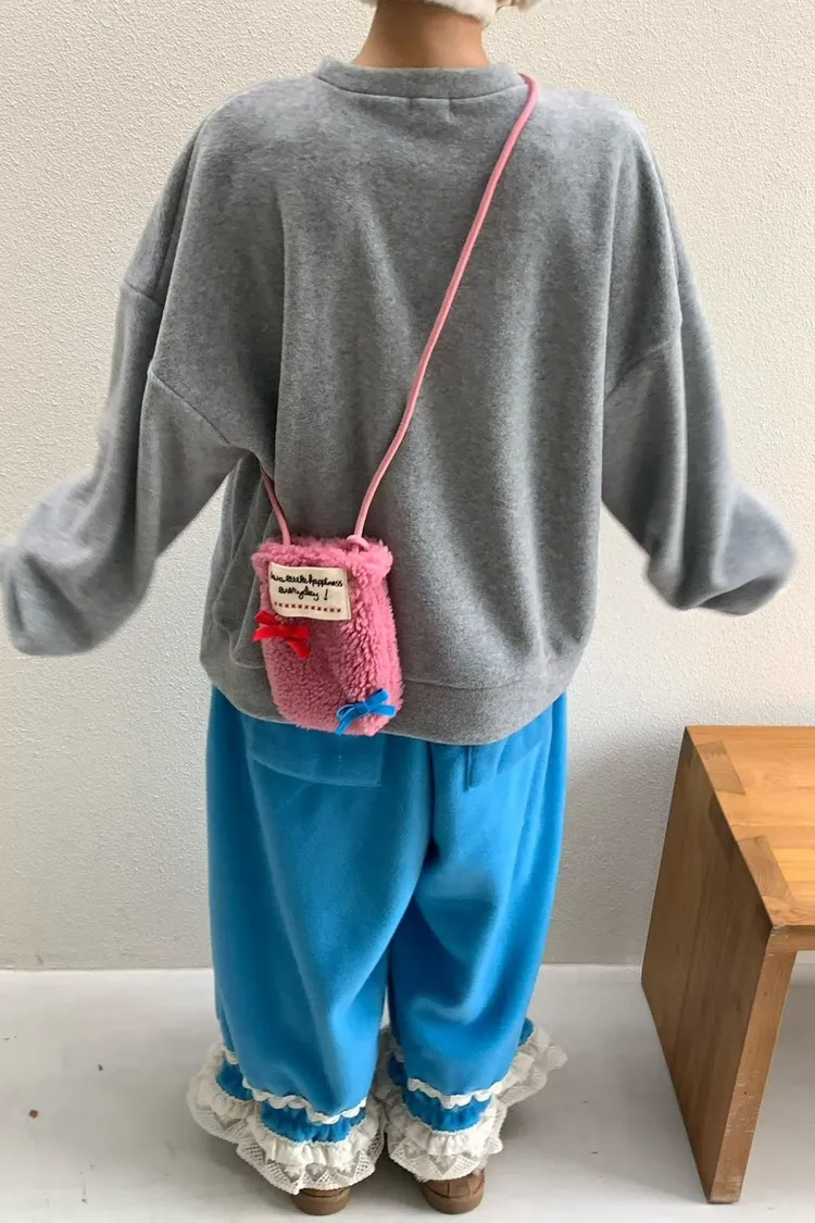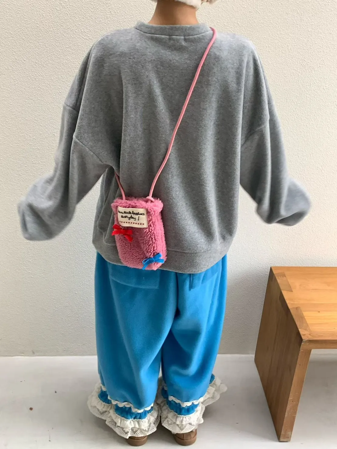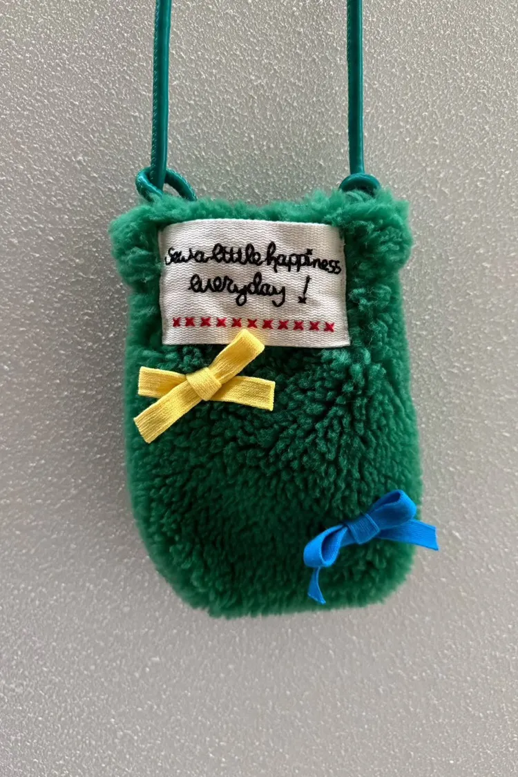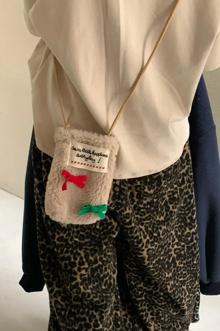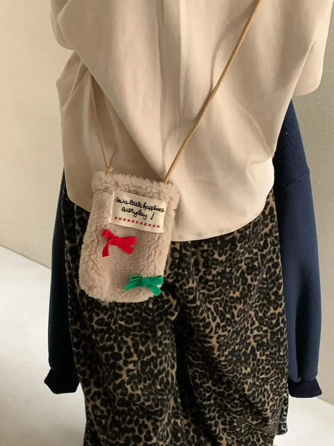 聚酯 羊羔毛觸感 刺繡布標 手工蝴蝶結 磁吸釦 肩帶可綁調