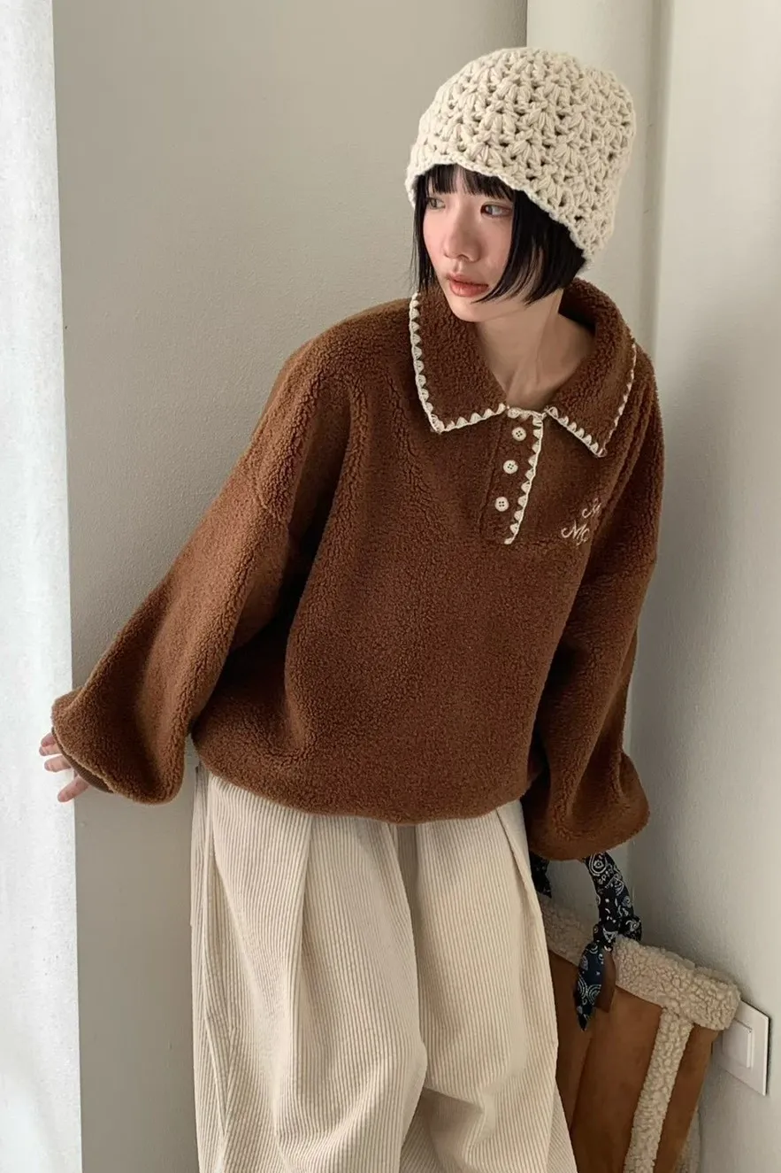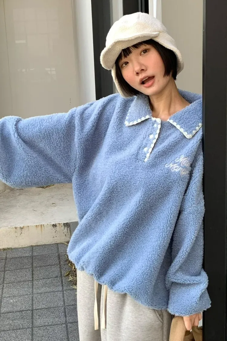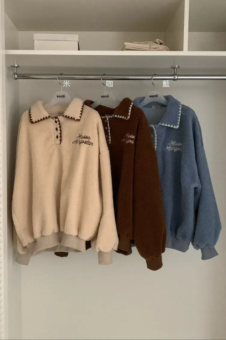 聚酯 刺繡滾邊翻領 胸前三釦 有暖度 內襯滑順