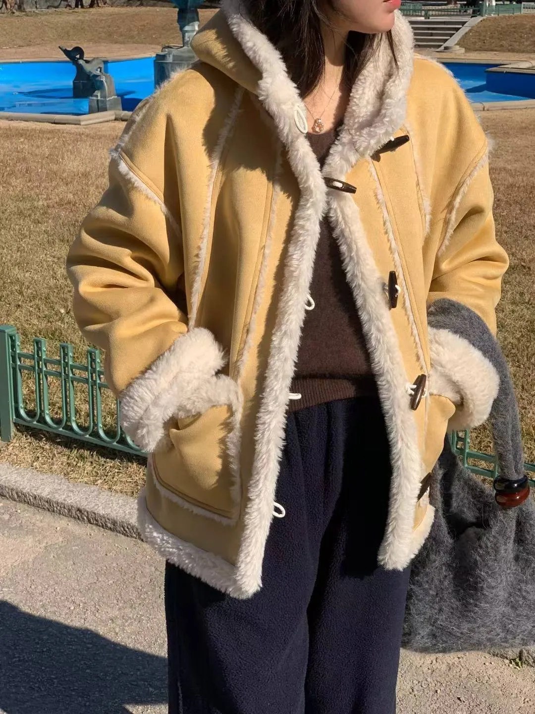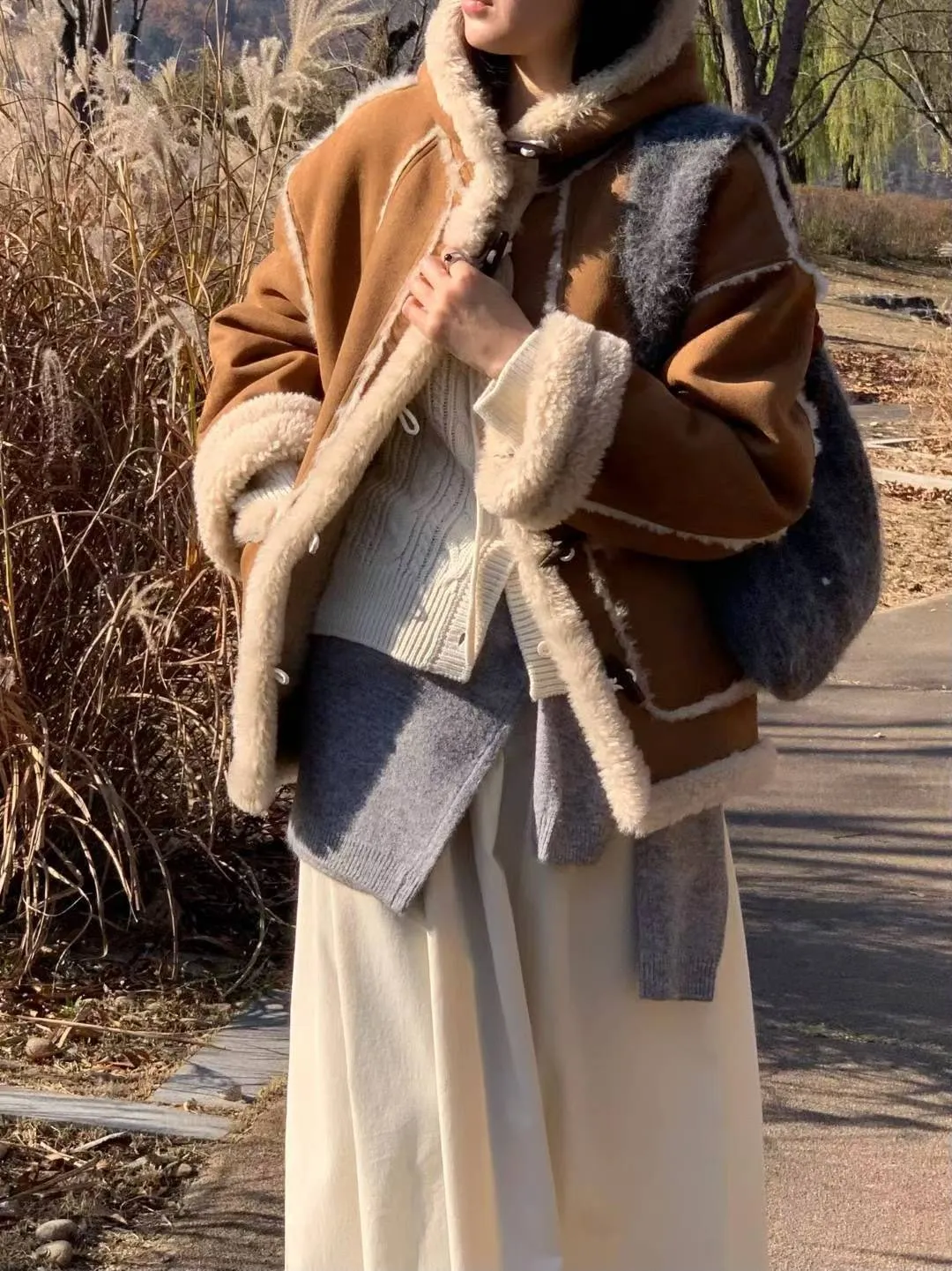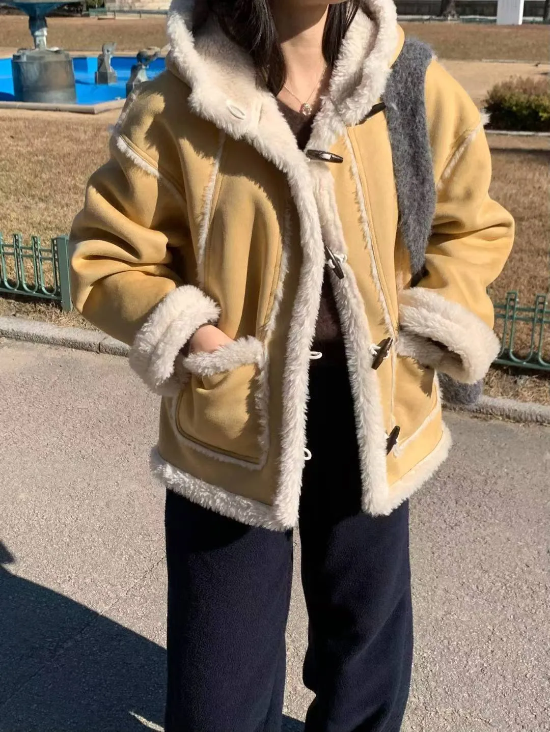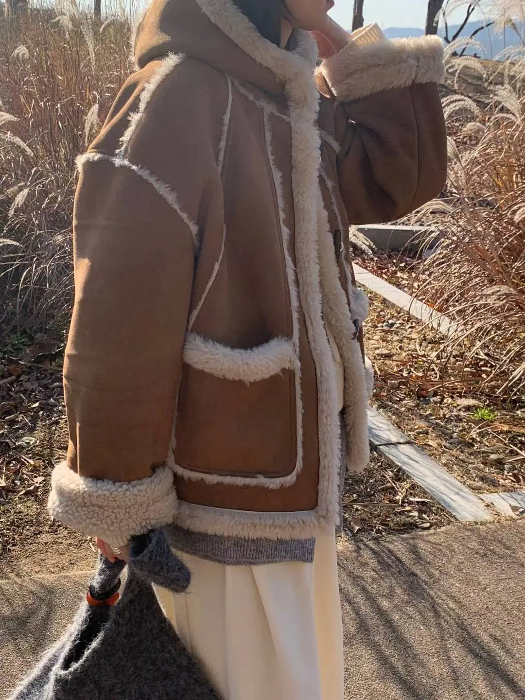 仿麂皮+聚酯羊羔毛 觸感舒適 內層柔軟毛毛 有口袋 版型好看 約1.5公斤