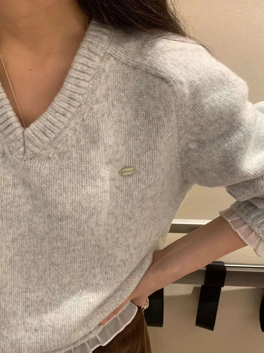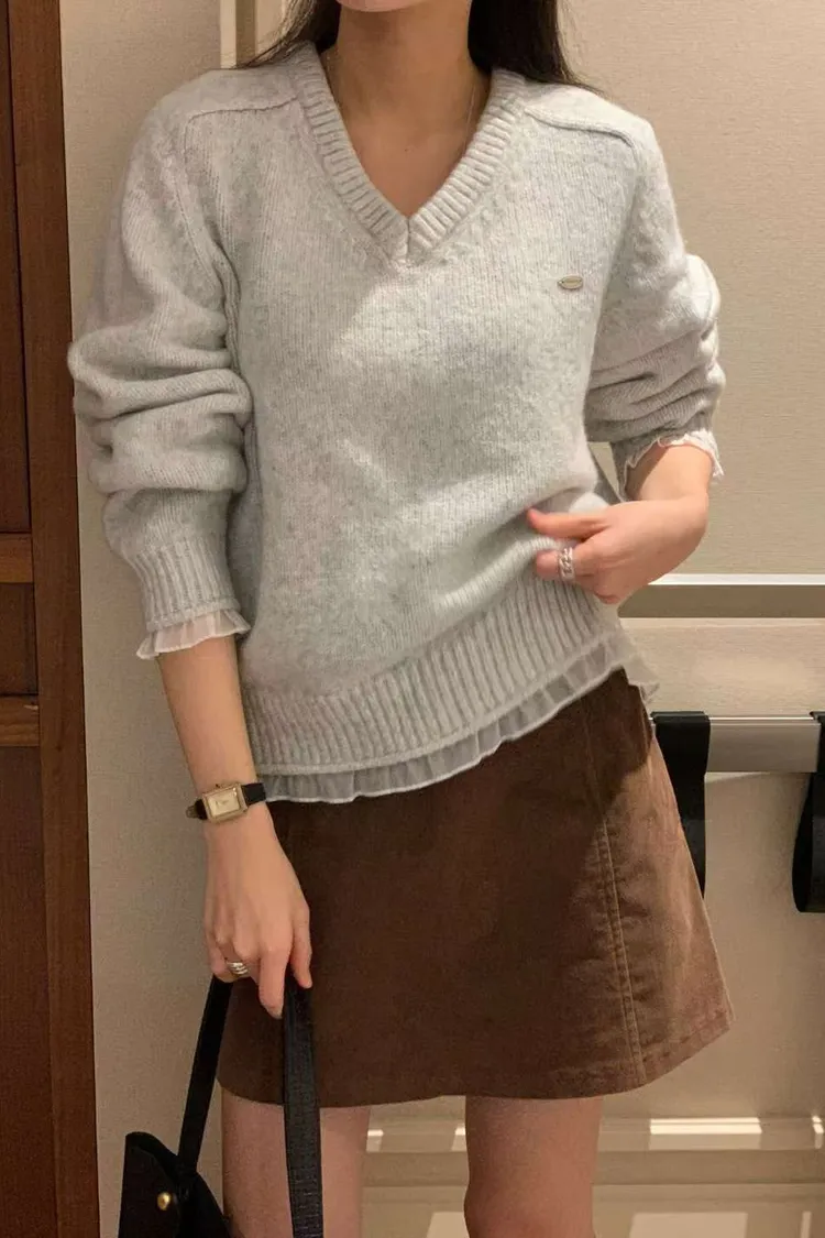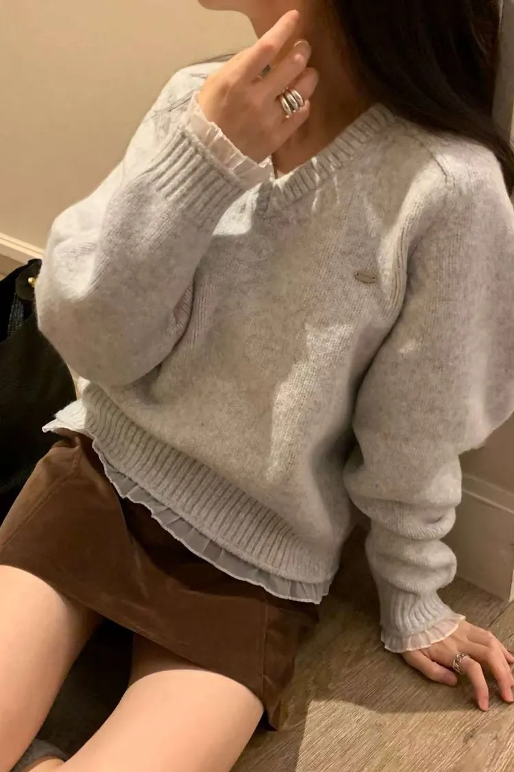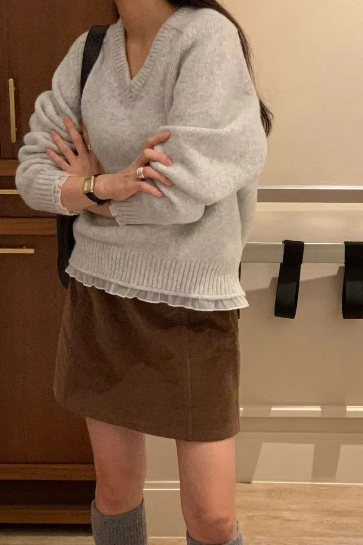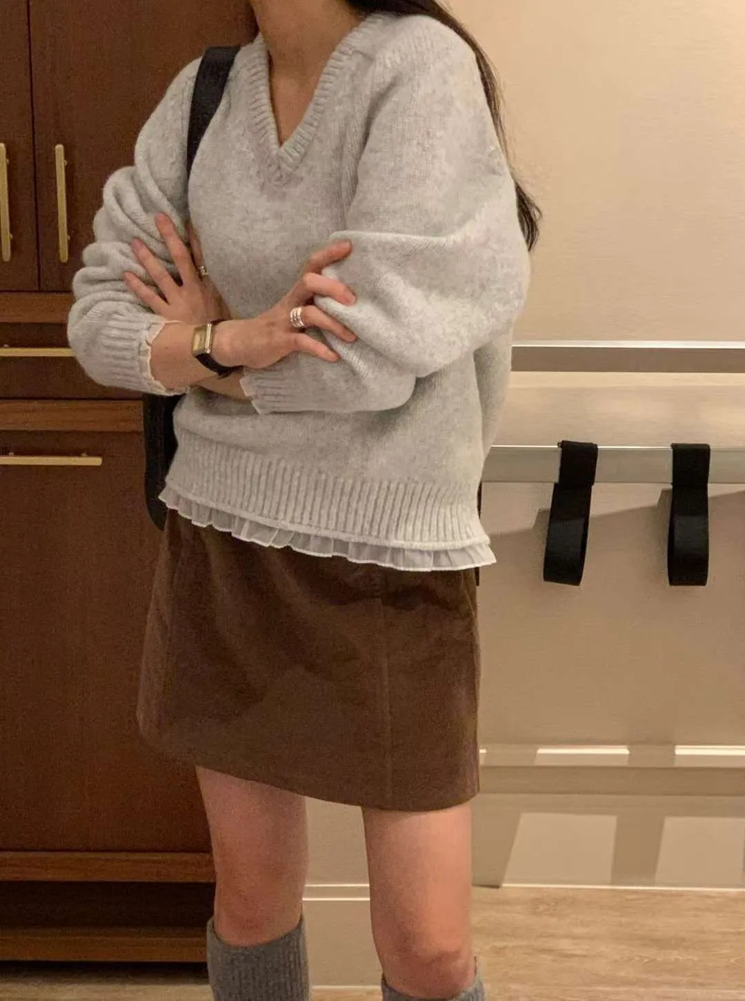羊毛5%+聚酯 下擺跟手袖拼接網紗