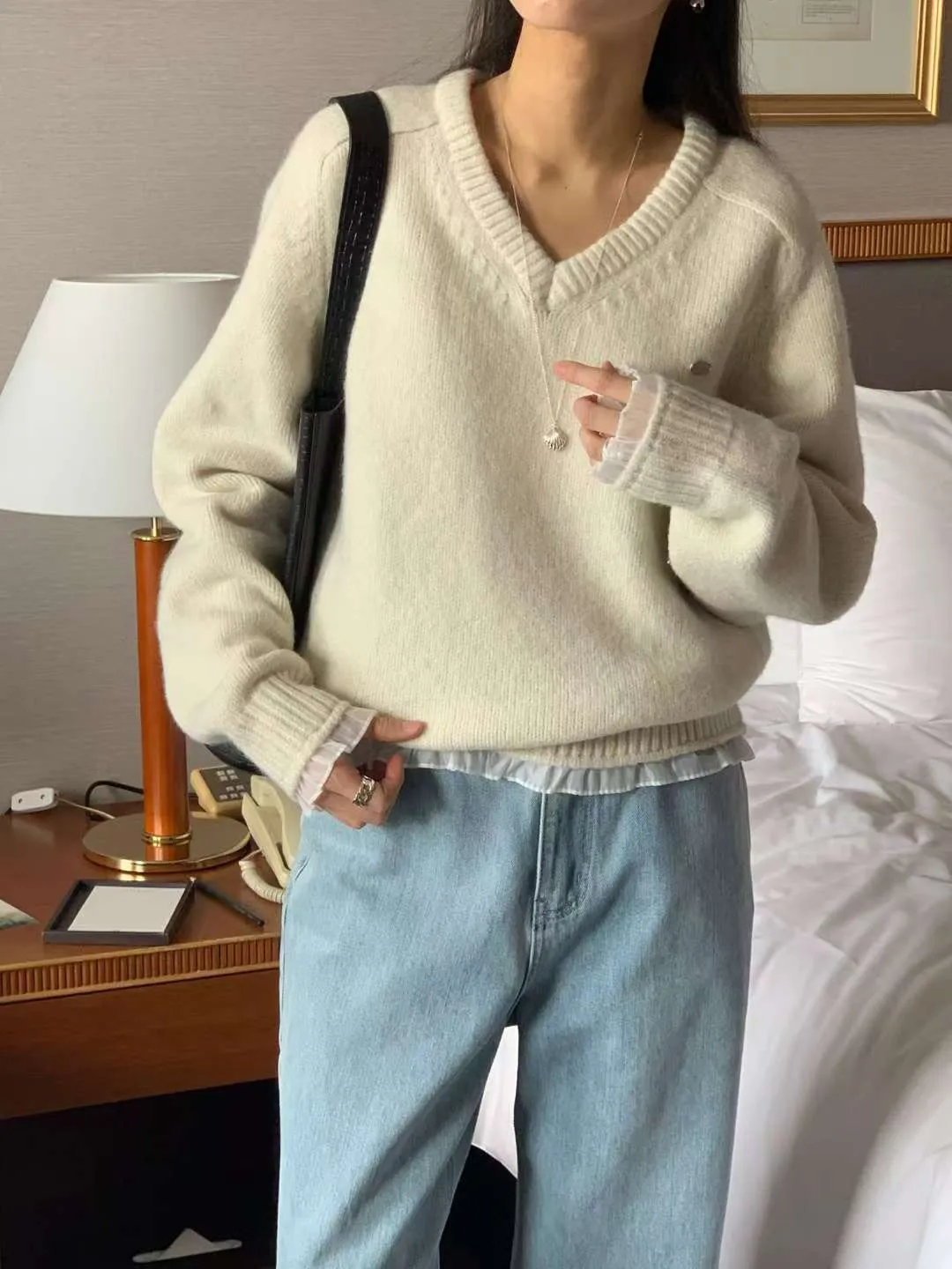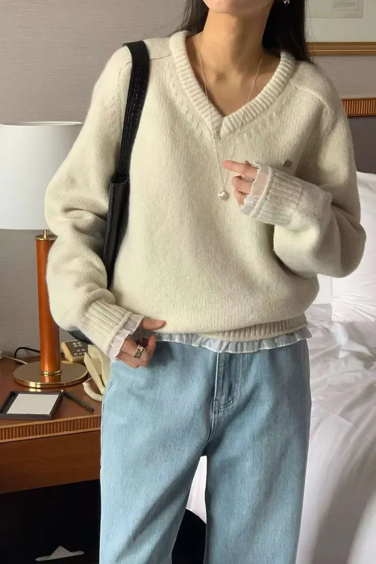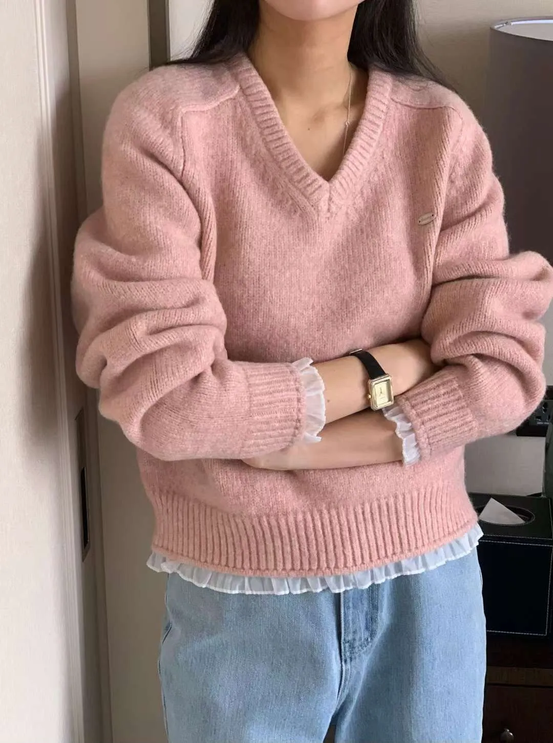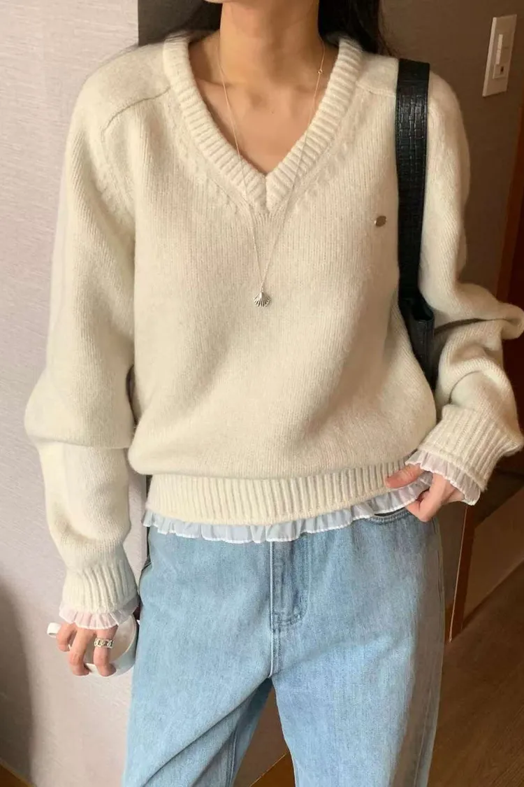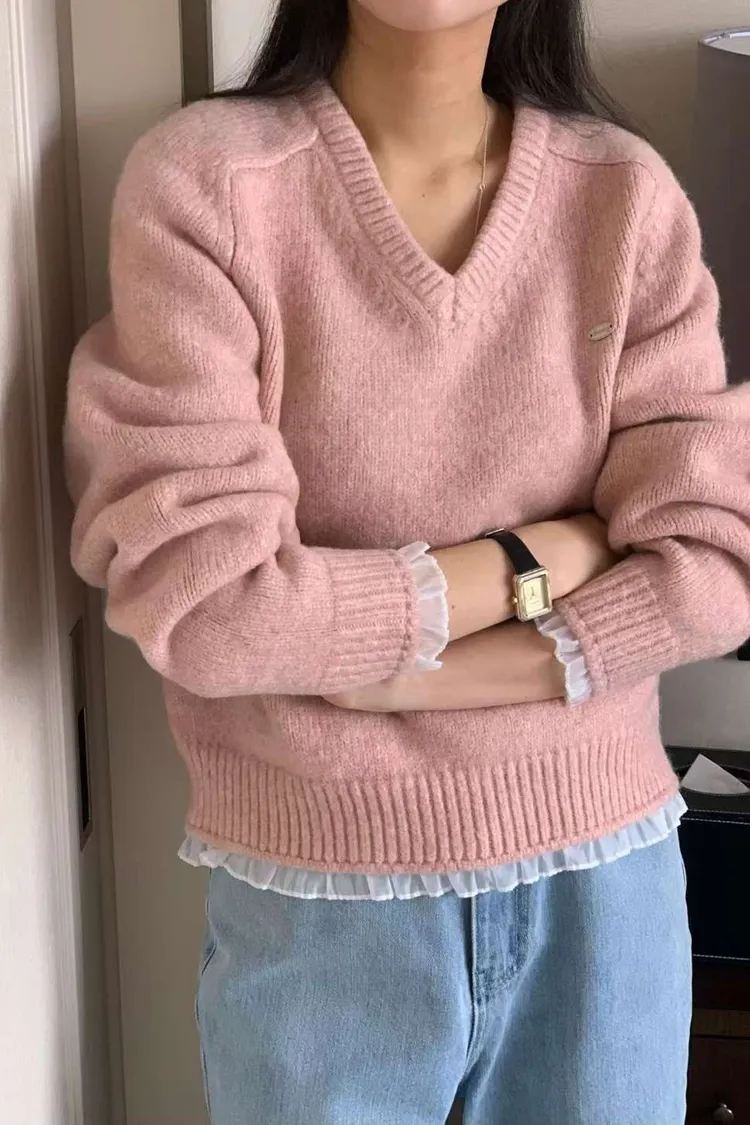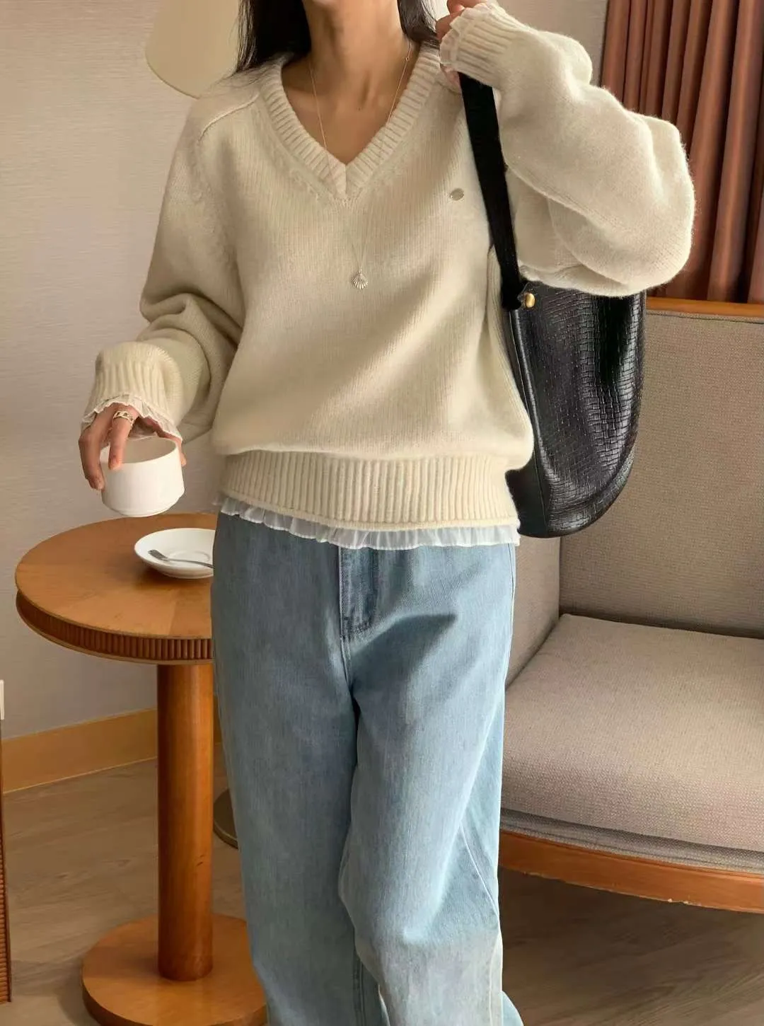 羊毛5%+聚酯 下擺跟手袖拼接網紗