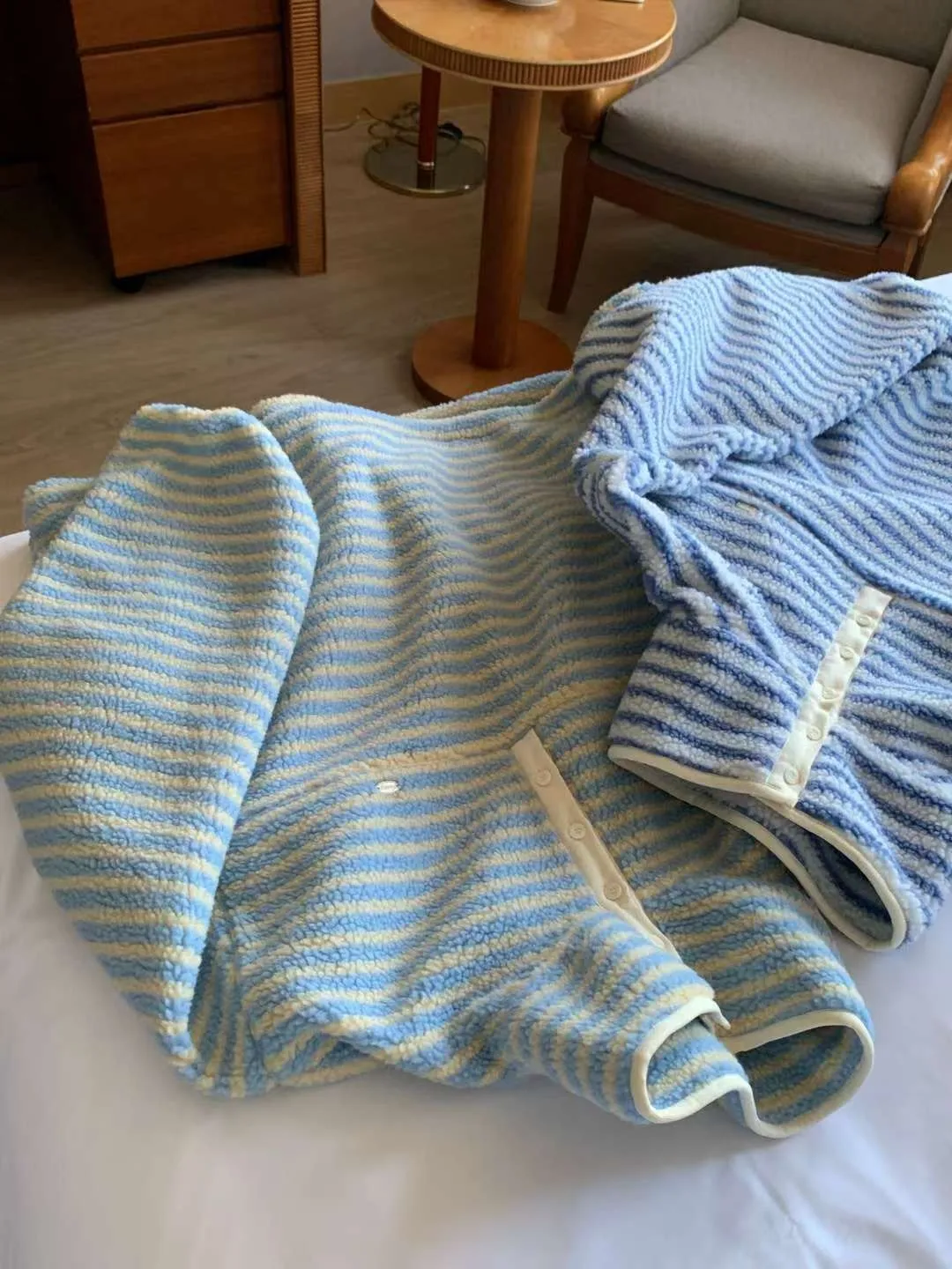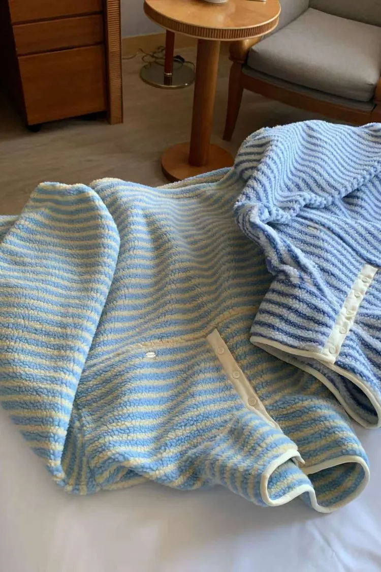 聚酯,淺藍=小雞黃線條 下擺有抽繩 胸前釦穿脫