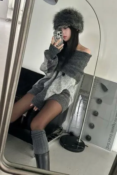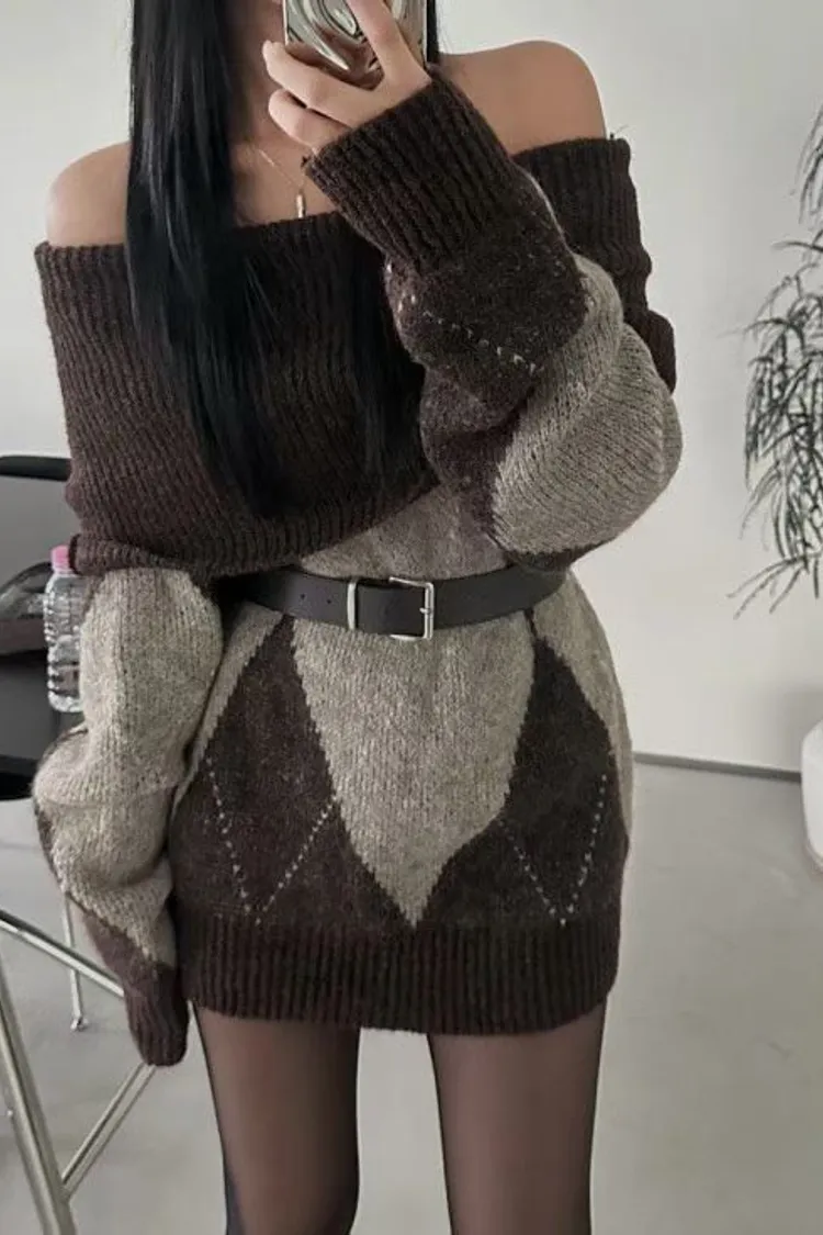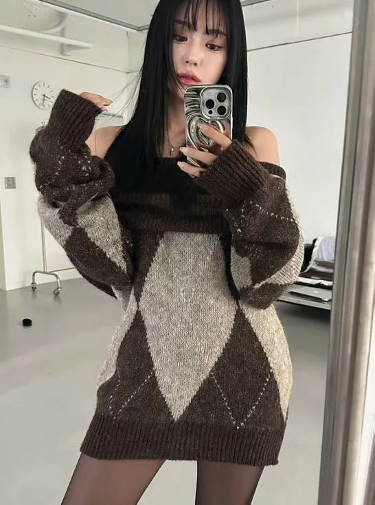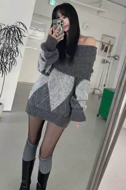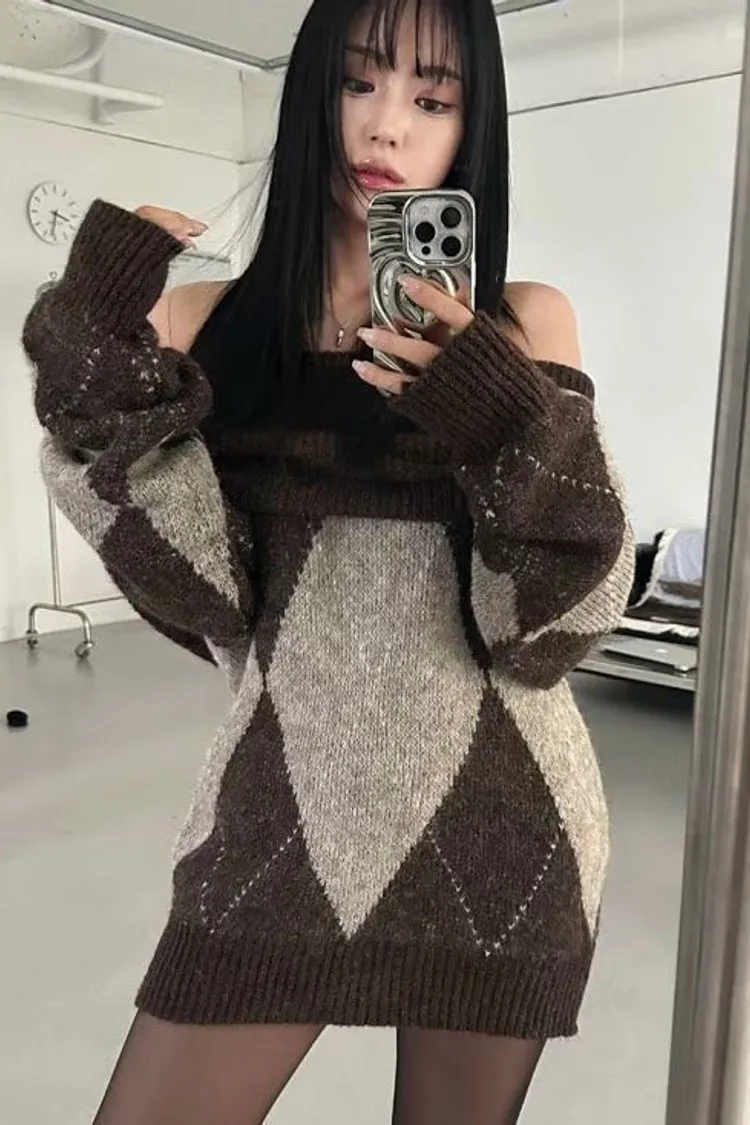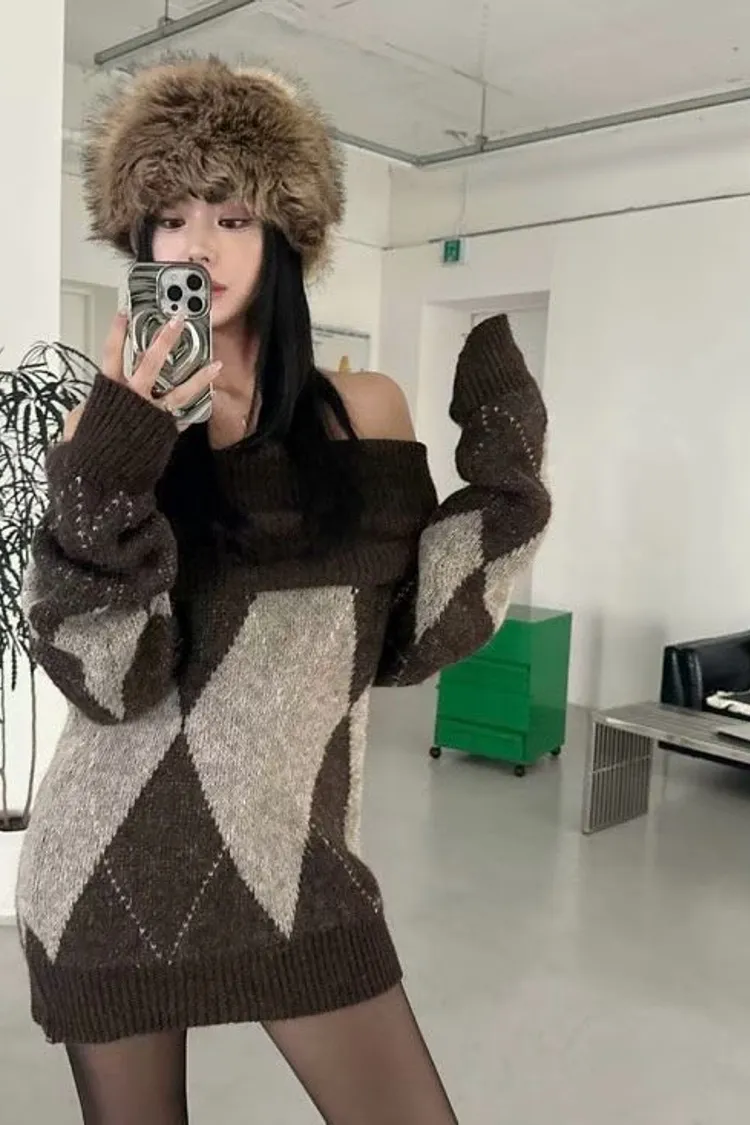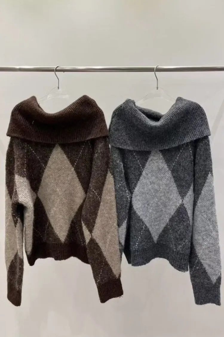 羊毛20% 寬鬆舒適 搭配靴子好看 有暖度 經典菱格紋
