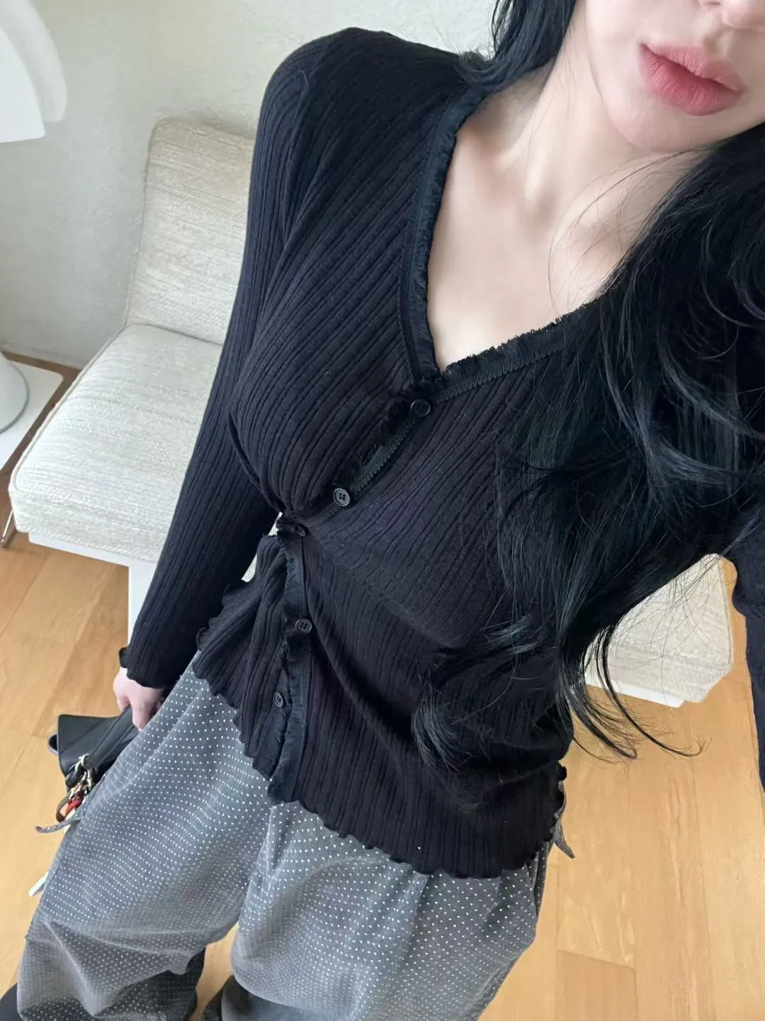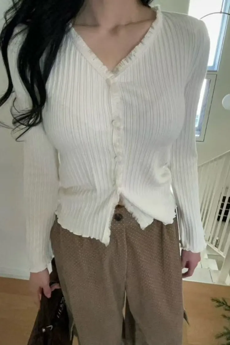 壓克力+聚酯 柔軟舒適 斜釦細腰車線 領口下擺毛毛抽鬚 墊肩可拆