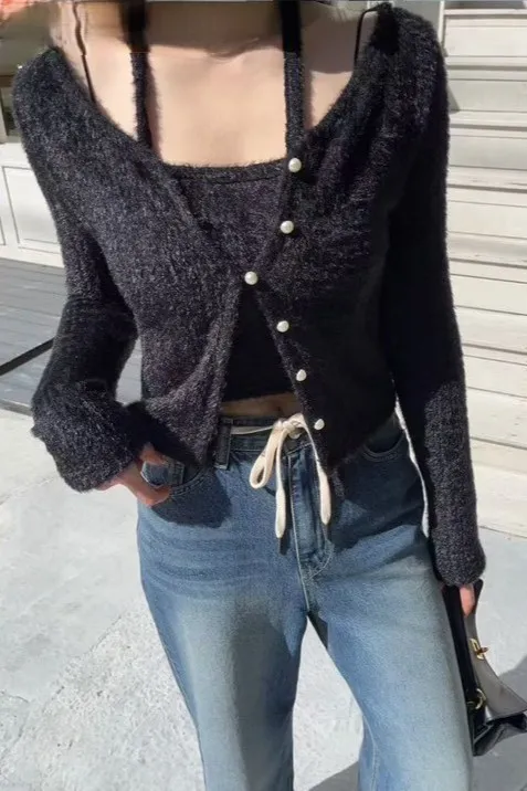 聚酯 滑順仿水貂毛 珍珠釦 背心肩帶有彈性