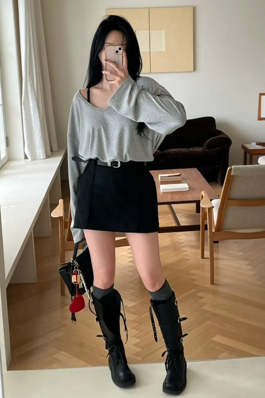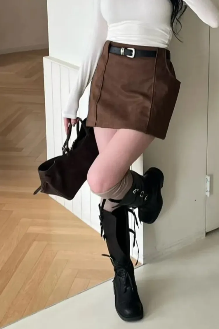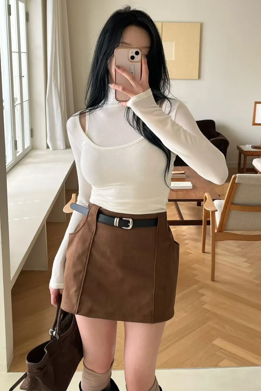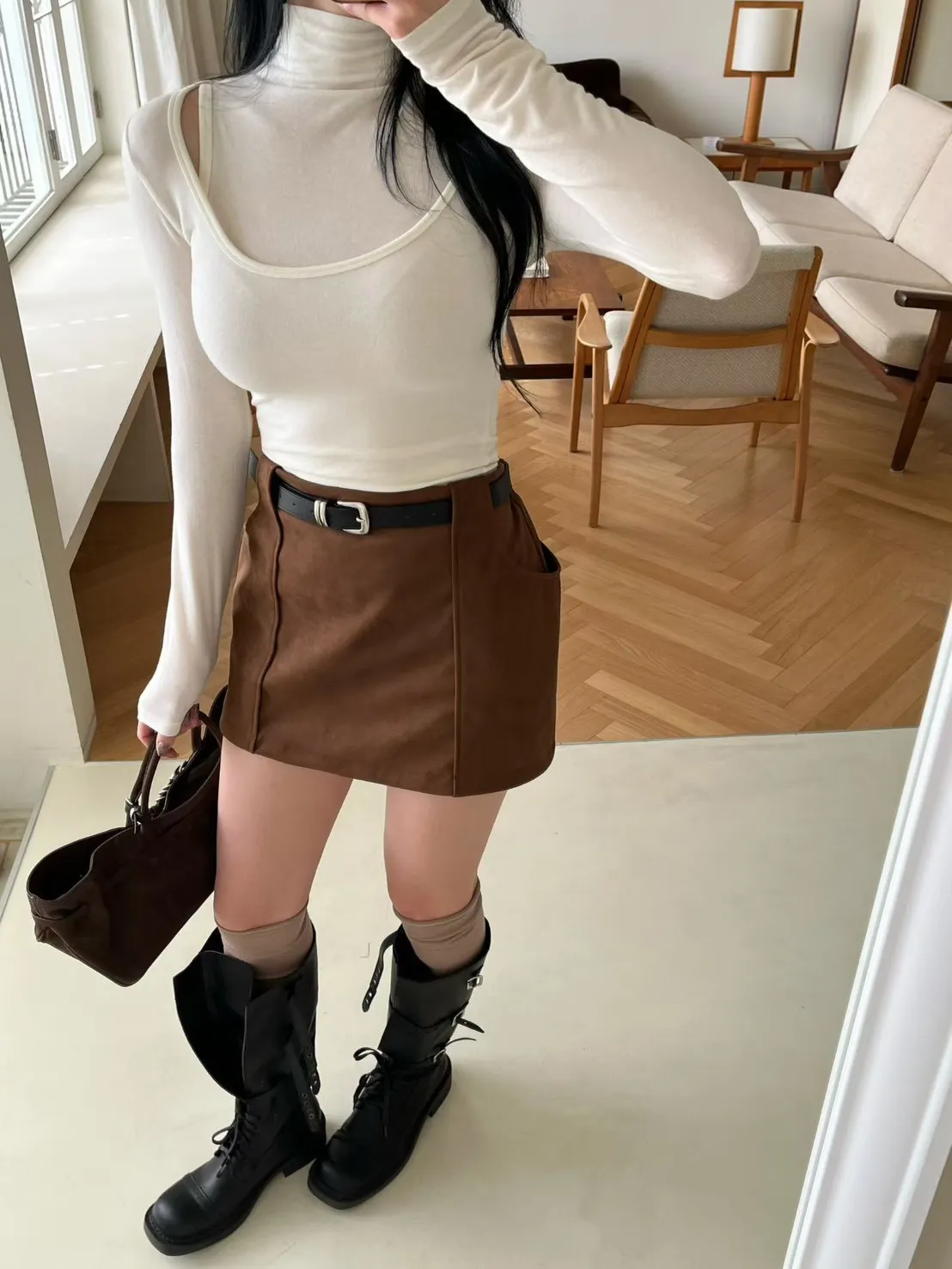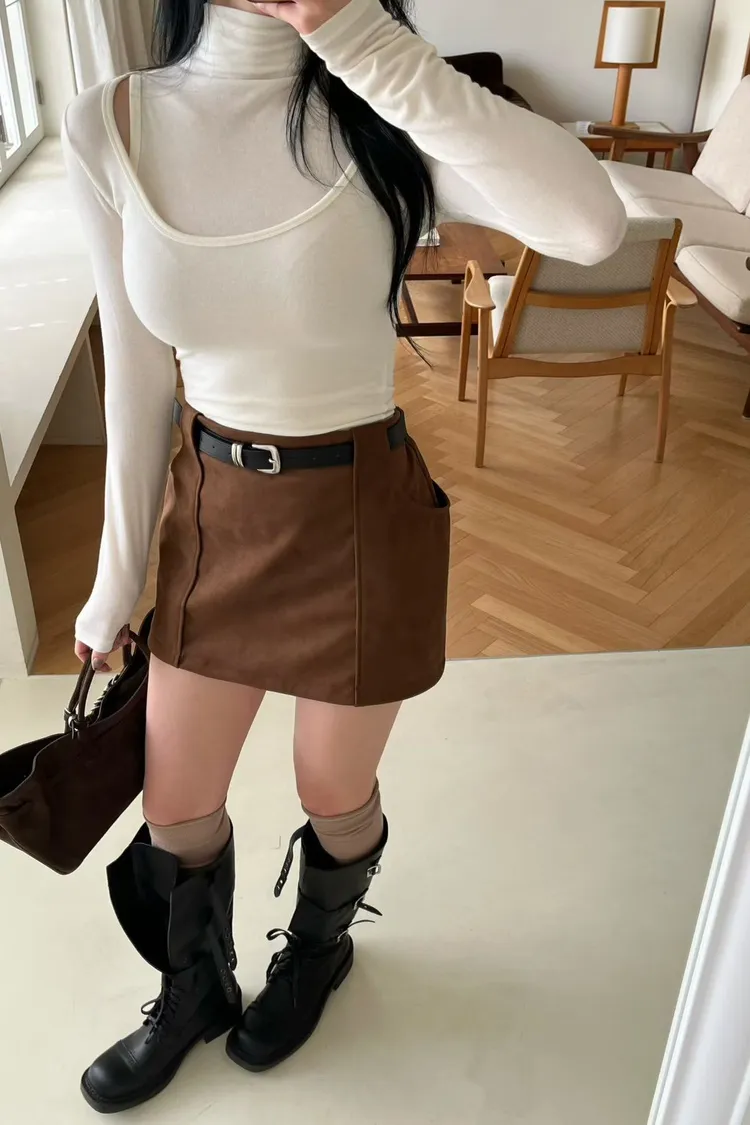 仿麂皮 軟軟滑順觸感 褲子內裡 是褲裙 穿到M號