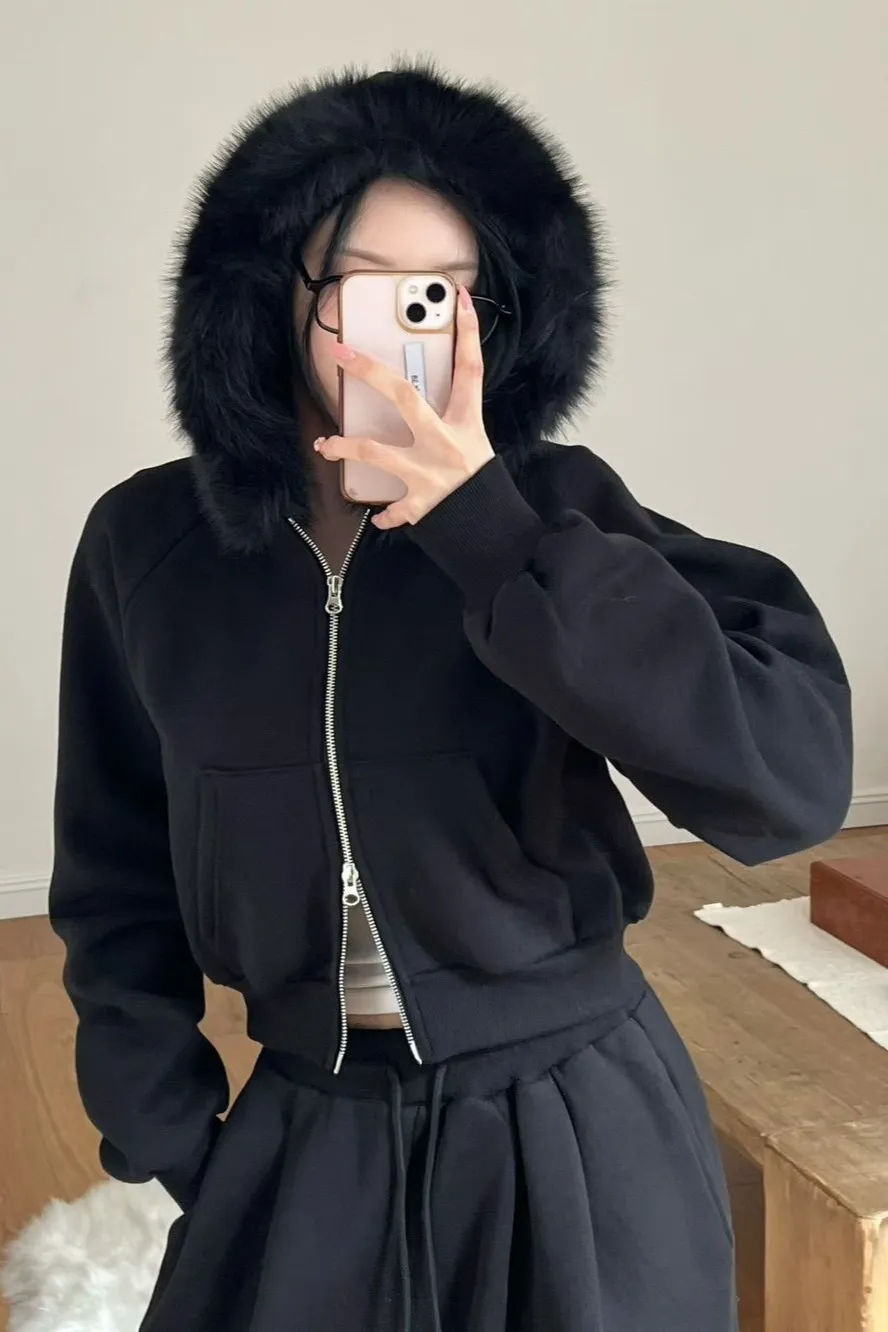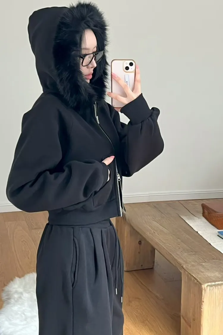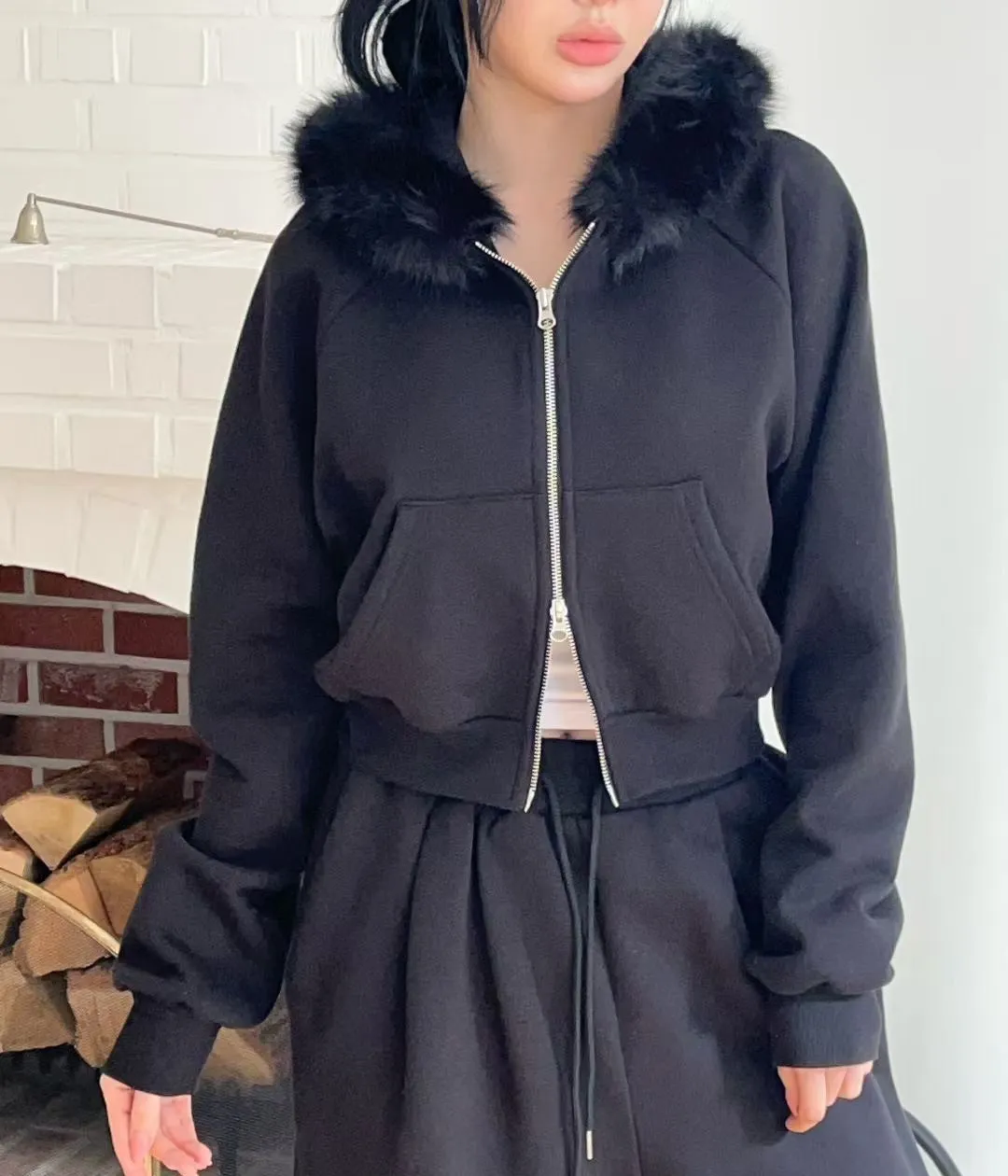 棉+聚酯 內刷毛 拉鍊穿脫 有口袋 短版好比例