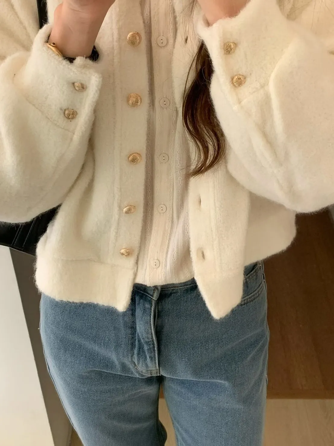 羊毛15%+壓克力 柔軟小毯子感 排釦穿脫 可上衣可外套 L號友善