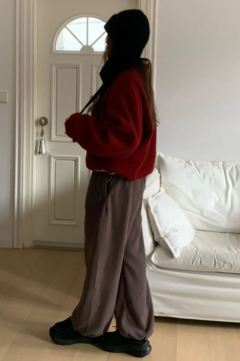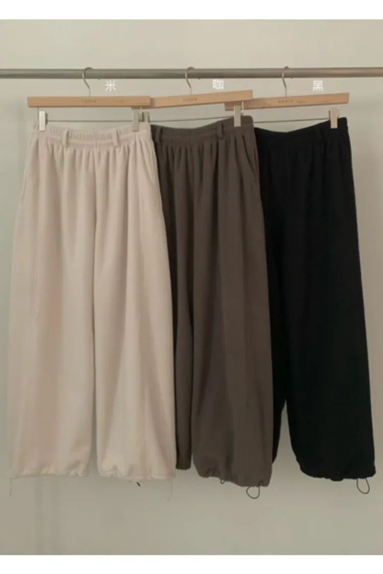 棉+聚酯 褲管抽繩 有口袋 有暖度 全腰鬆緊