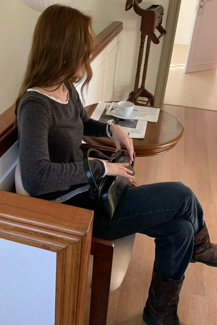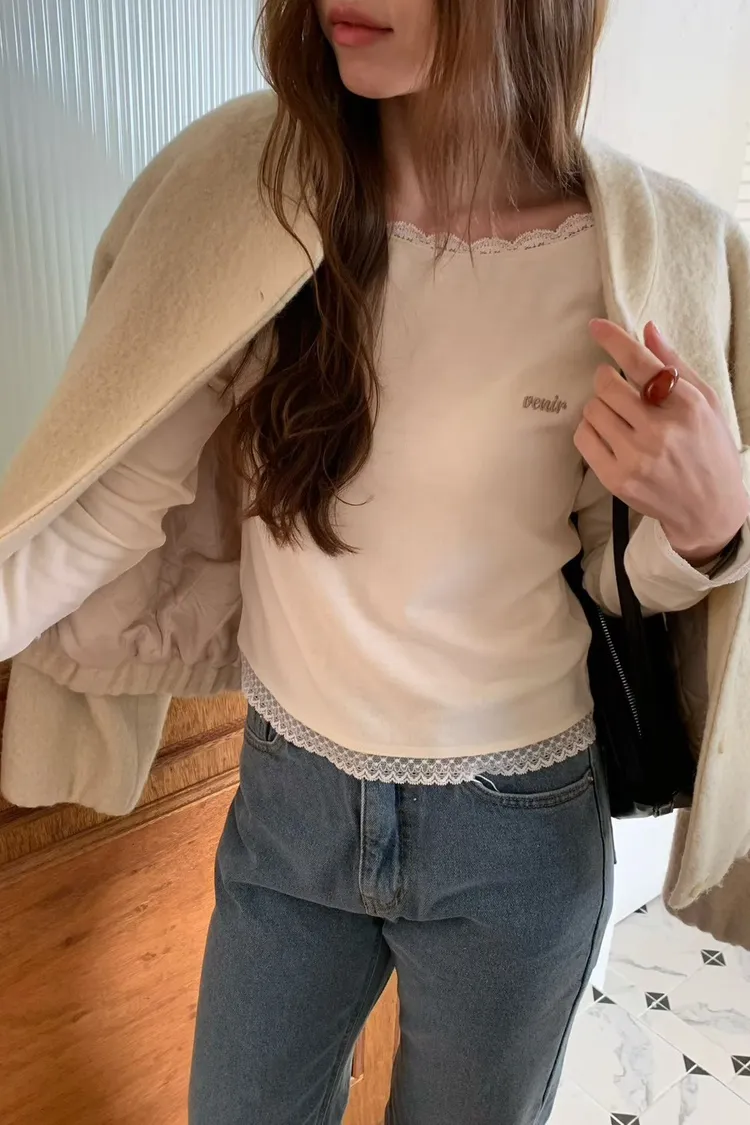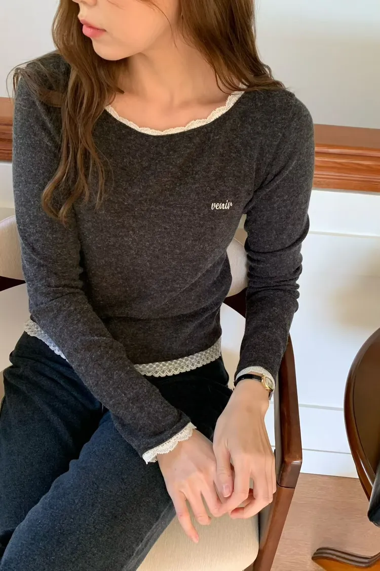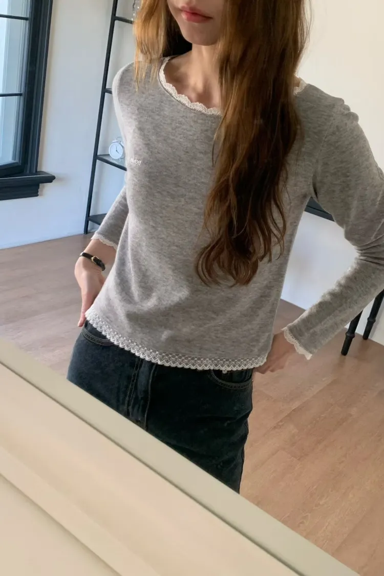 安哥拉兔毛+羊毛+壓克力 領口袖口下擺蕾絲
