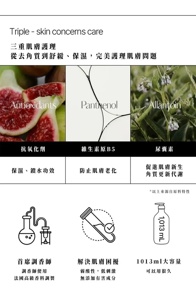 含稀有品種綠色無花果,具有出色的抗氧化特性和保濕、鎖水功效