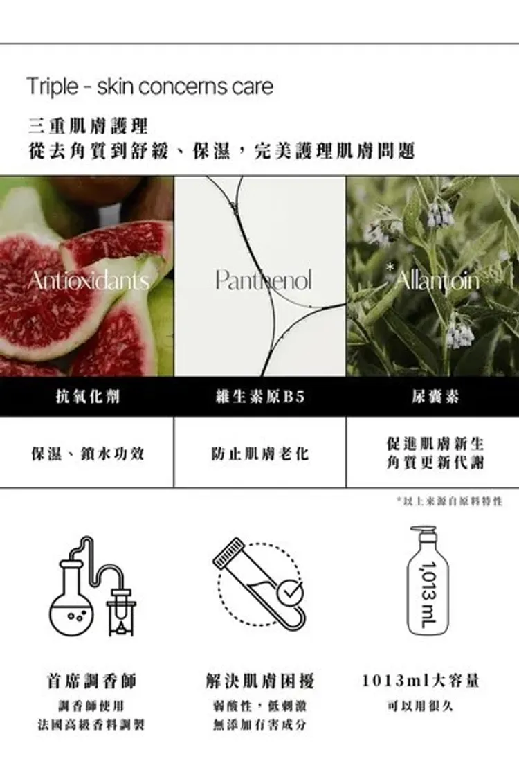 65種天然提取物與無刺激成份維持健康以及柔嫩肌膚紋理