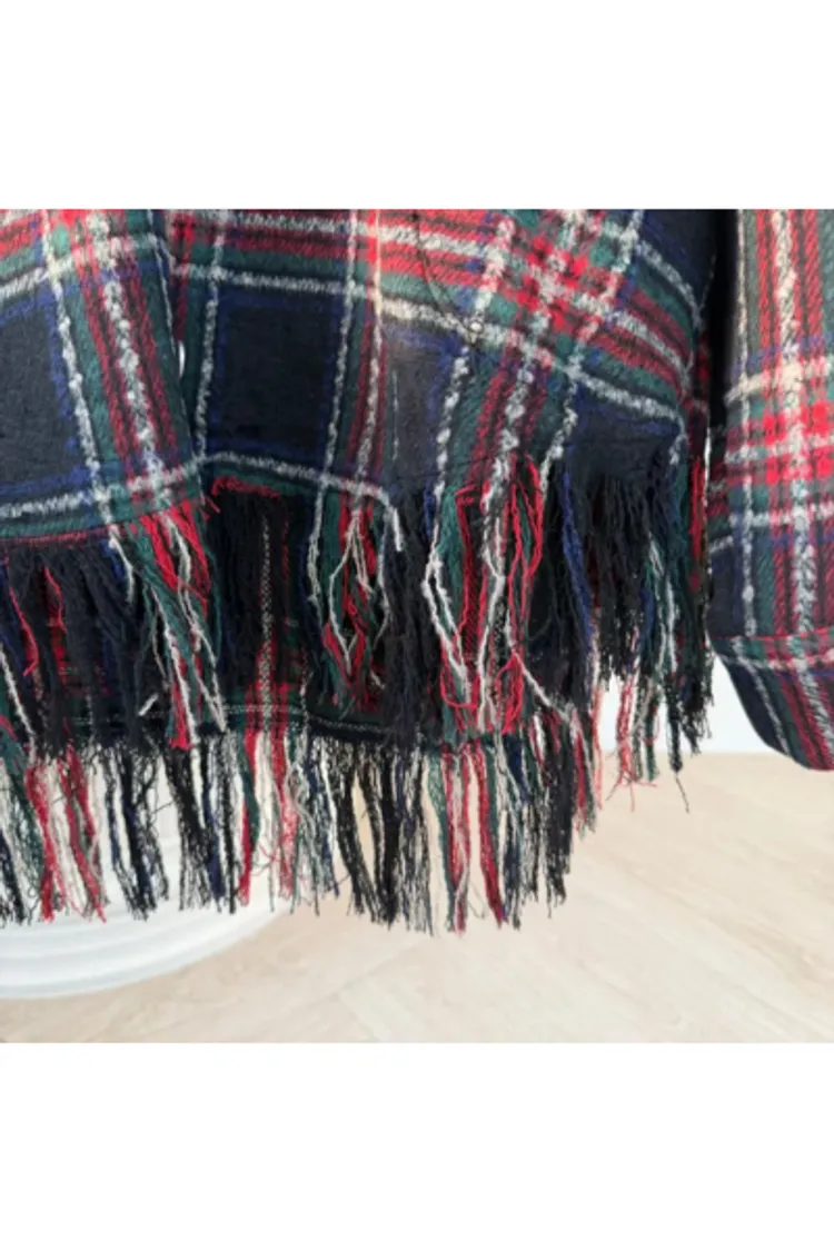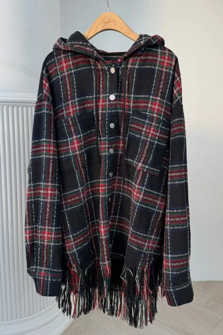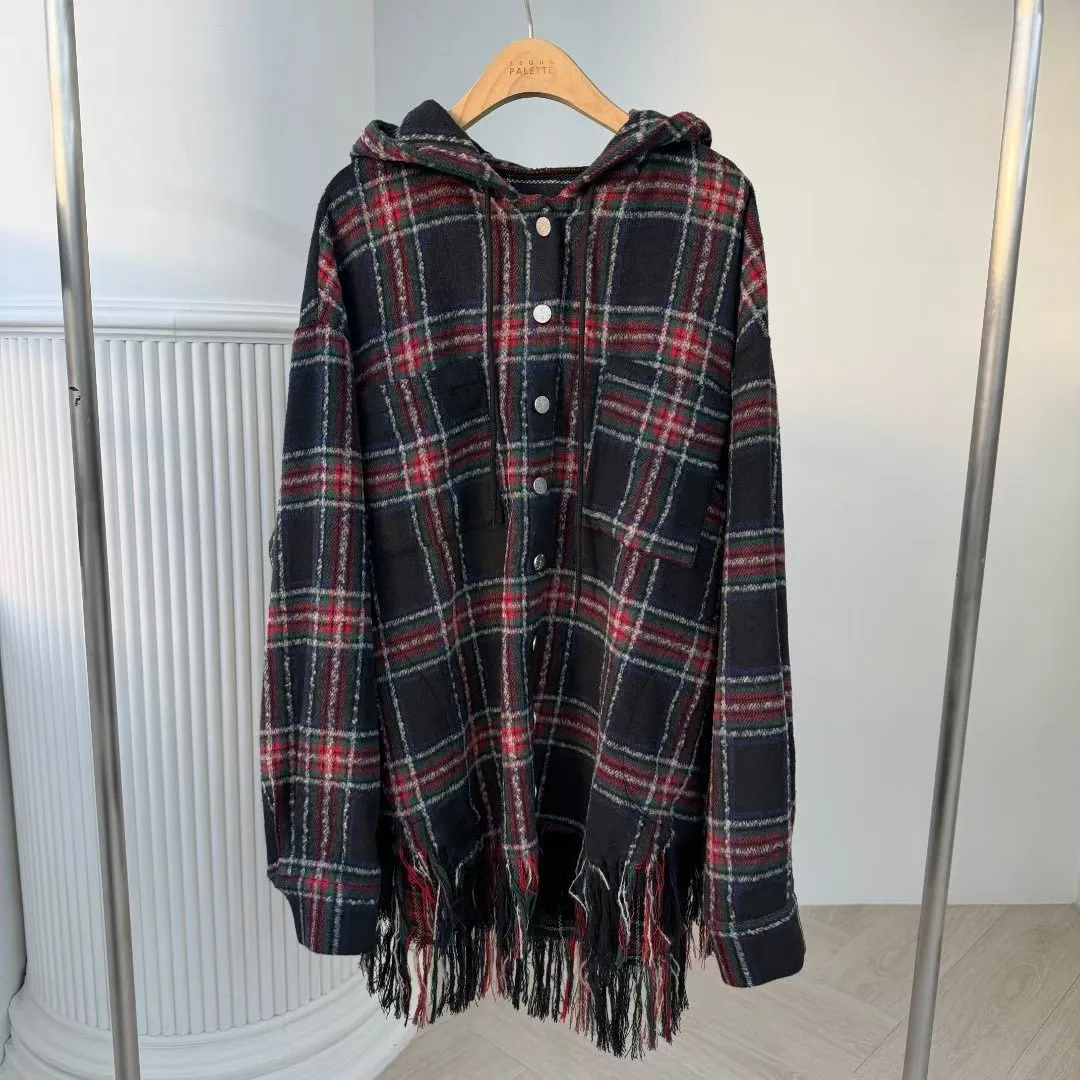 聚酯 斗篷感 手工下擺流蘇 連帽設計 排釦穿脫 有口袋