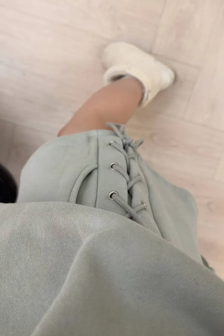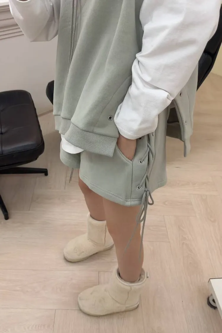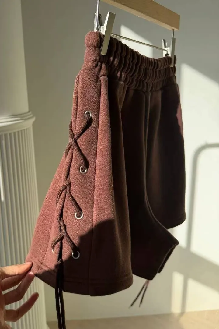 棉 全腰鬆緊 側腿垂墜綁帶設計 有口袋