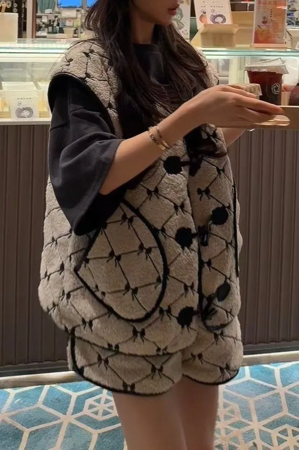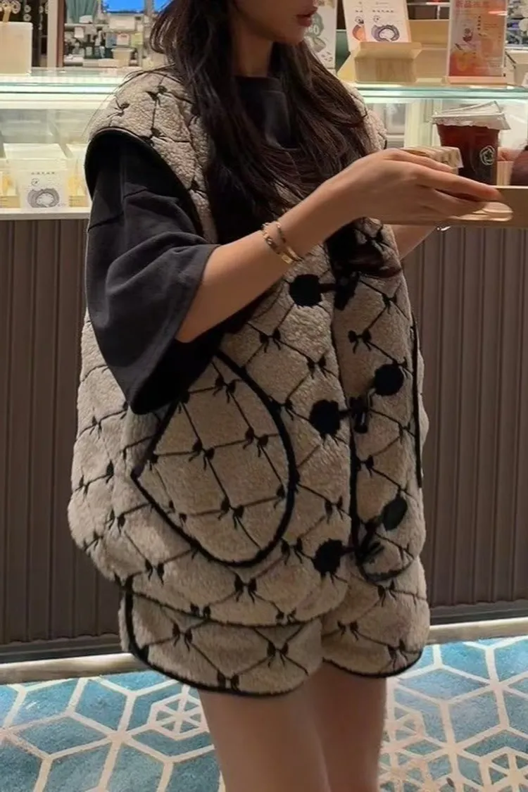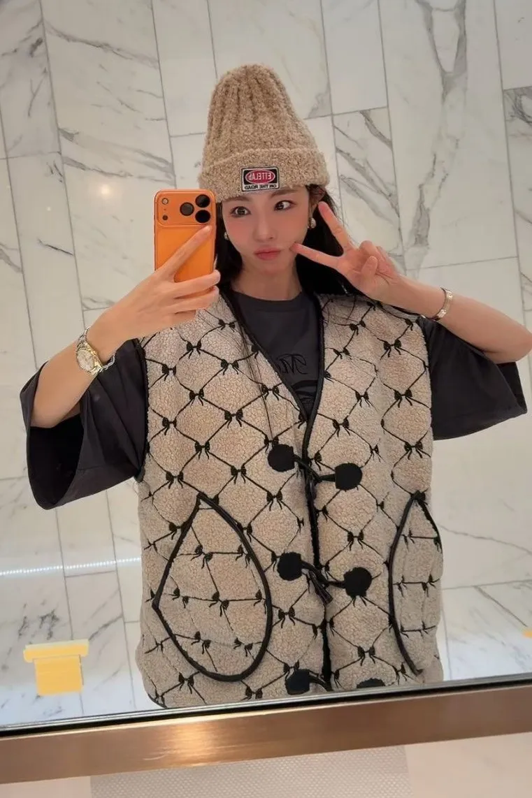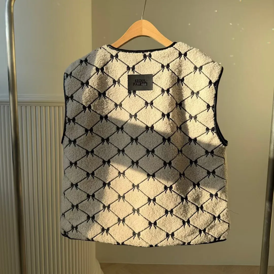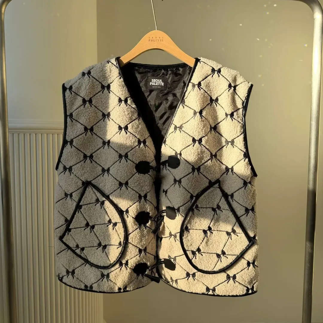 聚酯 刺繡蝴蝶結 有口袋 紋理牛角釦 有內裡 皮革包邊