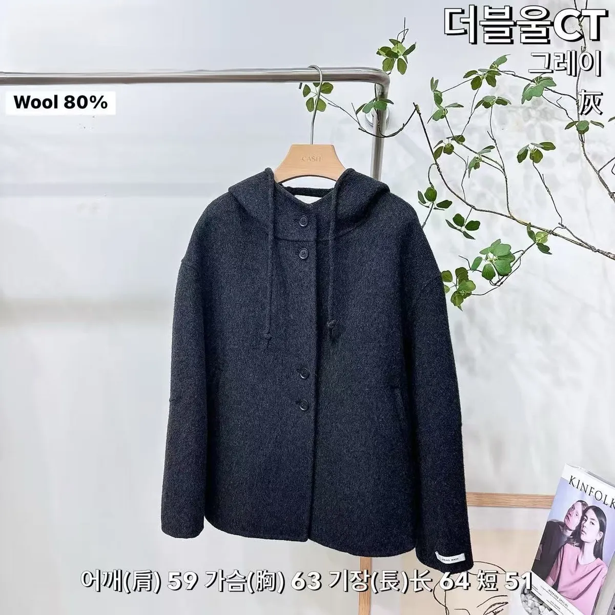 羊毛80% 輕盈質地 吳內裡 有口袋 連帽設計