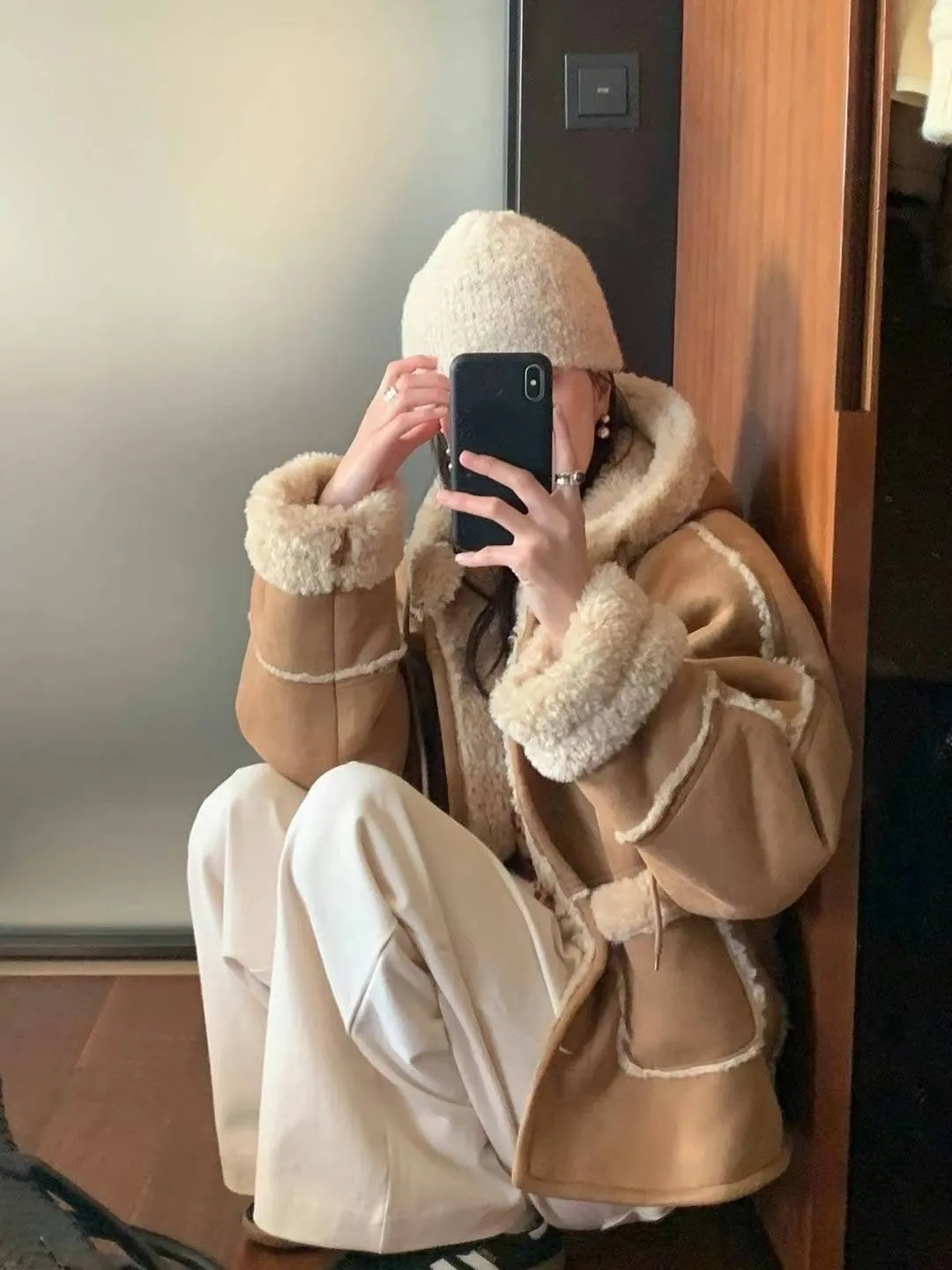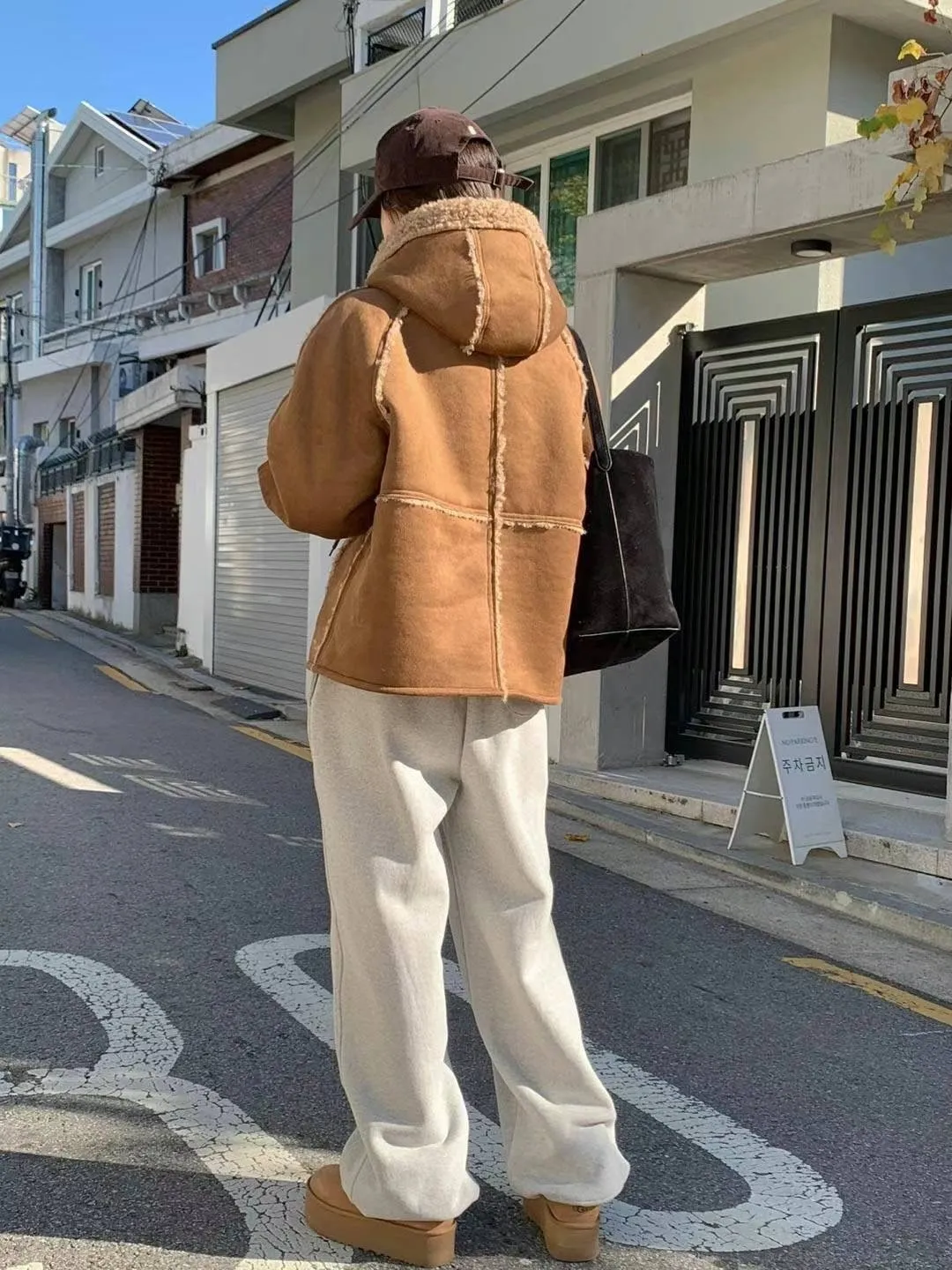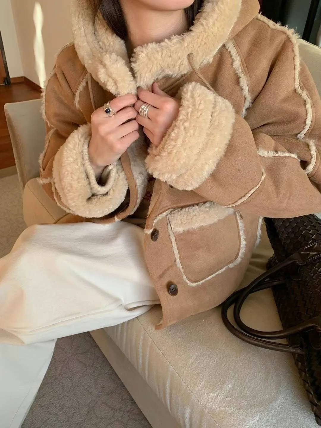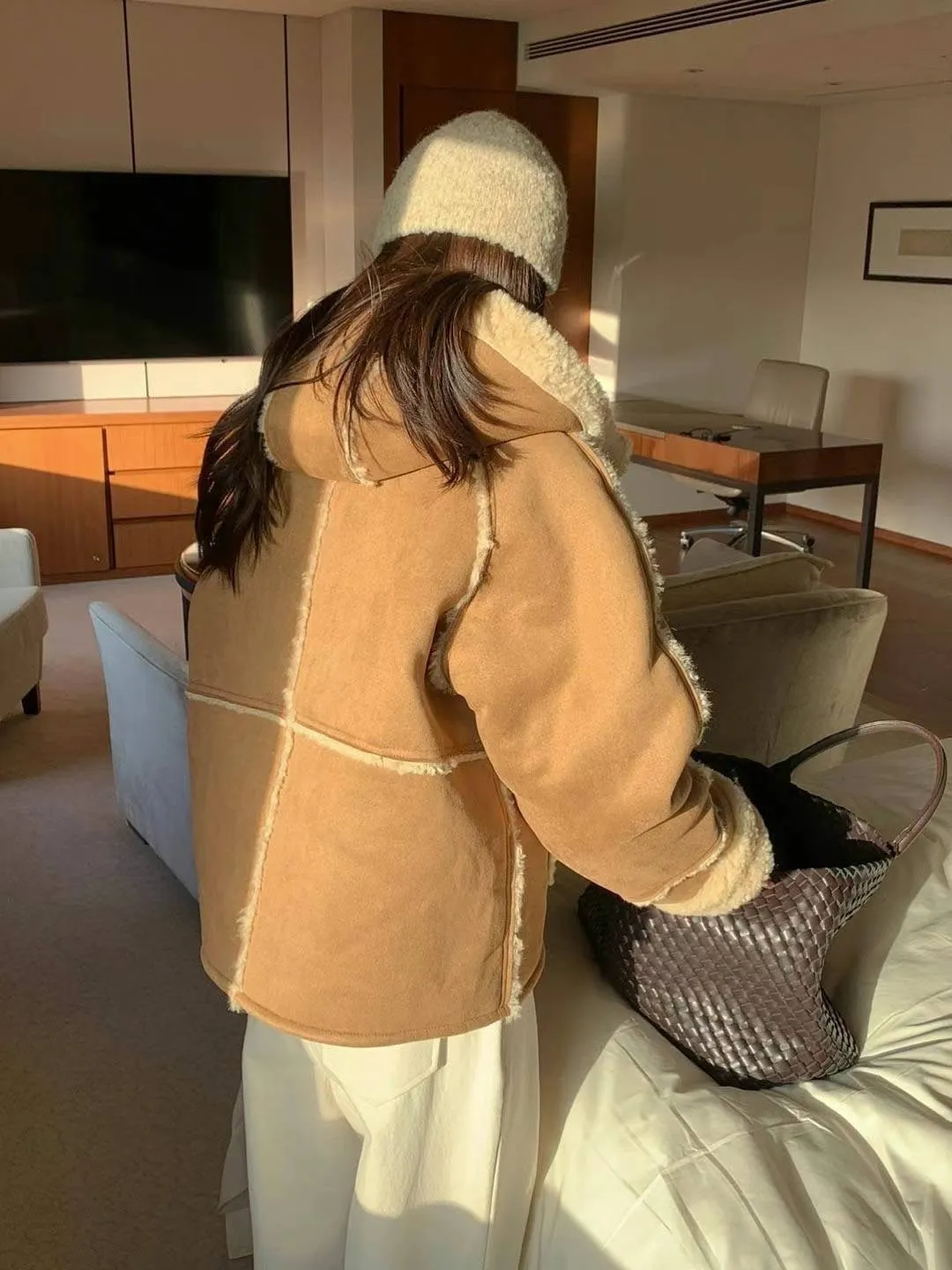 GD013麂皮QQ毛連帽外套 咖 奶茶 官網價$1980 線上價$1950