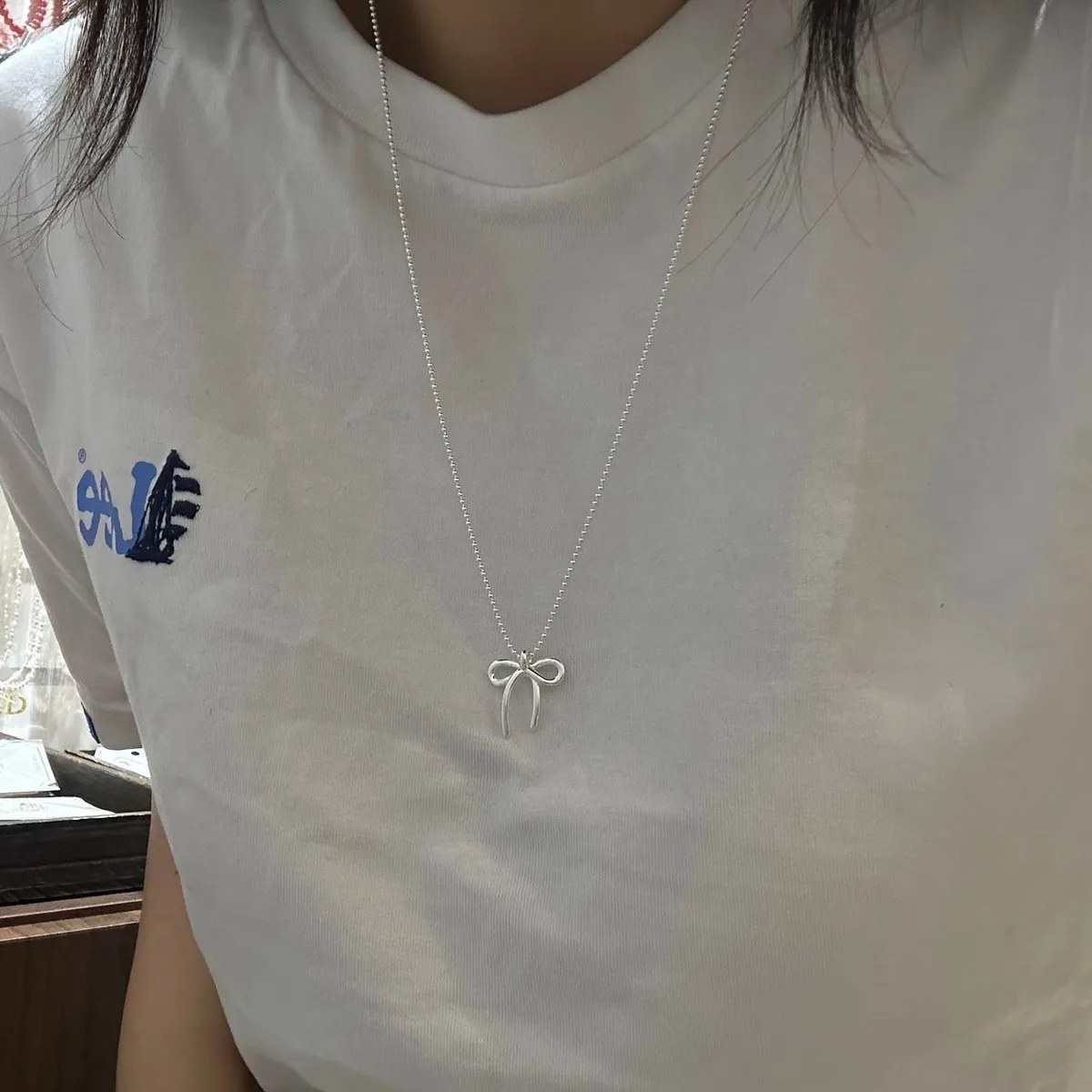 GD096禮物蝴蝶結純銀925毛衣項鍊