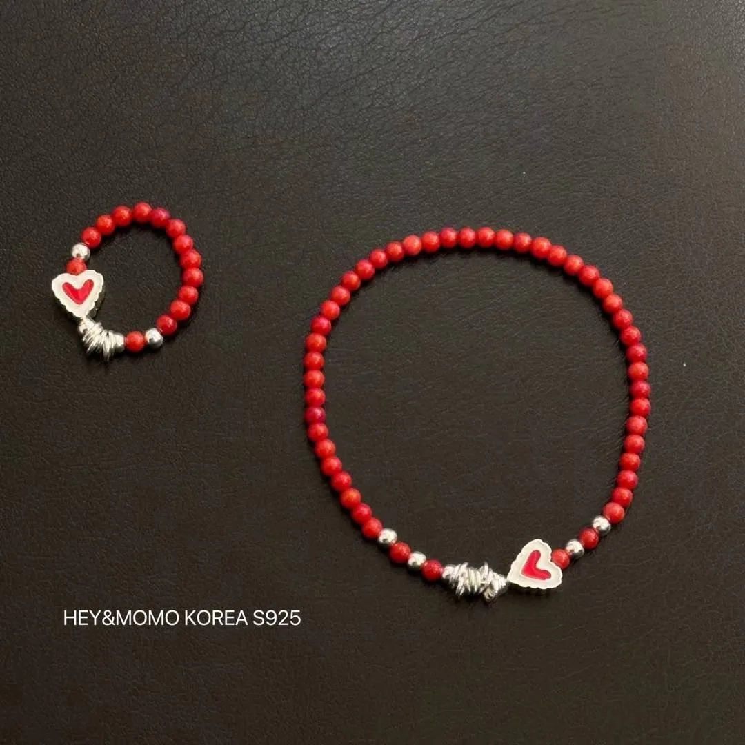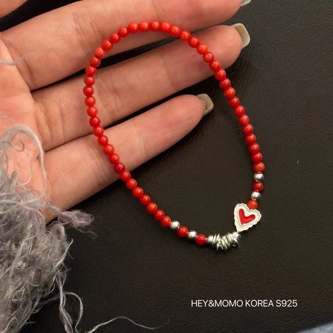 GD107紅瑪瑙珠繩純銀925愛心彈性手鍊 官網價$480 永恆甜甜價$460