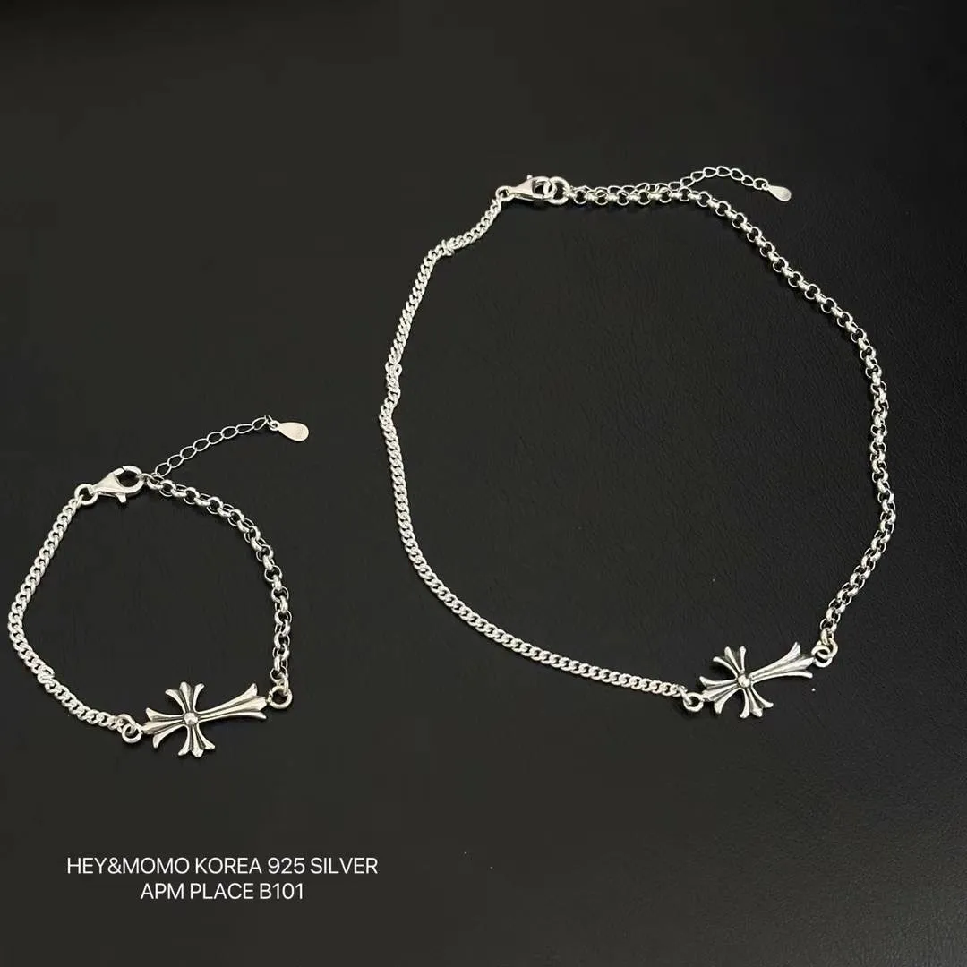 GD117克羅心地平線十字架AB鍊純銀925項鍊
