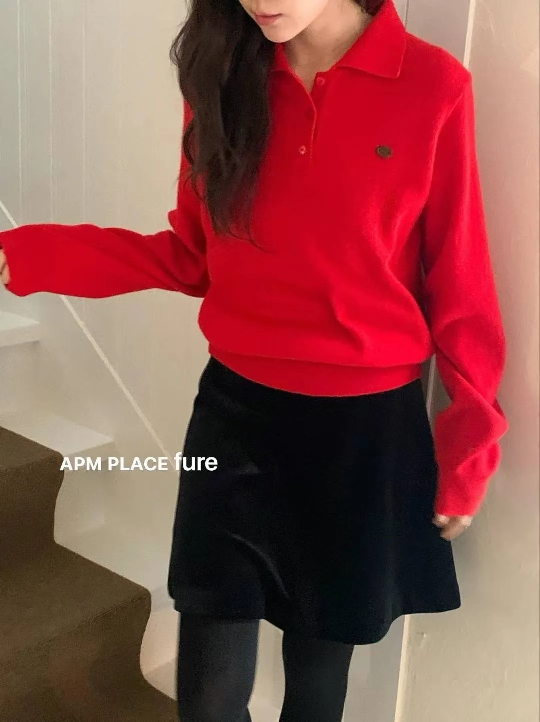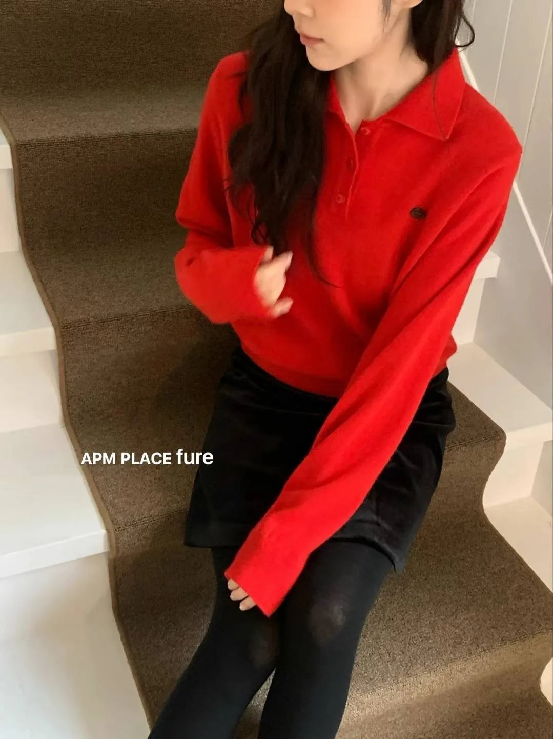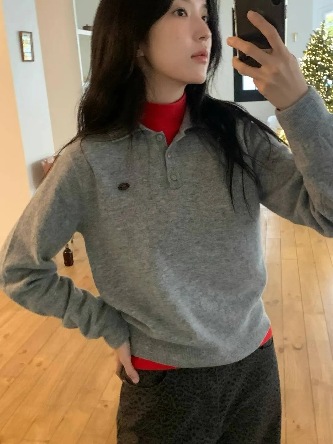 GD241質感小標羊毛翻領針織衫 紅 咖 灰 奶茶 官網價$1150 線上價$1120